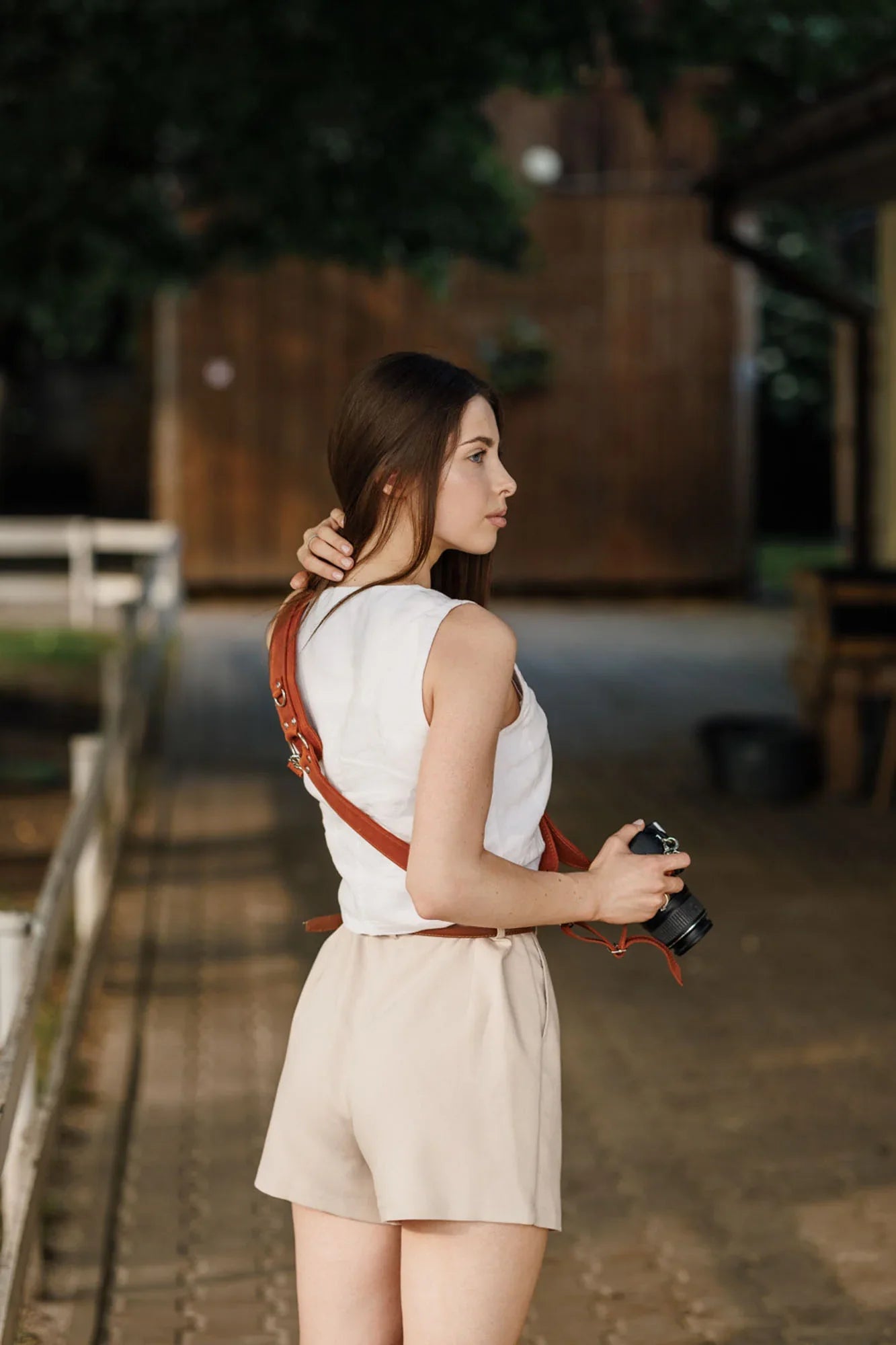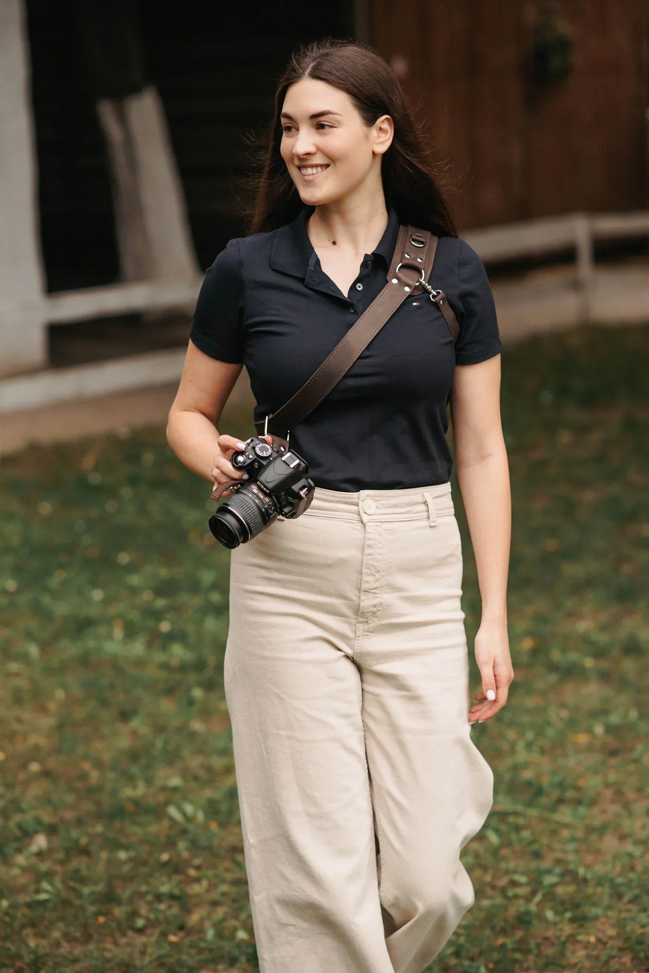 Цей ремінь для однієї камери розроблений для фотографів, які цінують свободу рухів та міцну естетику. Виготовлений з вощеної матової шкіри, він надійно захищає вашу камеру та забезпечує легкий доступ до неї без шкоди для комфорту.
