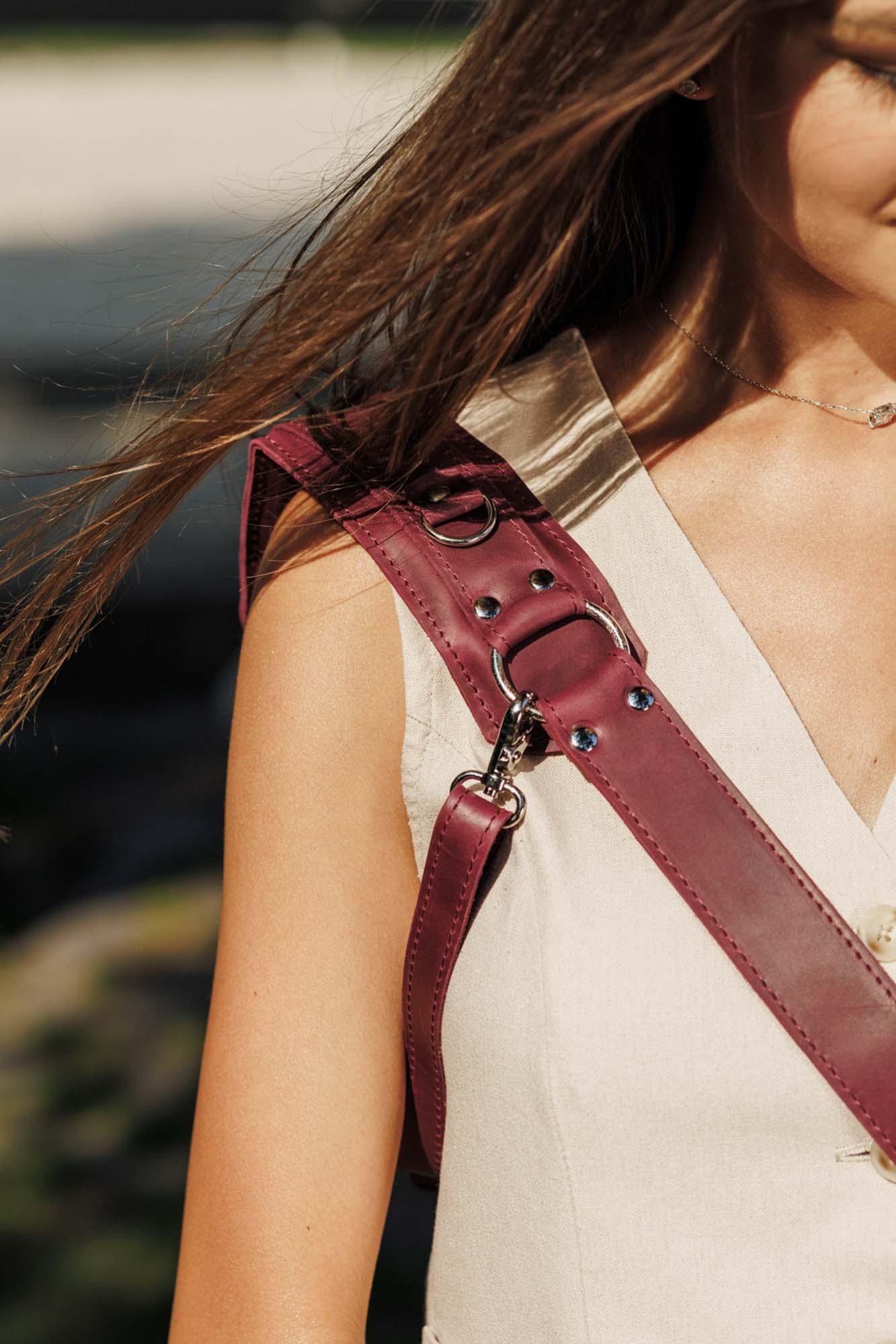Ремінь підбирається відповідно до вашого розміру. Щоб одягнути, надіньте його на плечі, як рюкзак. Камера надійно тримається на боці та піднімається вгору за потреби. Система автоматично підлаштовується під ваше тіло для стабільної та збалансованої посадки.