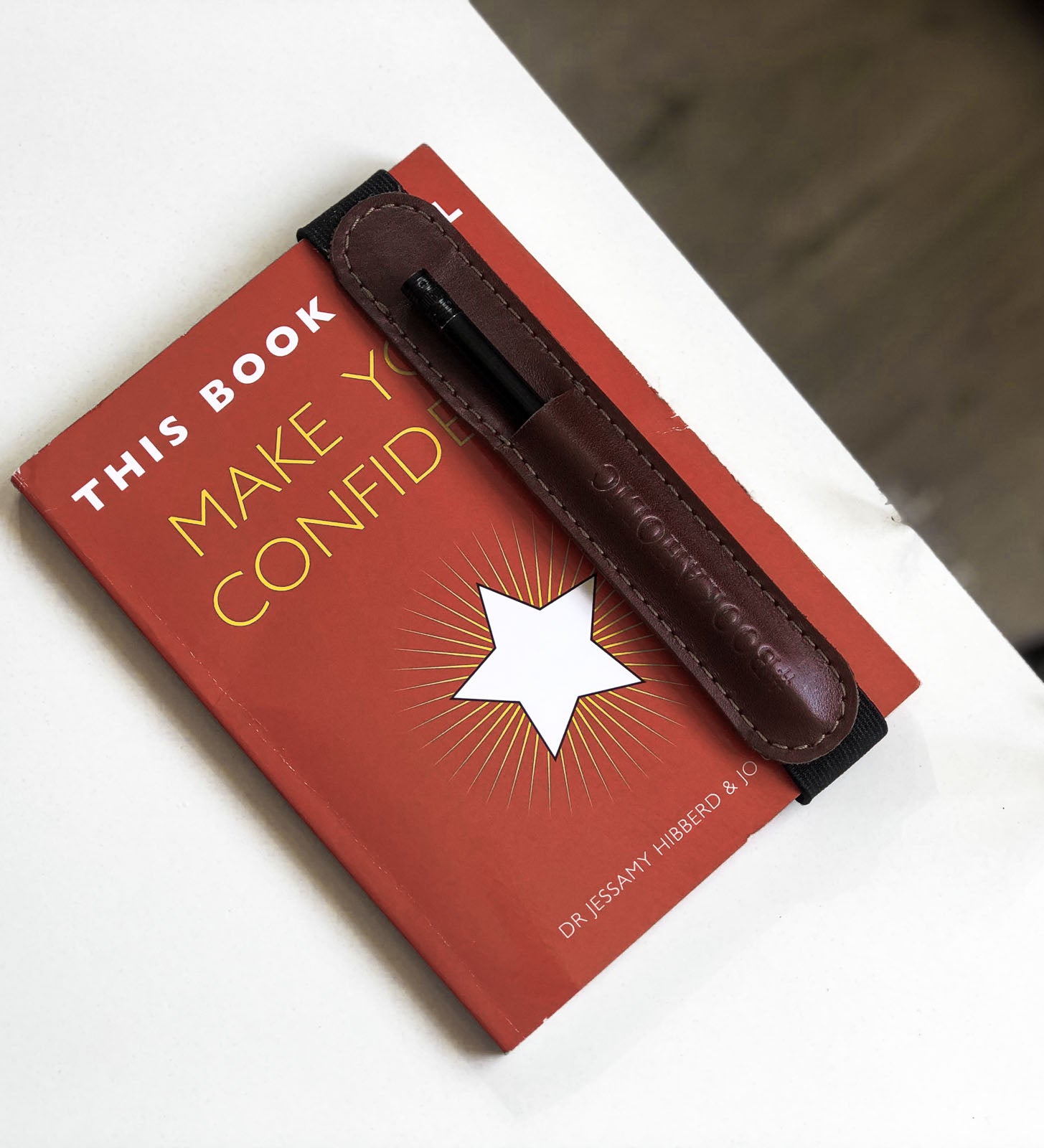 - Шкіра зовні, еластична гумка всередині. Таким способом розміщенням, зовні можна зберігати, наприклад, олівець, яким можна виділяти текст, робити нотатки.