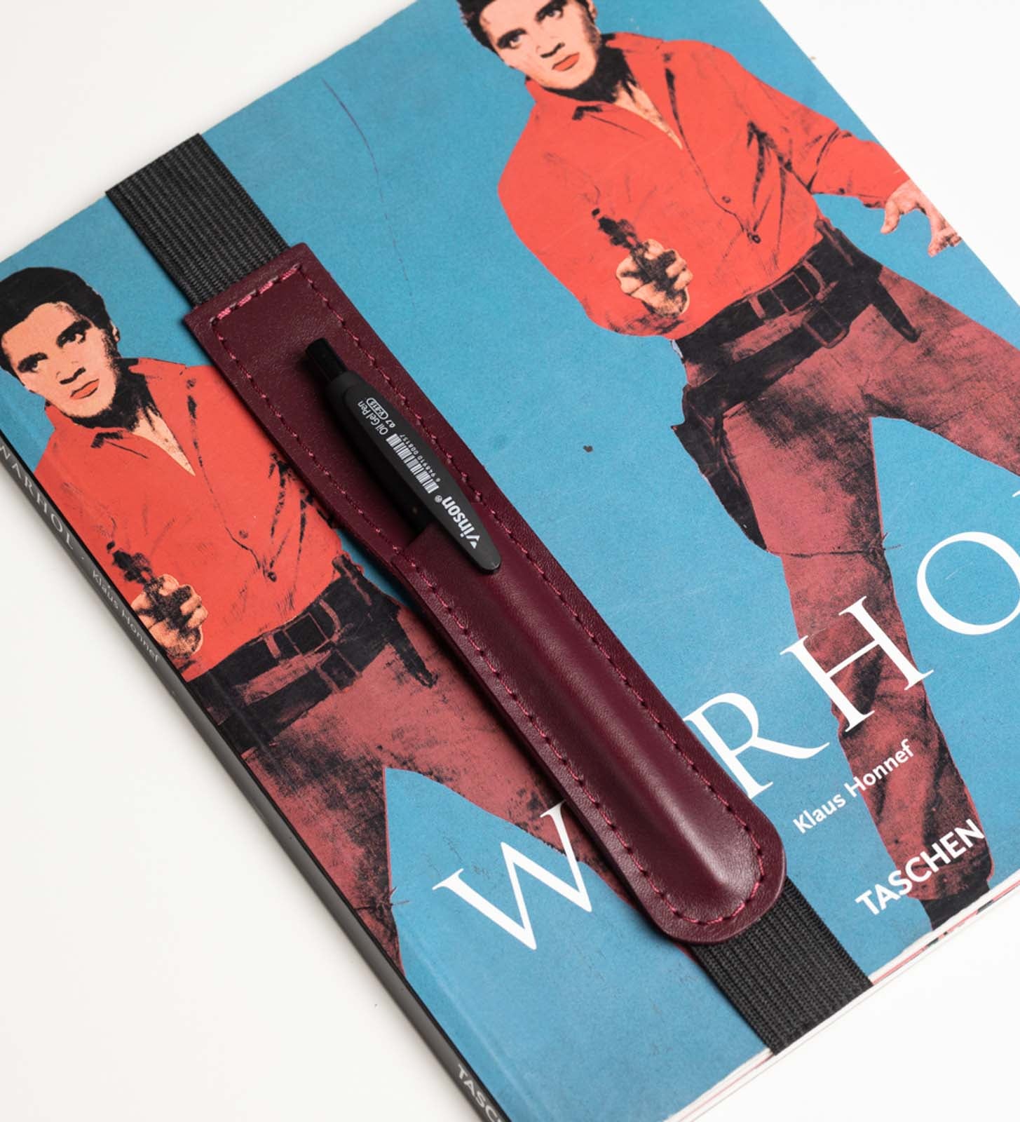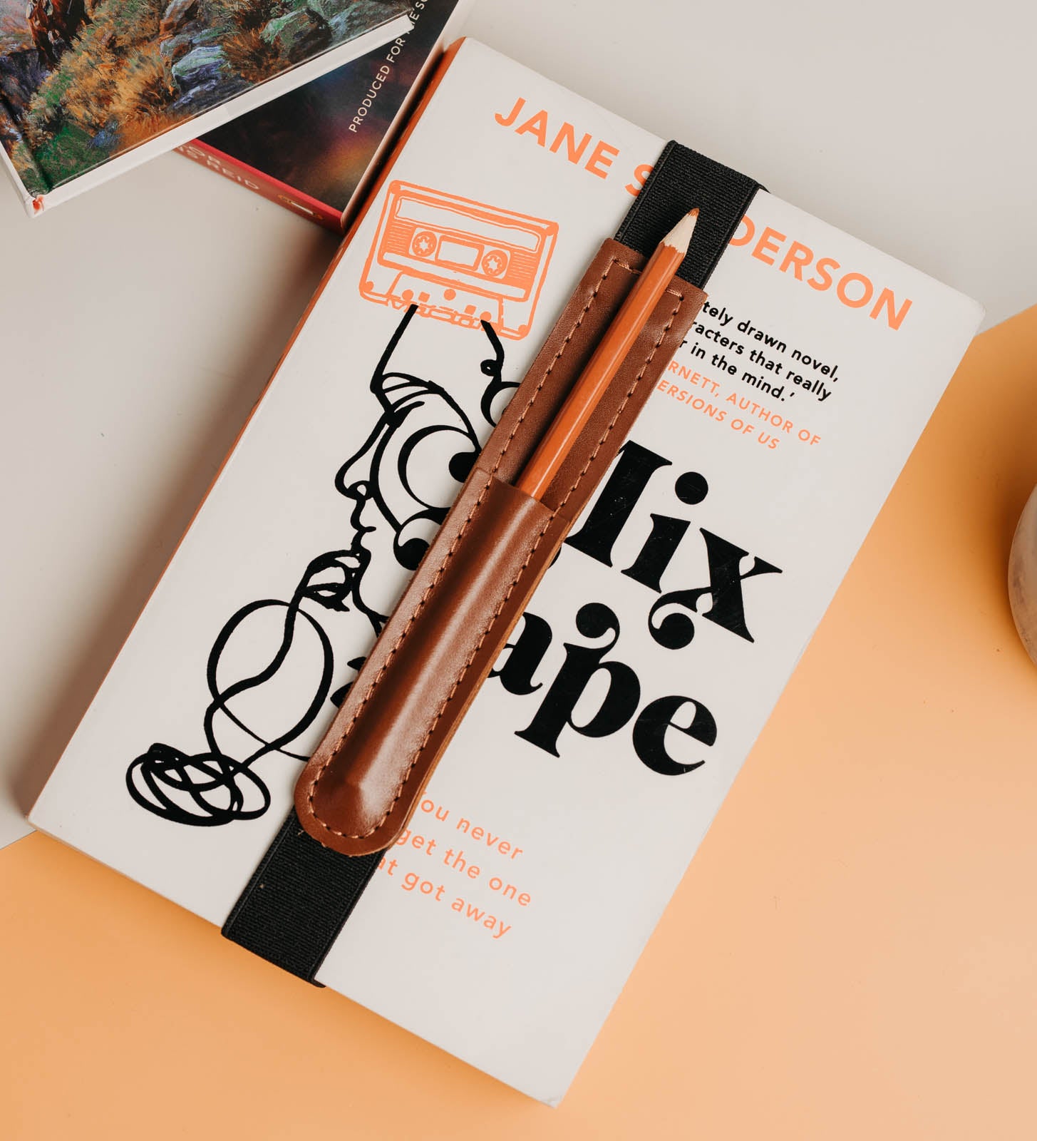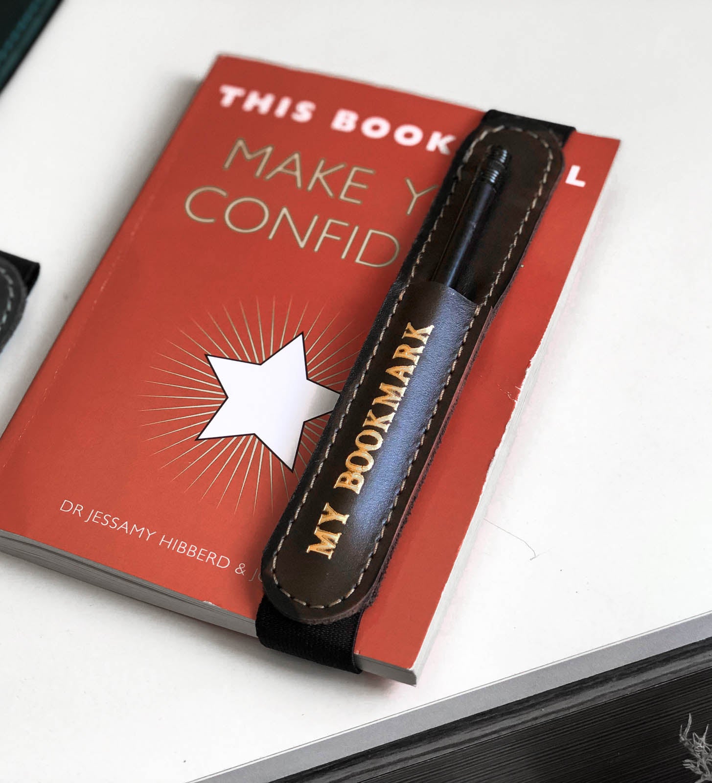 Універсальна закладка для книг з кишенькою для олівця або ручки виглядає унікально і яскраво. Закладка виготовлена з натуральної шкіри, об’єм захоплених аркушів регулюється за допомогою товстої широкої гумки. Завдяки цьому підходить для будь-якого формату книги, журналу або документів А4.