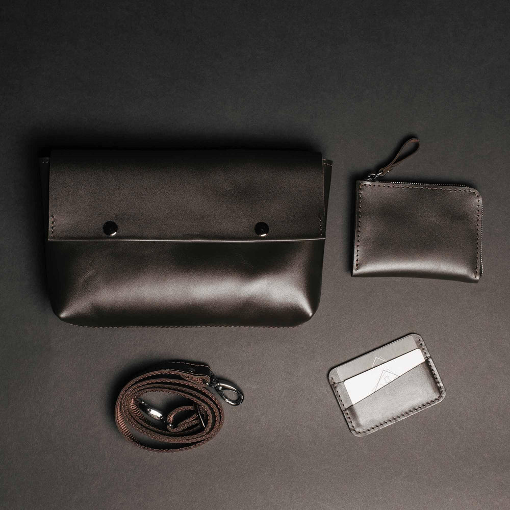 Міський повсякденний набір – шкіряна сумка + гаманець на блискавці + візитниця | Знижка 30%