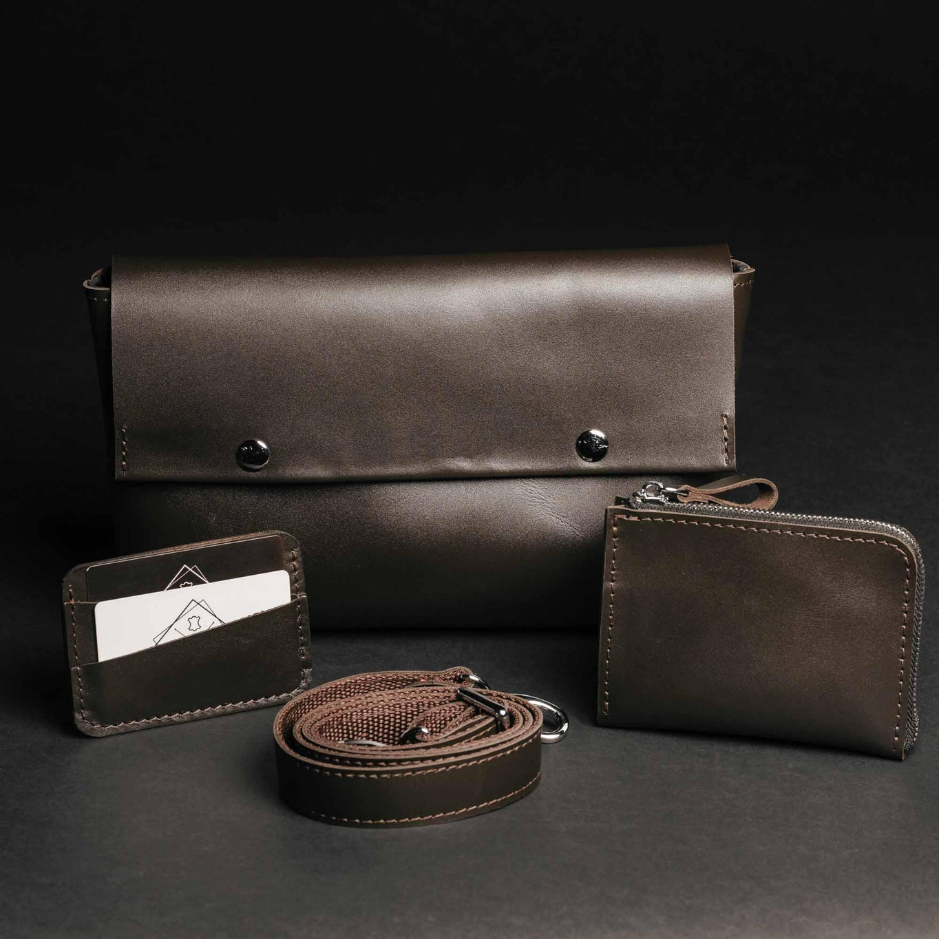 Щоденний набір – поясна та крос-бокс-сумка, гаманець на блискавці + чохол для бонусної картки