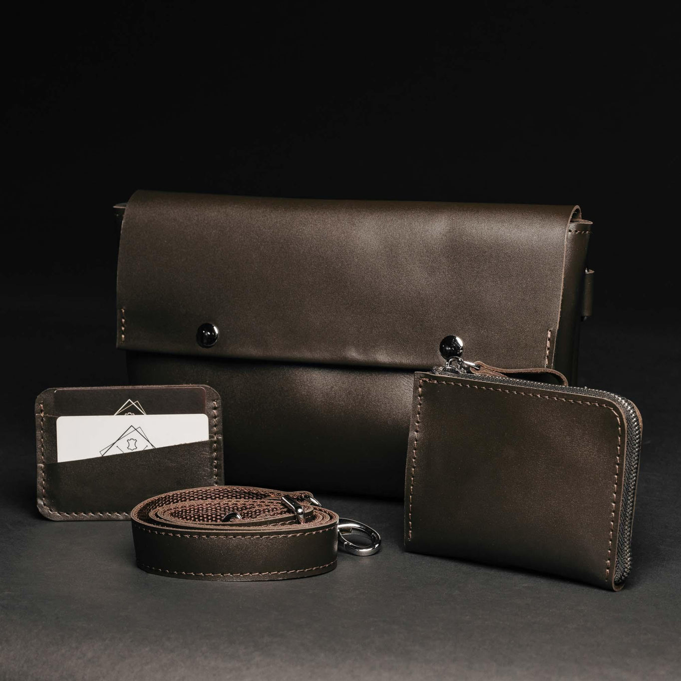 Міський повсякденний набір – шкіряна сумка + гаманець на блискавці + візитниця | Знижка 30%