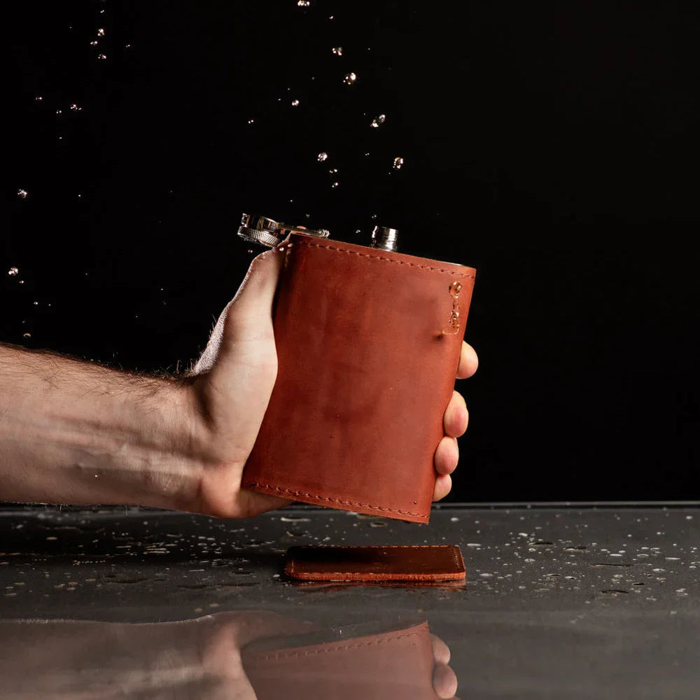 Матеріал: Фляга з нержавіючої сталі, обгорнута 100% натуральною коров'ячою шкірою