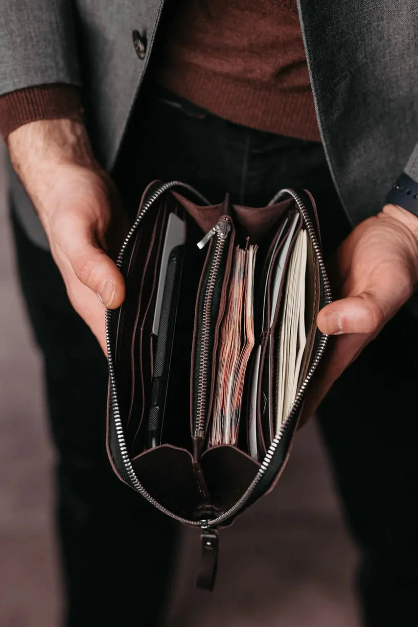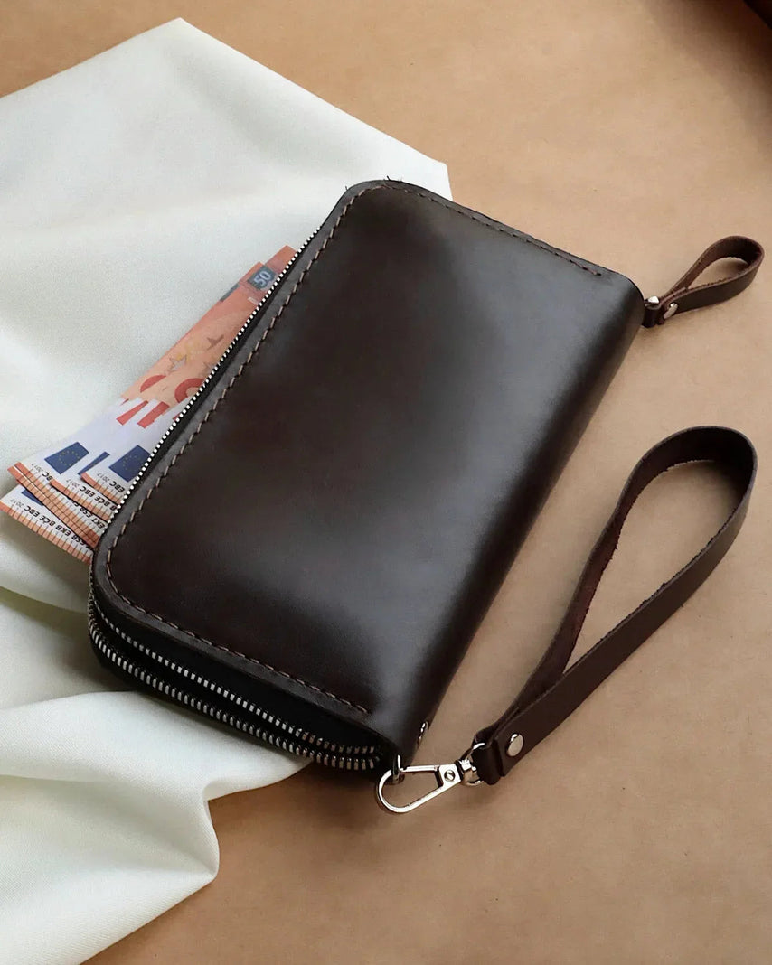 Незалежно від того, чи ви виконуєте доручення, прямуєте на роботу чи вирушаєте в подорож, цей шкіряний гаманець створений для того, щоб ваші найнеобхідніші речі були в безпеці та під рукою. Мінімалістичний дизайн випромінює вишуканість, водночас поєднуючи практичність, що робить його продуманим подарунком для себе або близької людини. кохану людину.