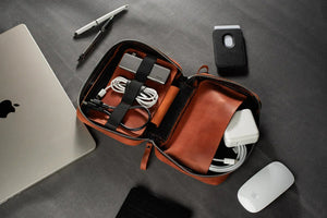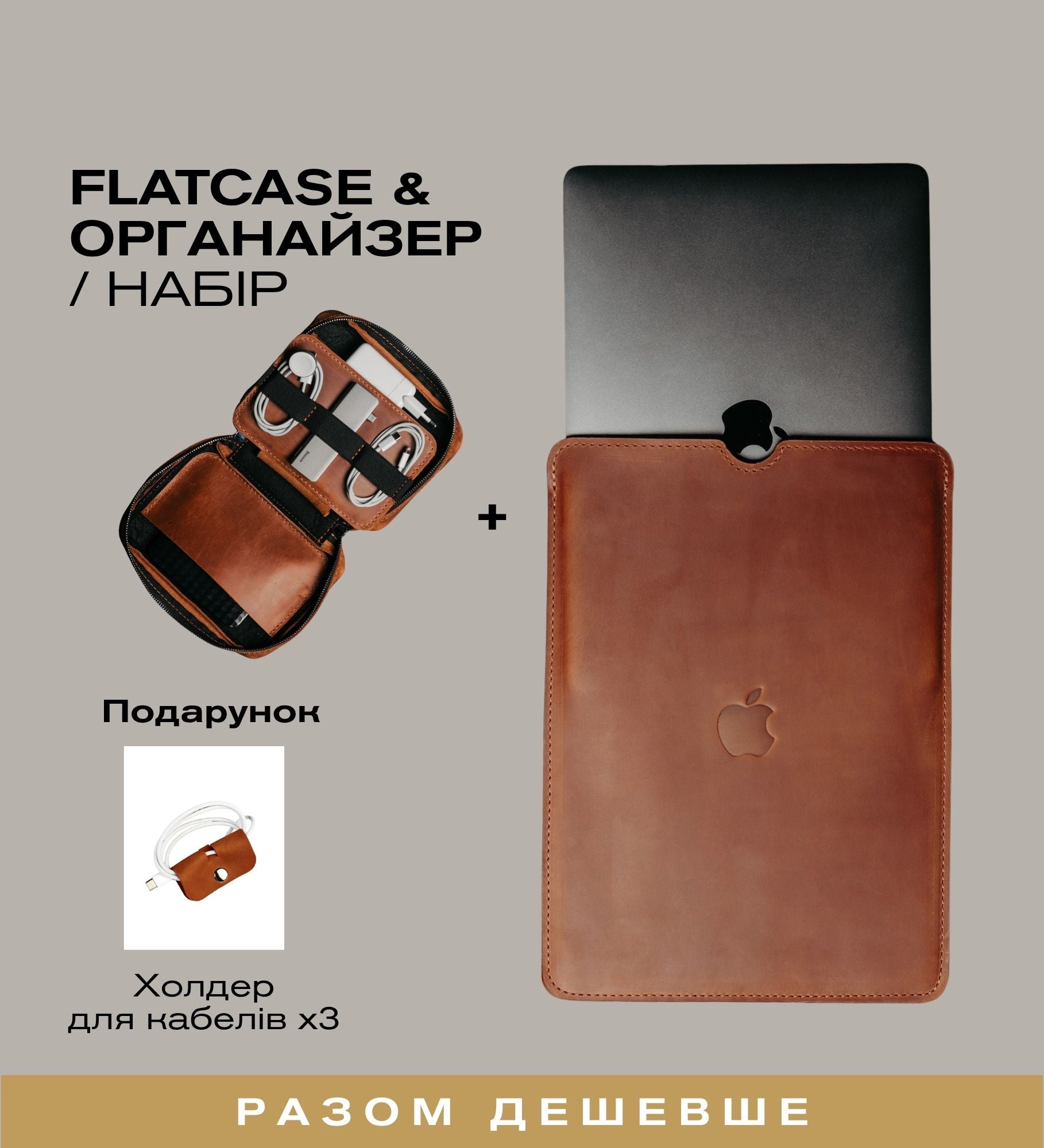 Шкіряний чохол для ноутбука + органайзер для техніки та кабелів на кожен день