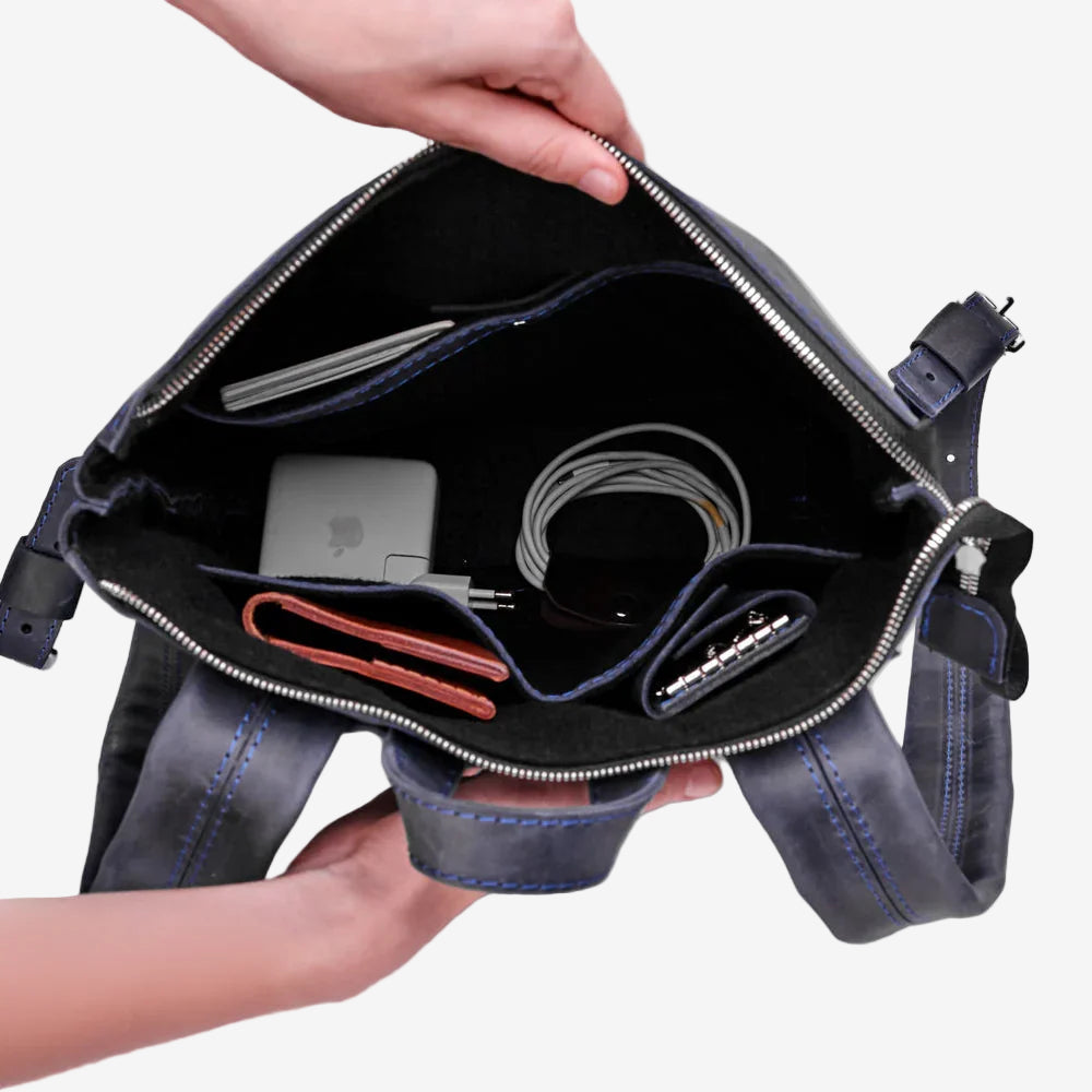 - Місткий та функціональний – вміщує ноутбук, планшет, MacBook, документи, одяг, пляшку з водою тощо.