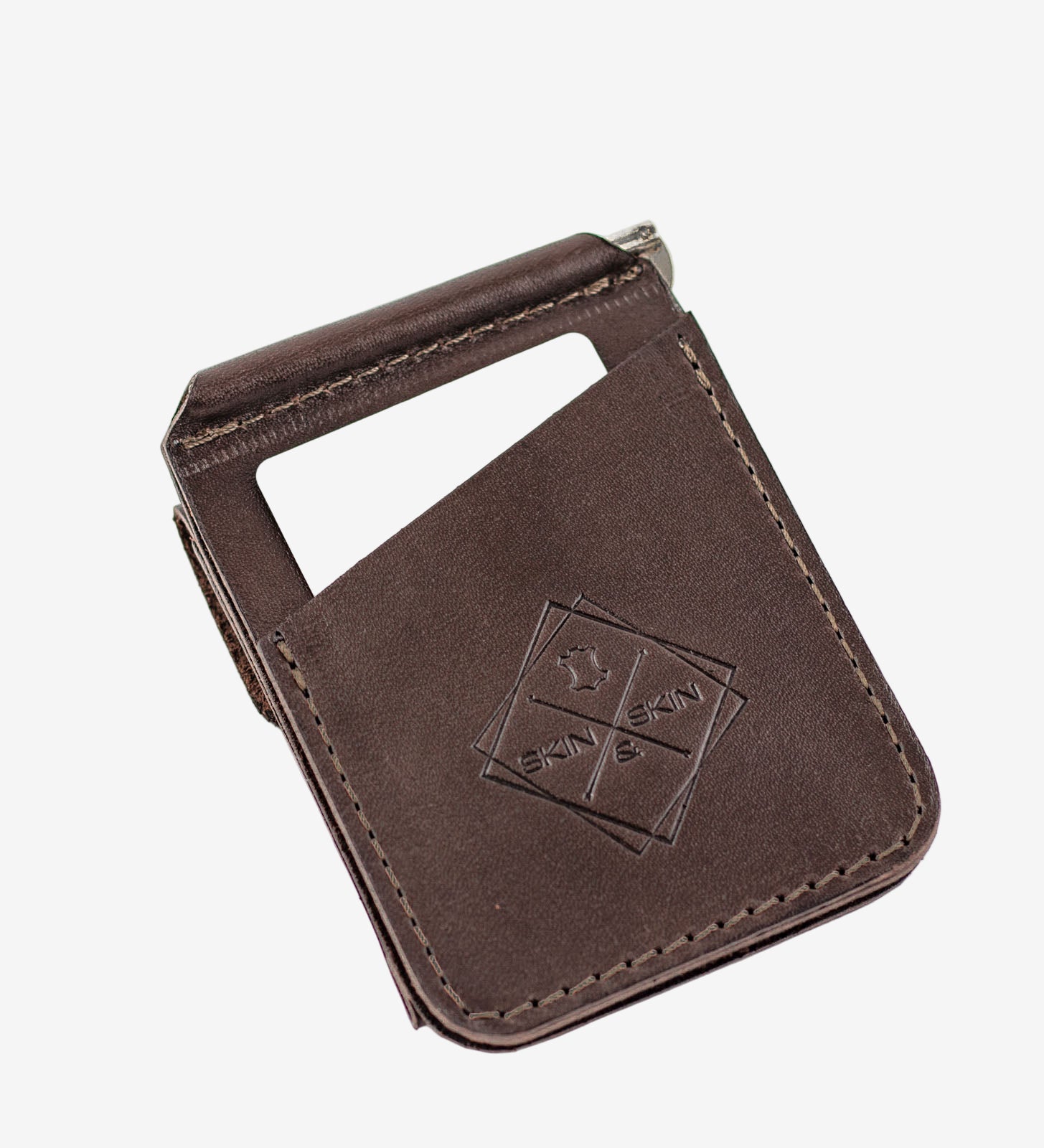 - Затискач для купюр виготовлений із натуральної шкіри. Модель неймовірно зручна у використанні – вона з легкістю поміщається навіть у кишеню брюк або джинсів.