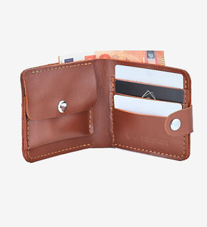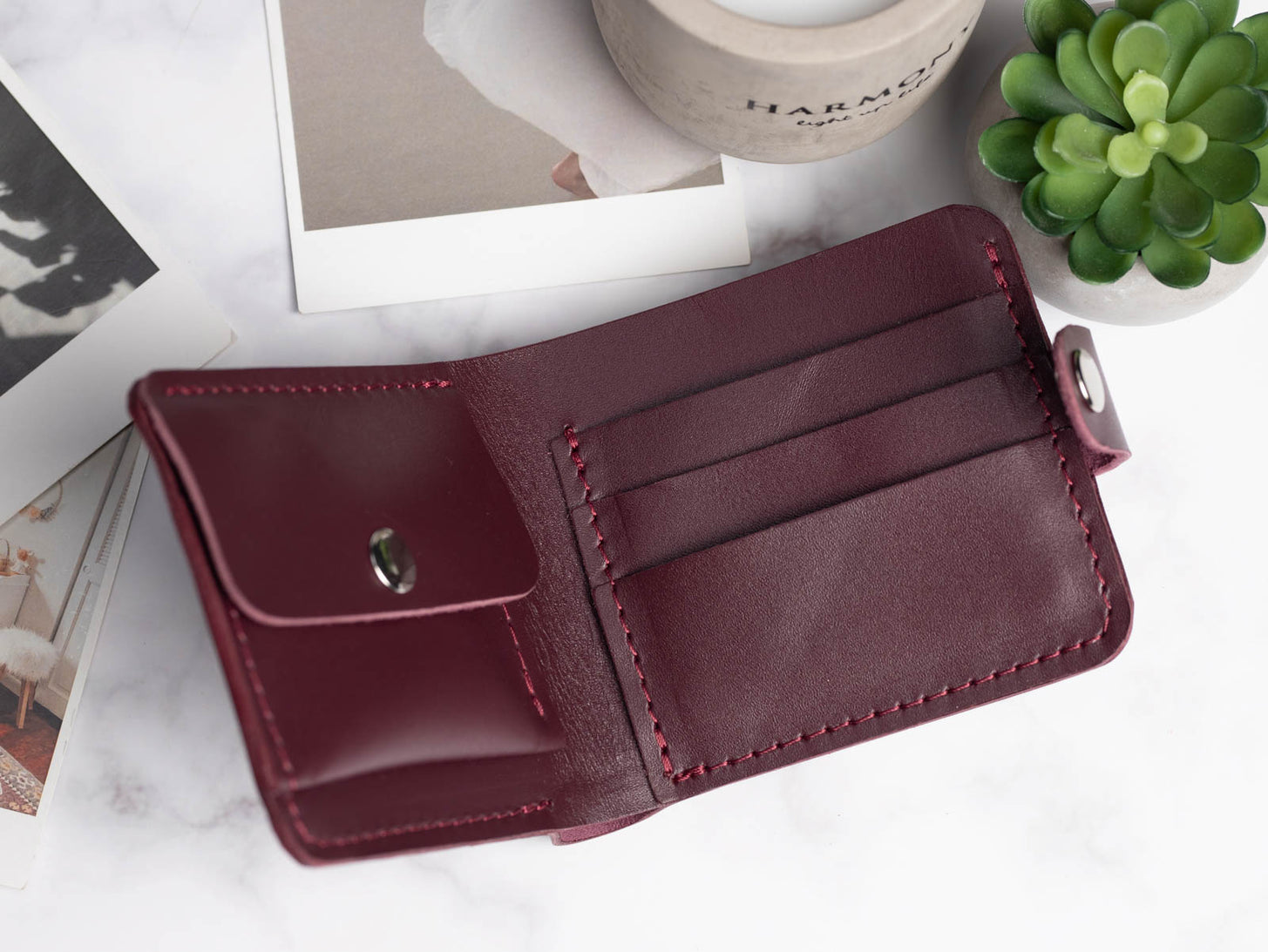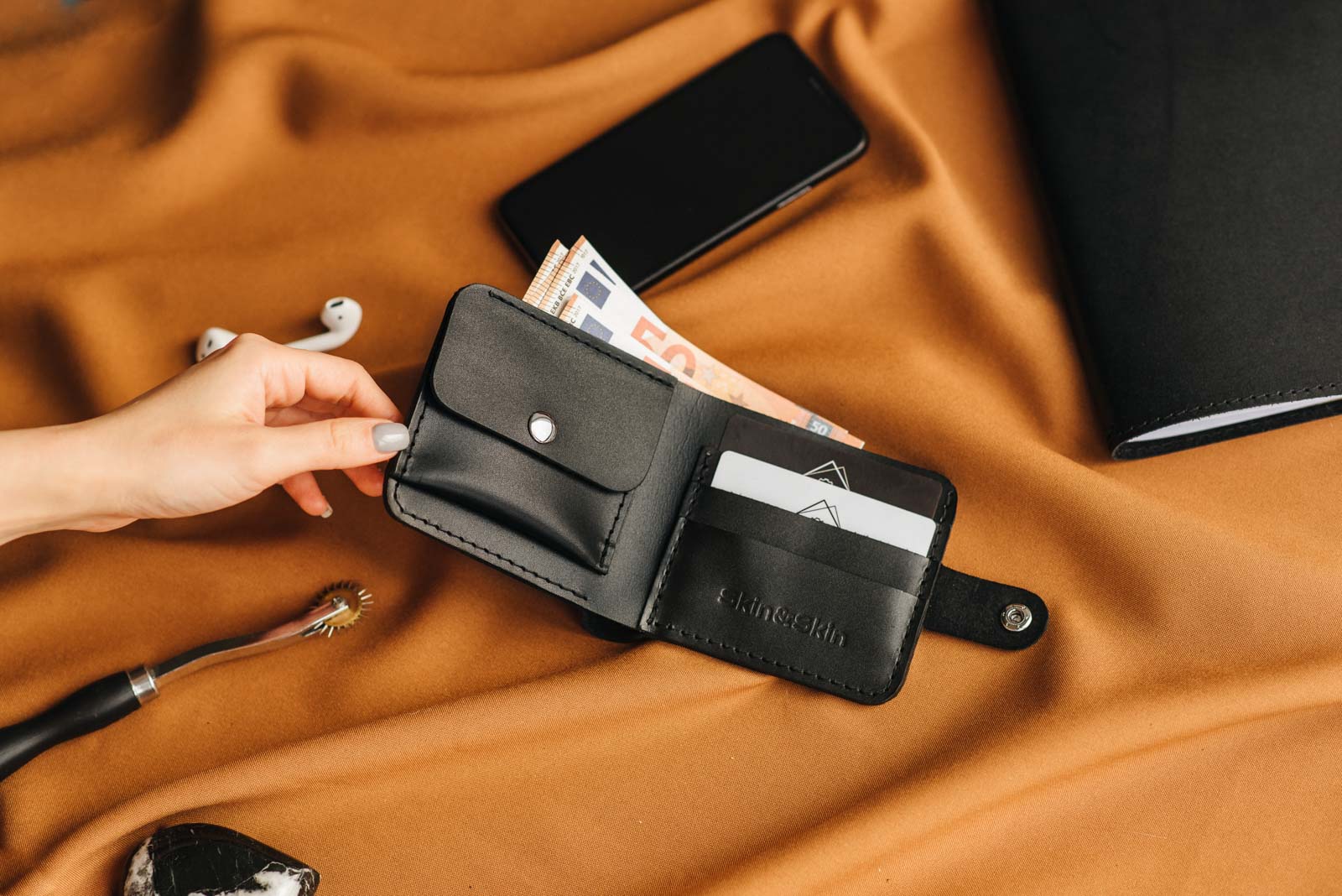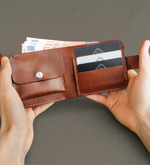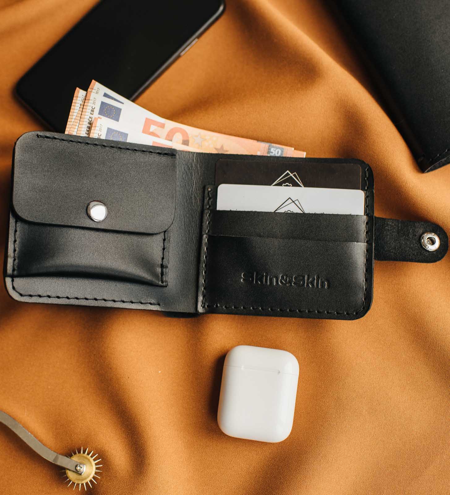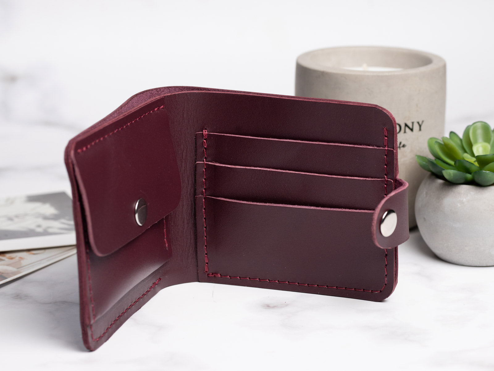 1. Біфолд має 1 відділ для купюр і 3 слоти під картки. У ньому є кишеня для монет і дрібничок.