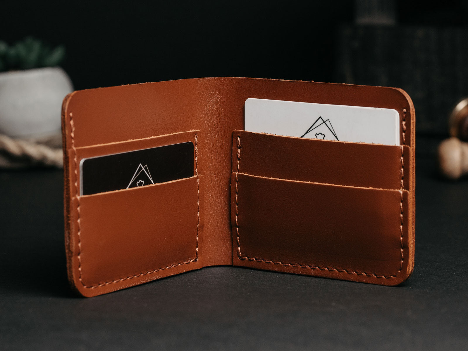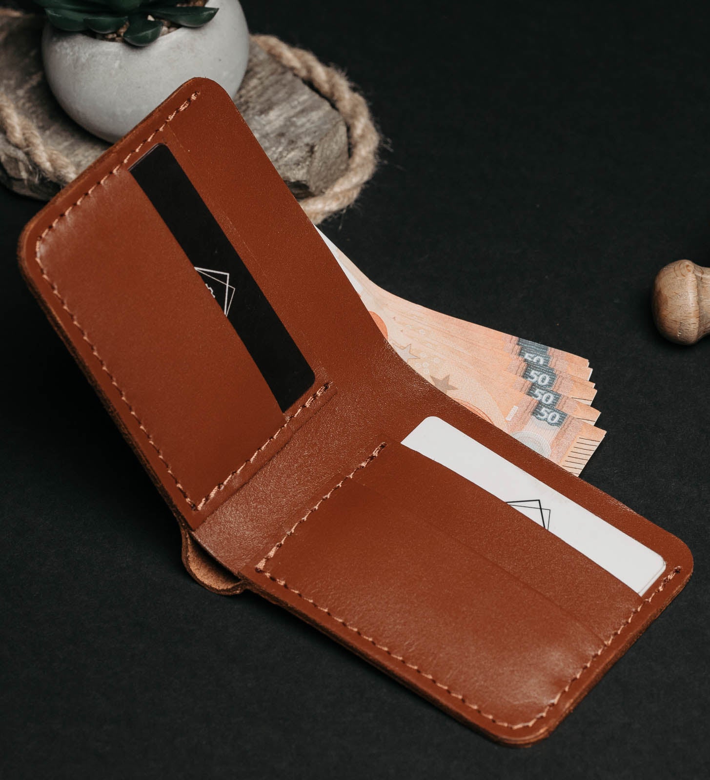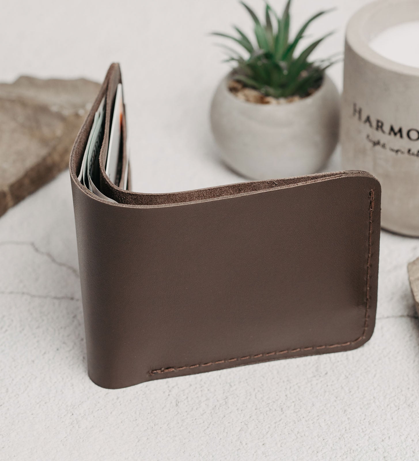Біфолд Slim – максимально компактний класичний варіант гаманця. Виготовлений із натуральної шкіри. Адаптований під українські купюри. На відміну від інших моделей – Біфолду та Тріфолду, Біфолд Слім не застібається на кнопку. Гаманець достатньо простий та лаконічний. Аксесуар доволі вільний, але при цьому відмінно тримає форму.