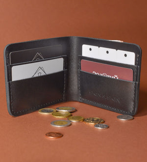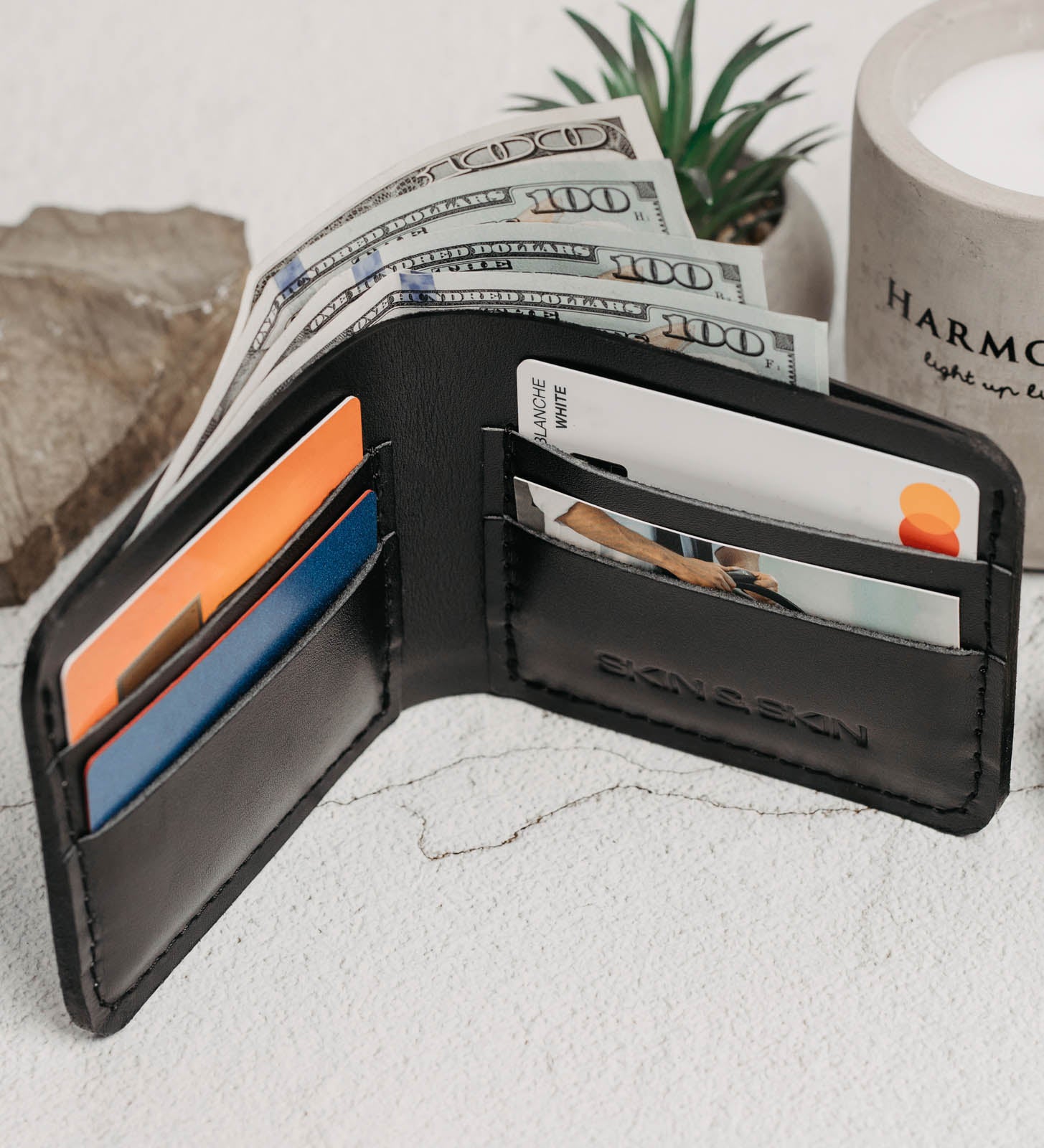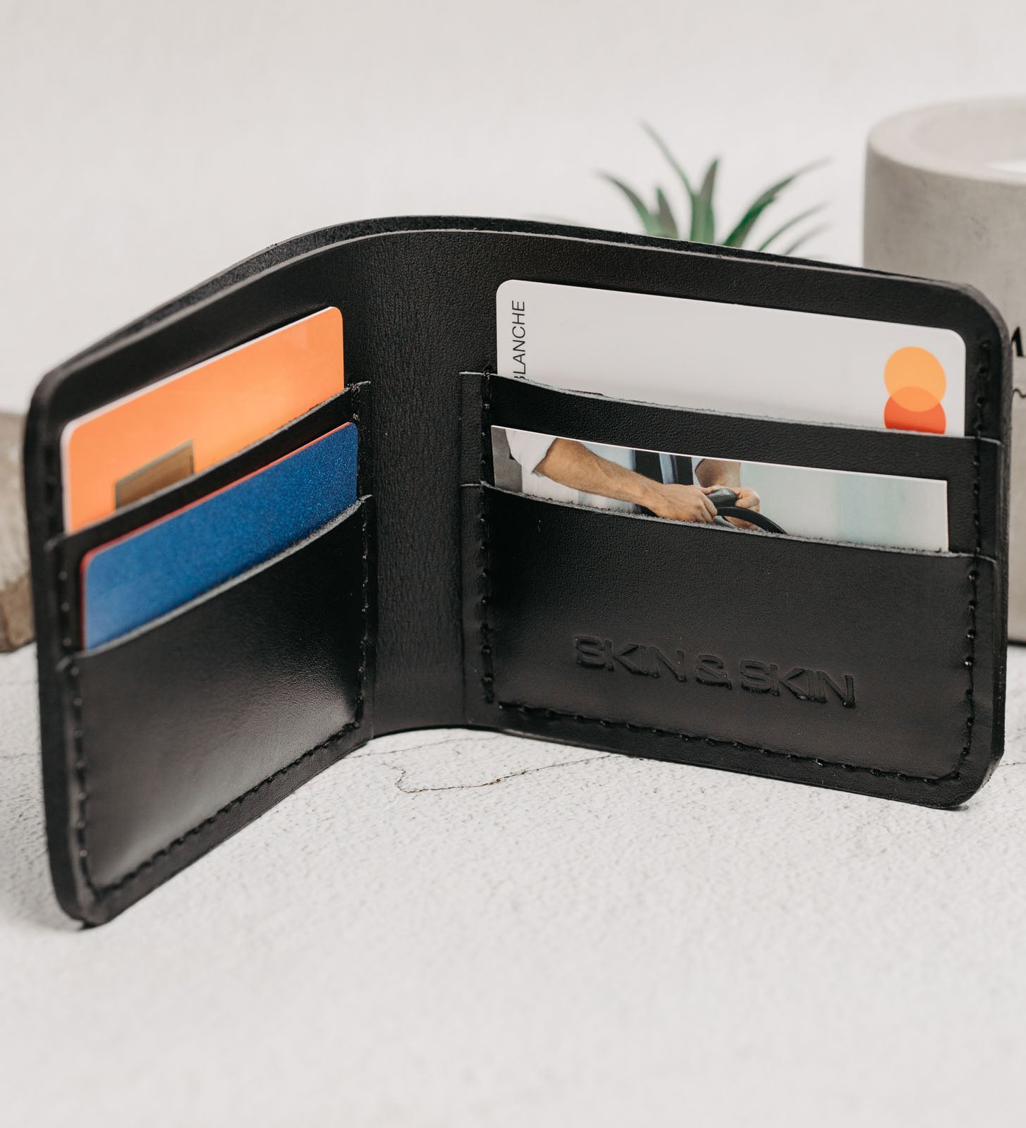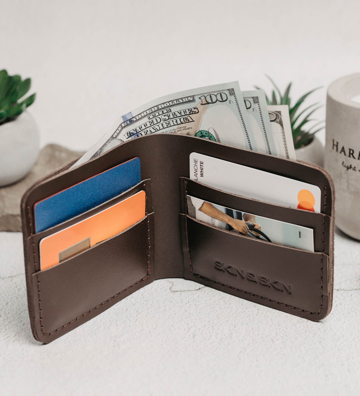 Біфолд Slim – максимально компактний класичний варіант гаманця. Виготовлений із натуральної шкіри. Адаптований під українські купюри. На відміну від інших моделей – Біфолду та Тріфолду, Біфолд Слім не застібається на кнопку. Гаманець достатньо простий та лаконічний. Аксесуар доволі вільний, але при цьому відмінно тримає форму.