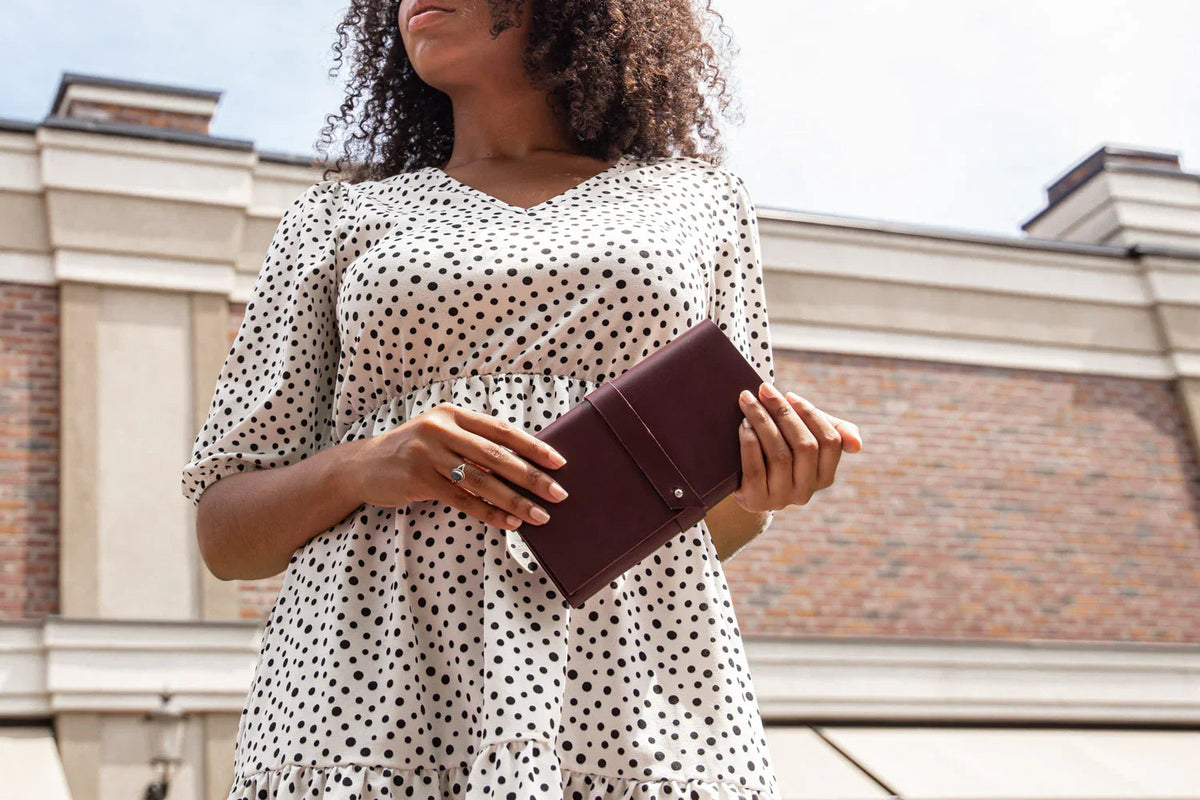 Незалежно від того, чи ви збираєтеся на роботу, в подорож чи на офіційний захід, Venezia елегантно організує ваші щоденні речі. Надійний клапан із застібкою на кнопку гарантує, що все залишиться на місці, надаючи гаманцю мінімалістичного та структурованого вигляду.