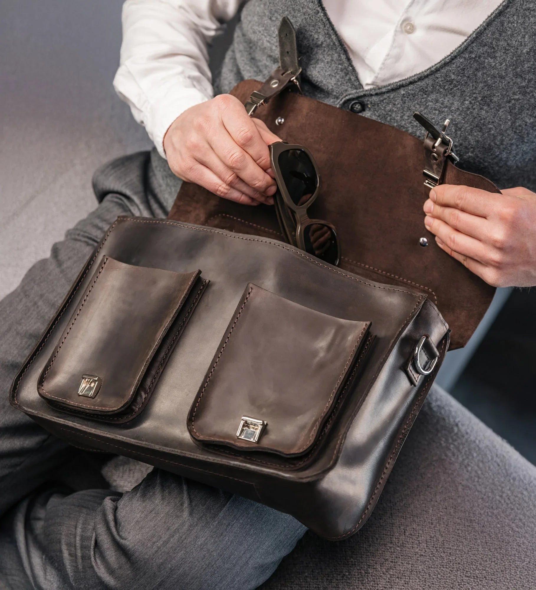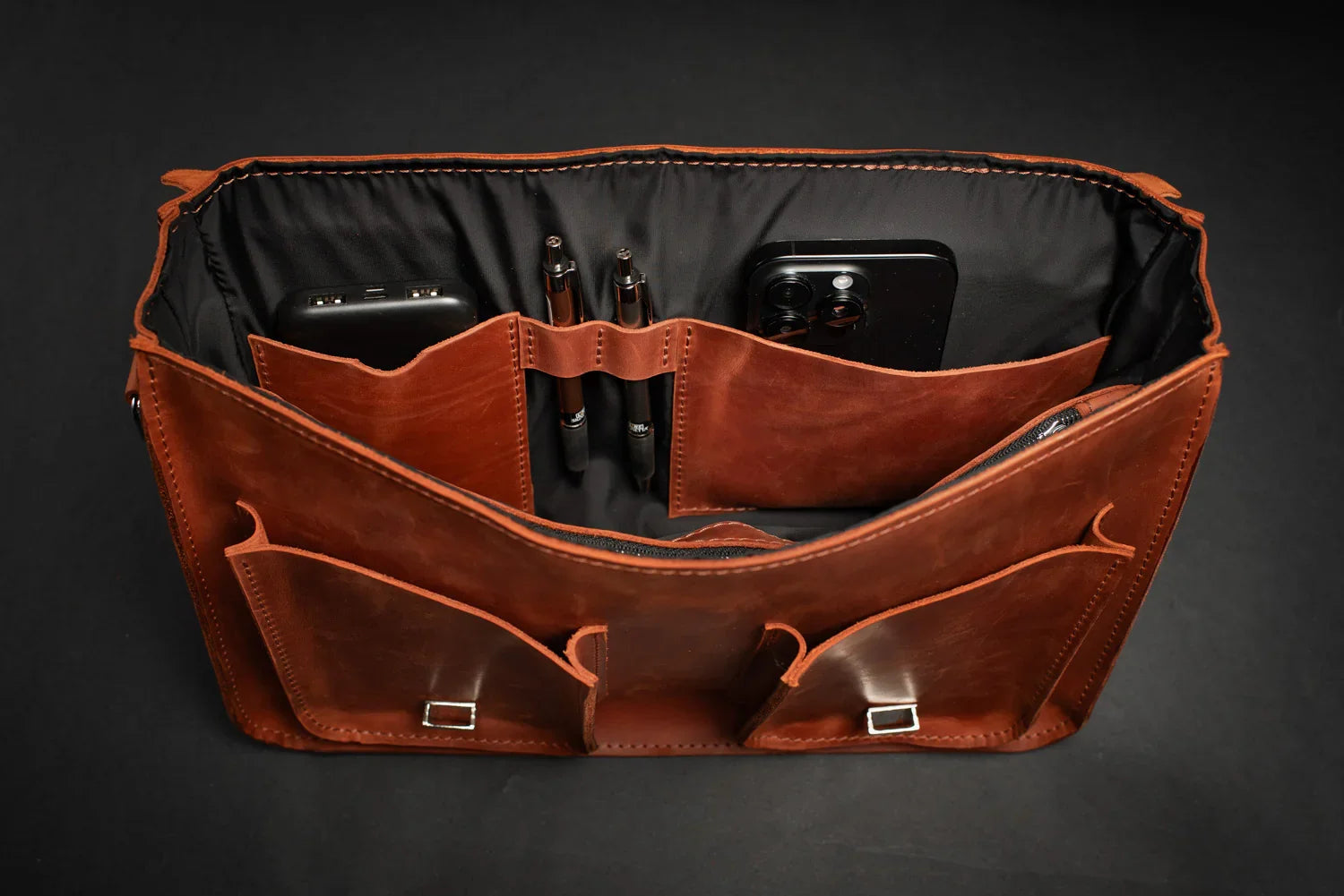 Натхненний традиційними британськими сашелями, портфель BARRISTER – це вишукана шкіряна сумка для професіоналів, які цінують позачасову естетику та сучасну функціональність. Його структурований силует, високоякісна шкіра та продумані відділення роблять його ідеальним супутником на кожен день, незалежно від того, чи ви прямуєте в офіс, на зустріч чи в кафе.