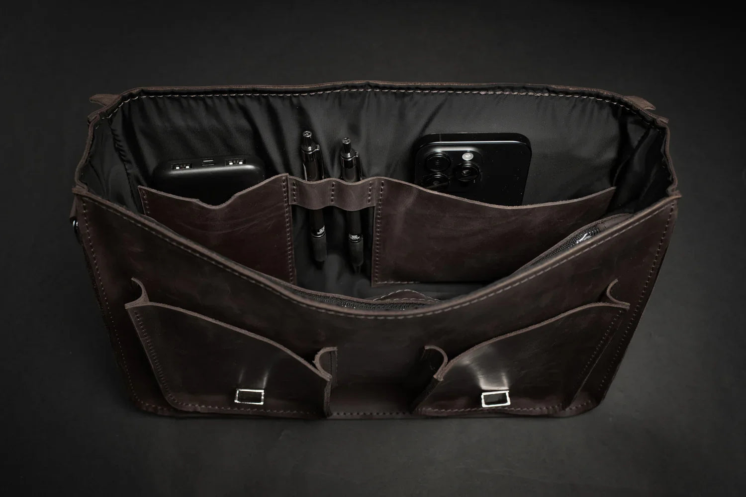 Натхненний традиційними британськими сашелями, портфель BARRISTER – це вишукана шкіряна сумка для професіоналів, які цінують позачасову естетику та сучасну функціональність. Його структурований силует, високоякісна шкіра та продумані відділення роблять його ідеальним супутником на кожен день, незалежно від того, чи ви прямуєте в офіс, на зустріч чи в кафе.