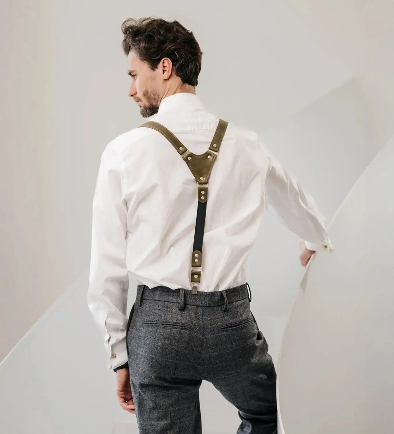 Справте сміливе враження з цими підтяжками ручної роботи, виготовленими з цільнозернистої шкіри Crazy Horse — вощеної матової шкіри, яка з часом набуває природної патини та вінтажного вигляду. Розроблені з урахуванням комфорту та стилю, ці підтяжки однаково добре підійдуть для весіль, офіційних заходів або ж для того, щоб доповнити ваш повсякденний образ.