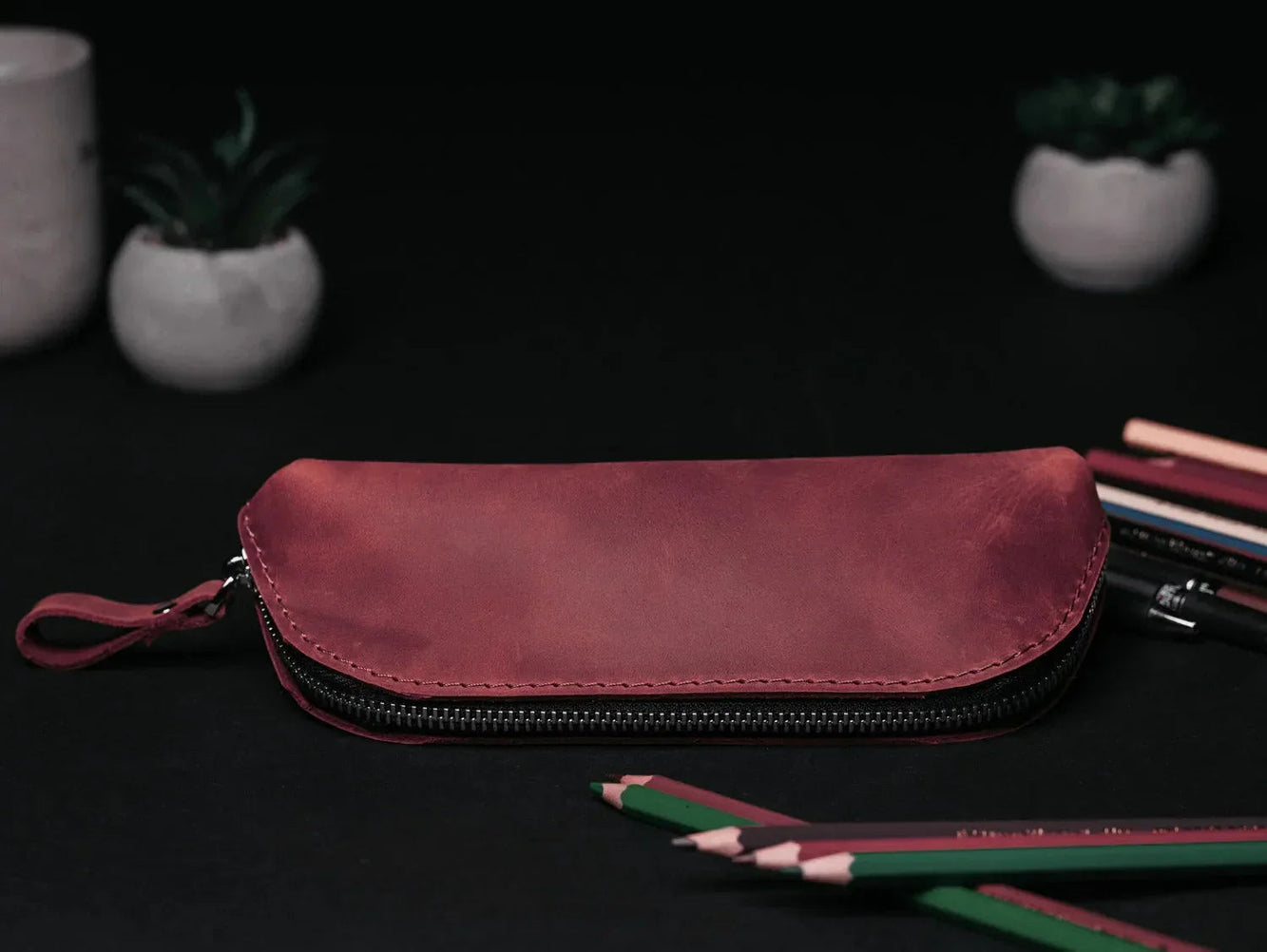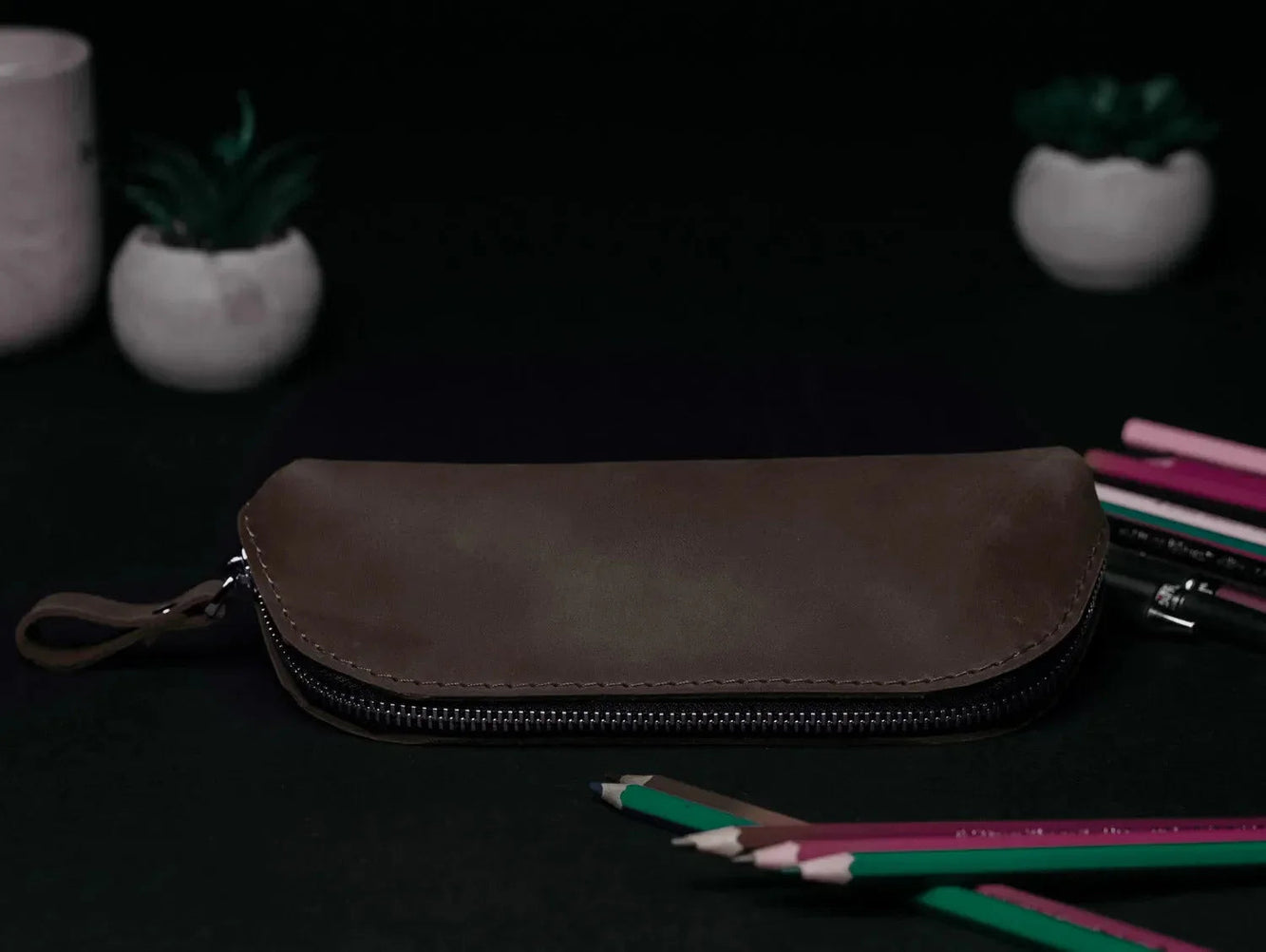Кішечка для олівців на блискавці – органайзер із зістареної шкіри