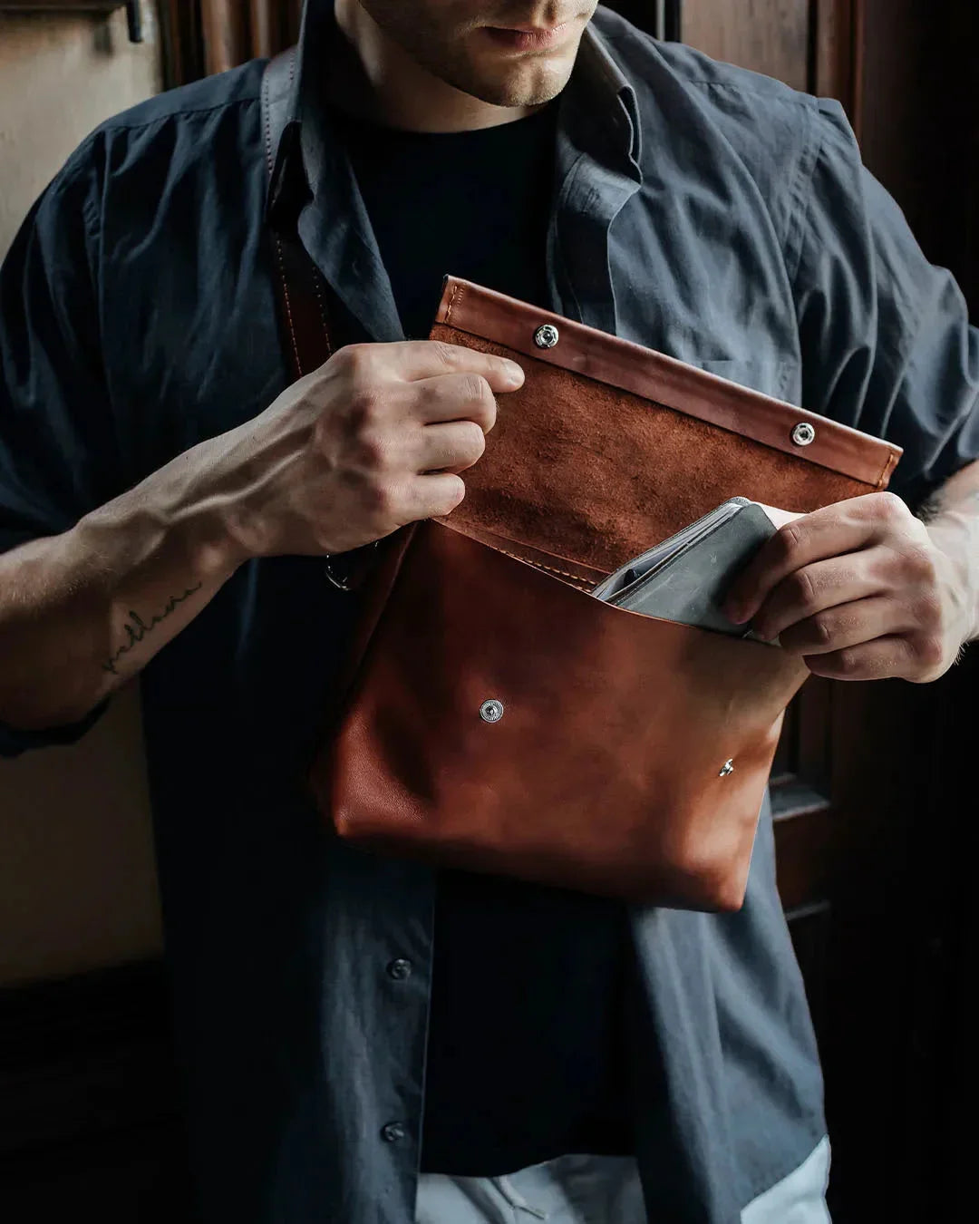 Преміальні аксесуари зі шкіри, виготовлені вручну у власній майстерні, створені для довговічності. Ми проектуємо їх так, щоб вони не втрачали актуальності з часом, допомагали зменшувати надлишкове споживання та несли особистий характер у кожній деталі.