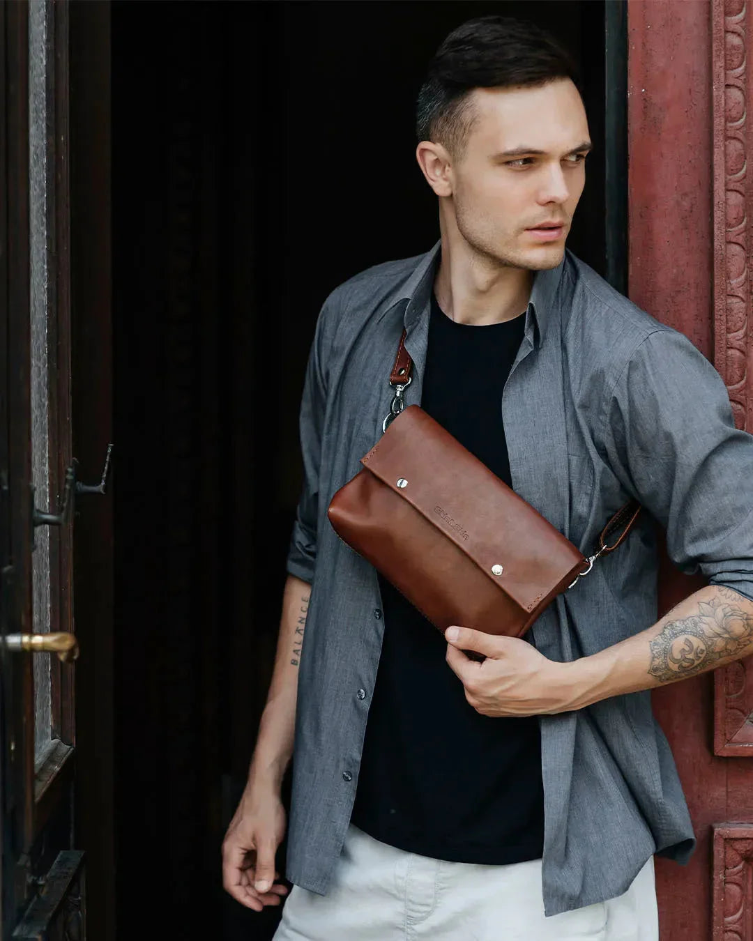 Можете носити цю шкіряну на поясі для швидкого доступу до ключів і телефону, перекинути через плече, щоб руки були вільні, або відстібнути ремінець і тримати як клатч. Підходить і для тих, хто носить лише телефон з гаманцем, і для тих, хто не може вийти з дому без тонни різних дрібничок про всяк випадок, набиваючи ними кишені й усіляко саботуючи обʼємні сумки. Розуміємо вас, саме тому створили Crossbody – щоб усе це вмістити саме в компактний аксесуар.