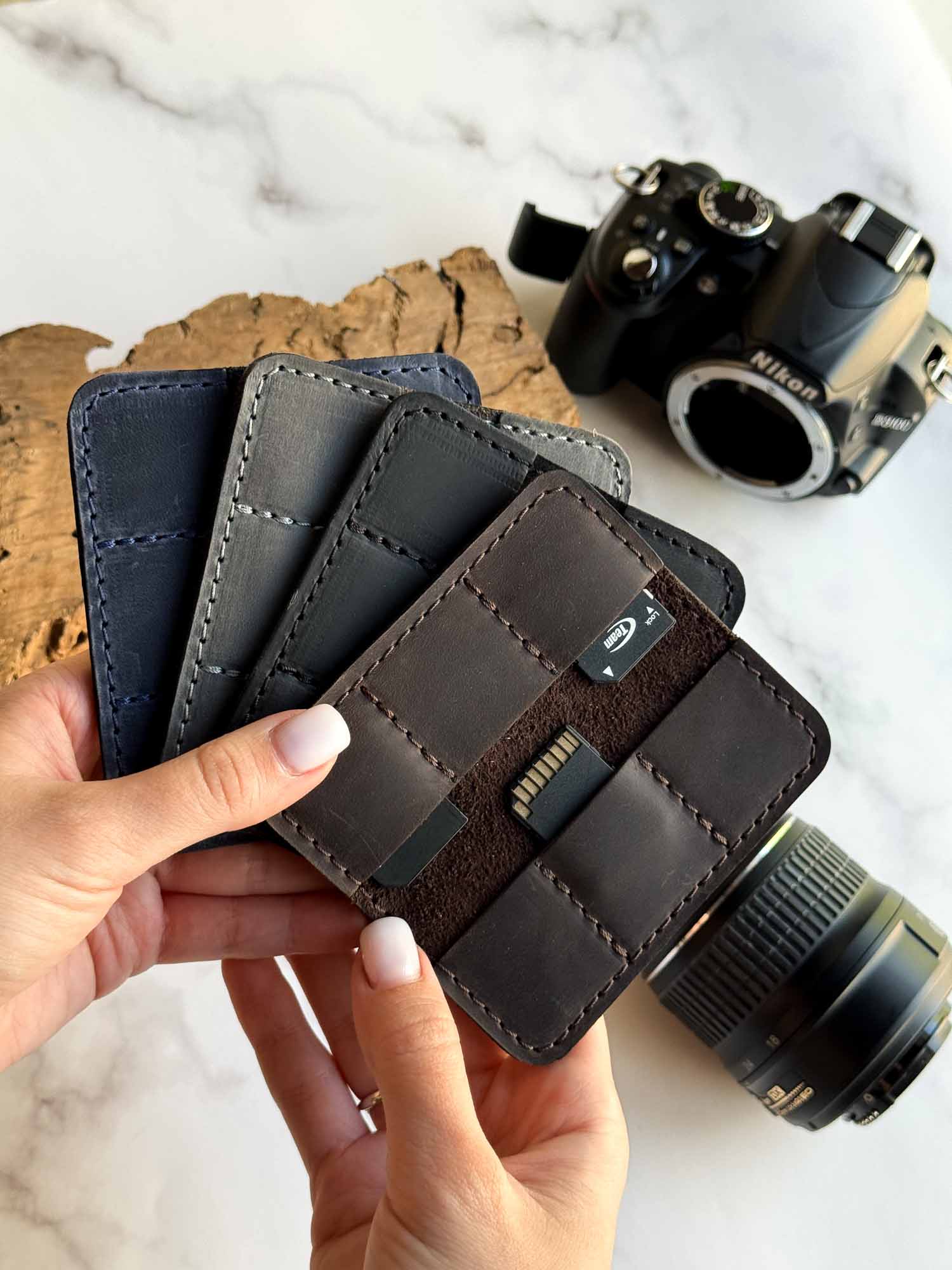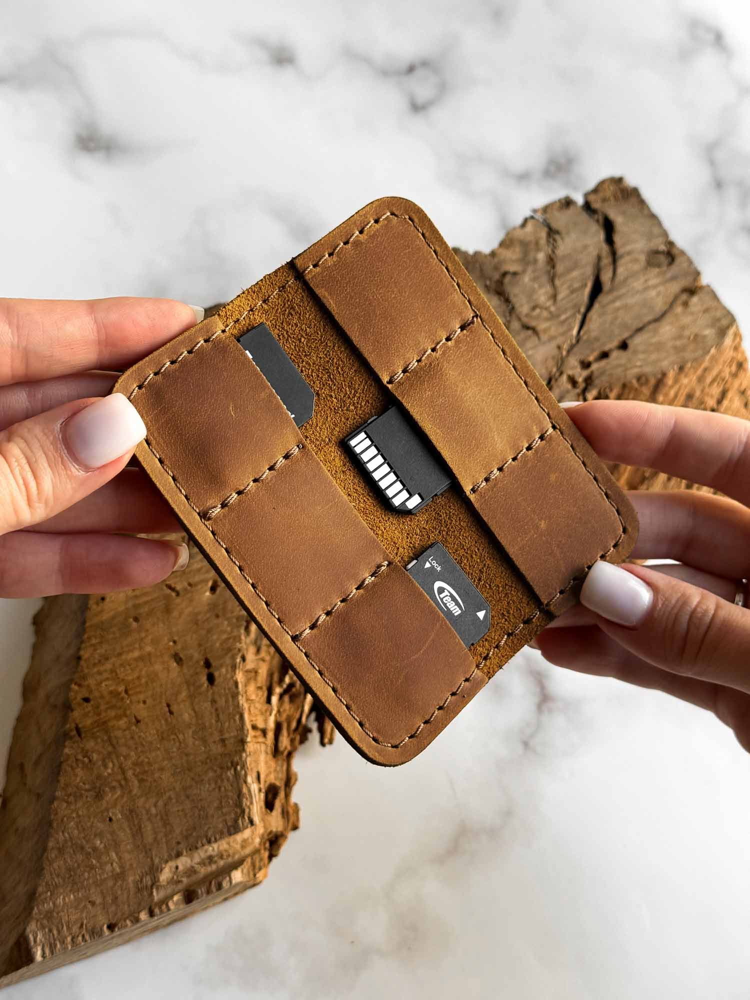 Кейс для SD-карт зі шкіри Crazy Horse на 6 слотів | Органайзер для фотографа