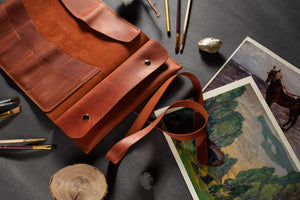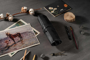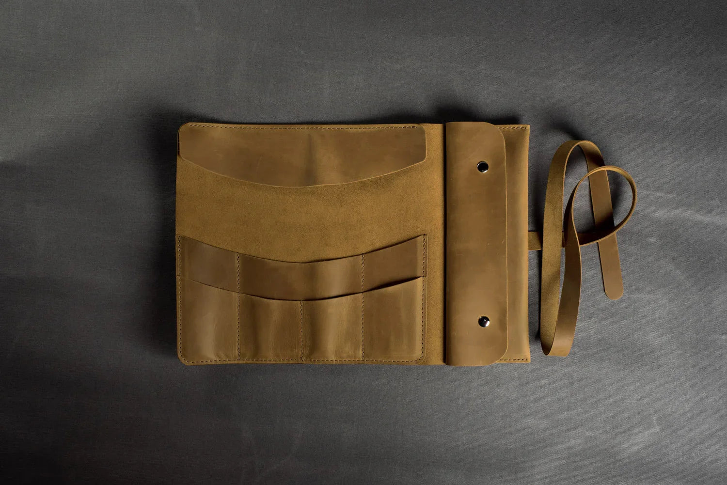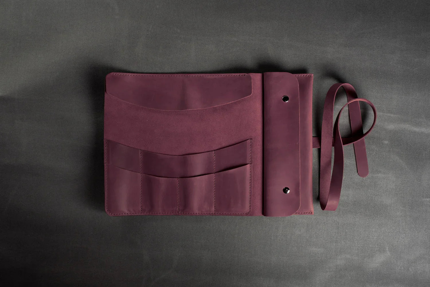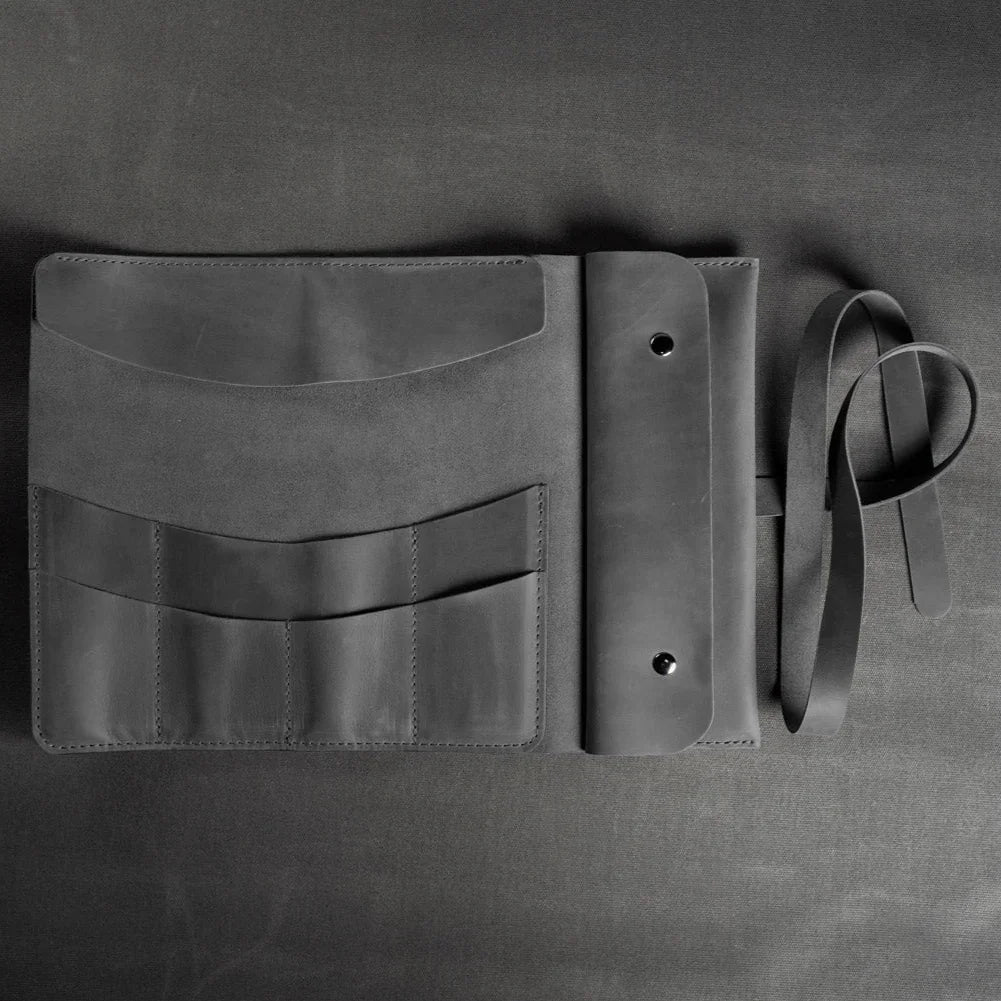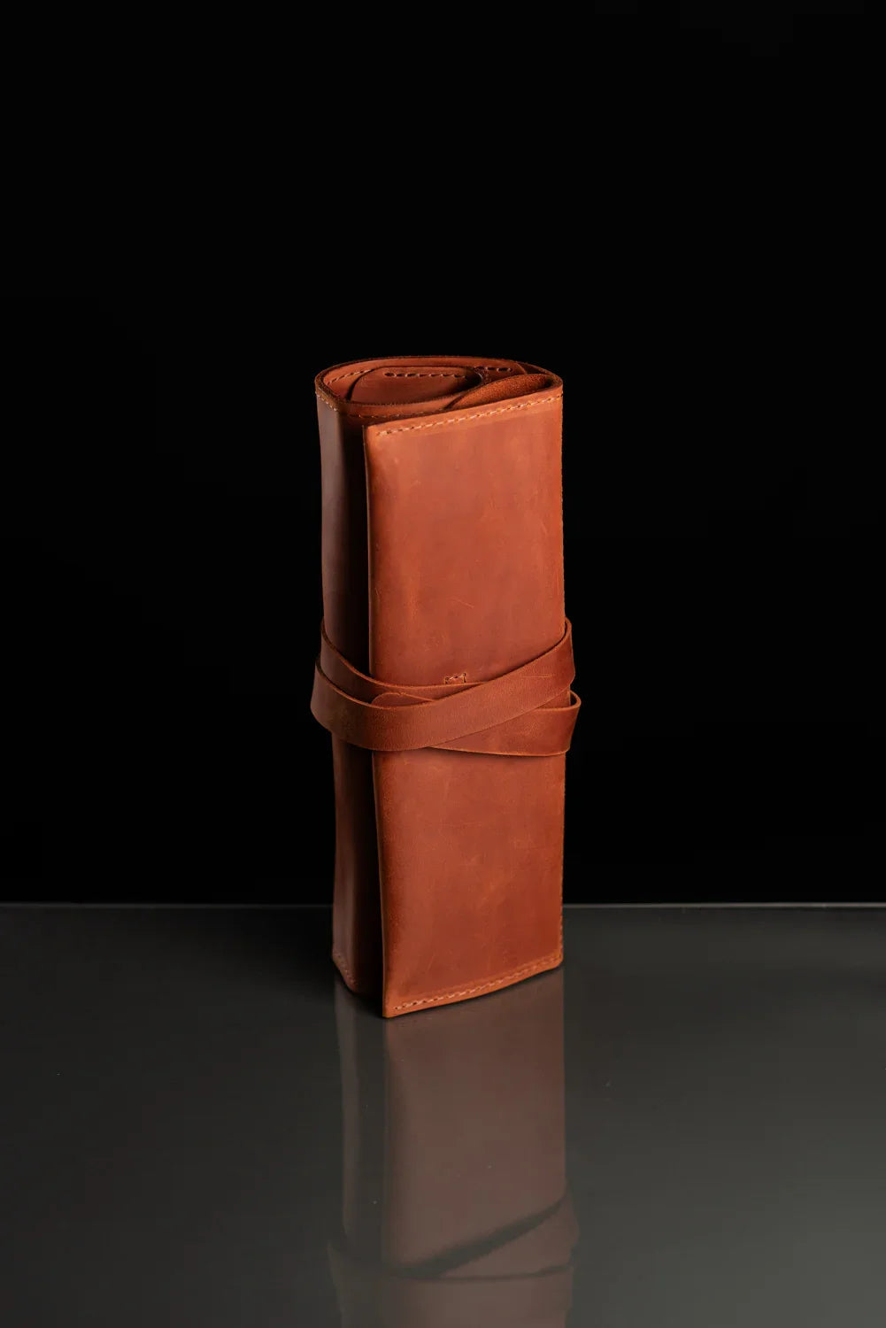 Згортайте футляр у рулон і фіксуйте шкіряним ремінцем – він легко поміщається у рюкзак, сумку або валізу.