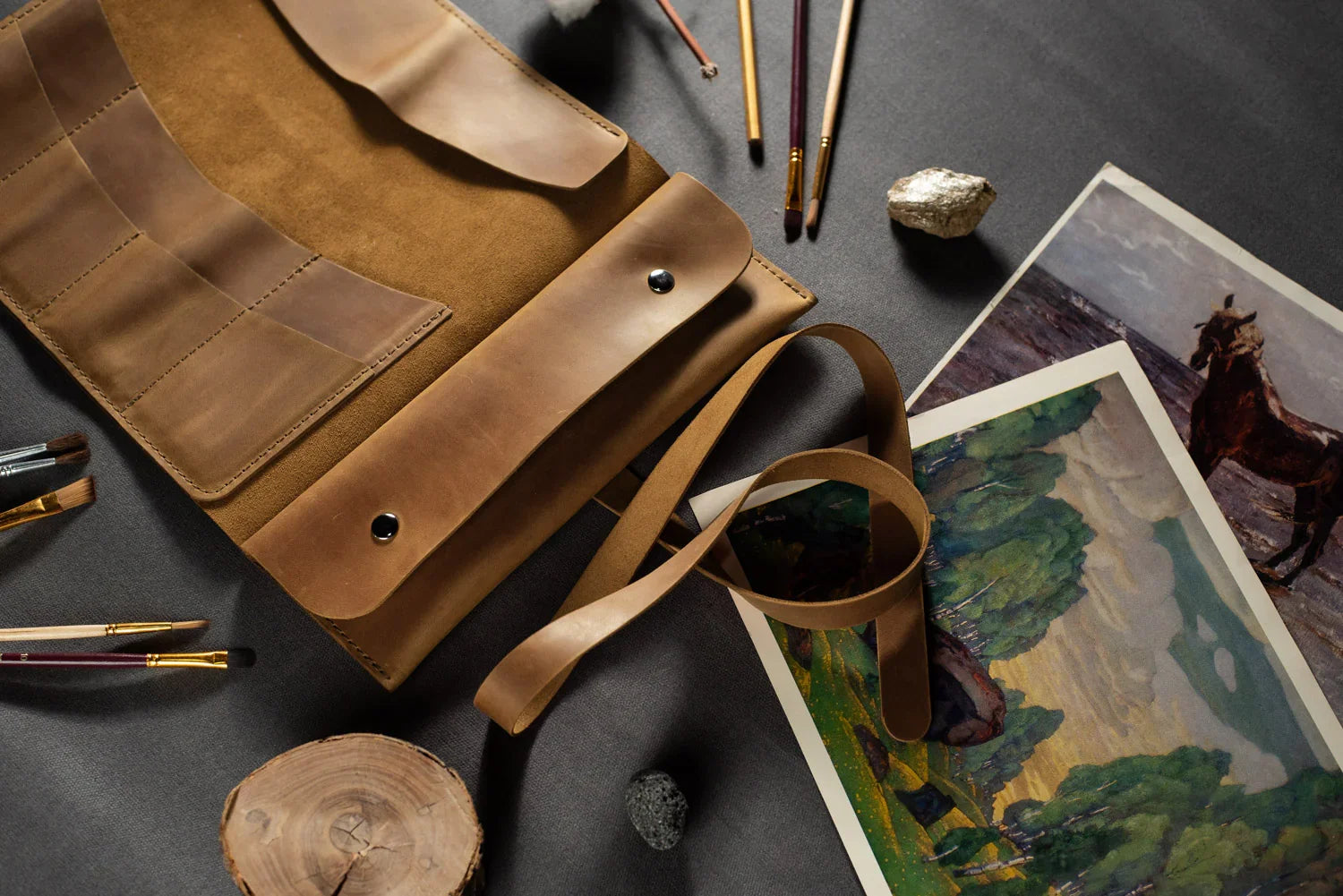 Шкіряний рол-органайзер – універсальний футляр для пензлів, інструментів або косметики