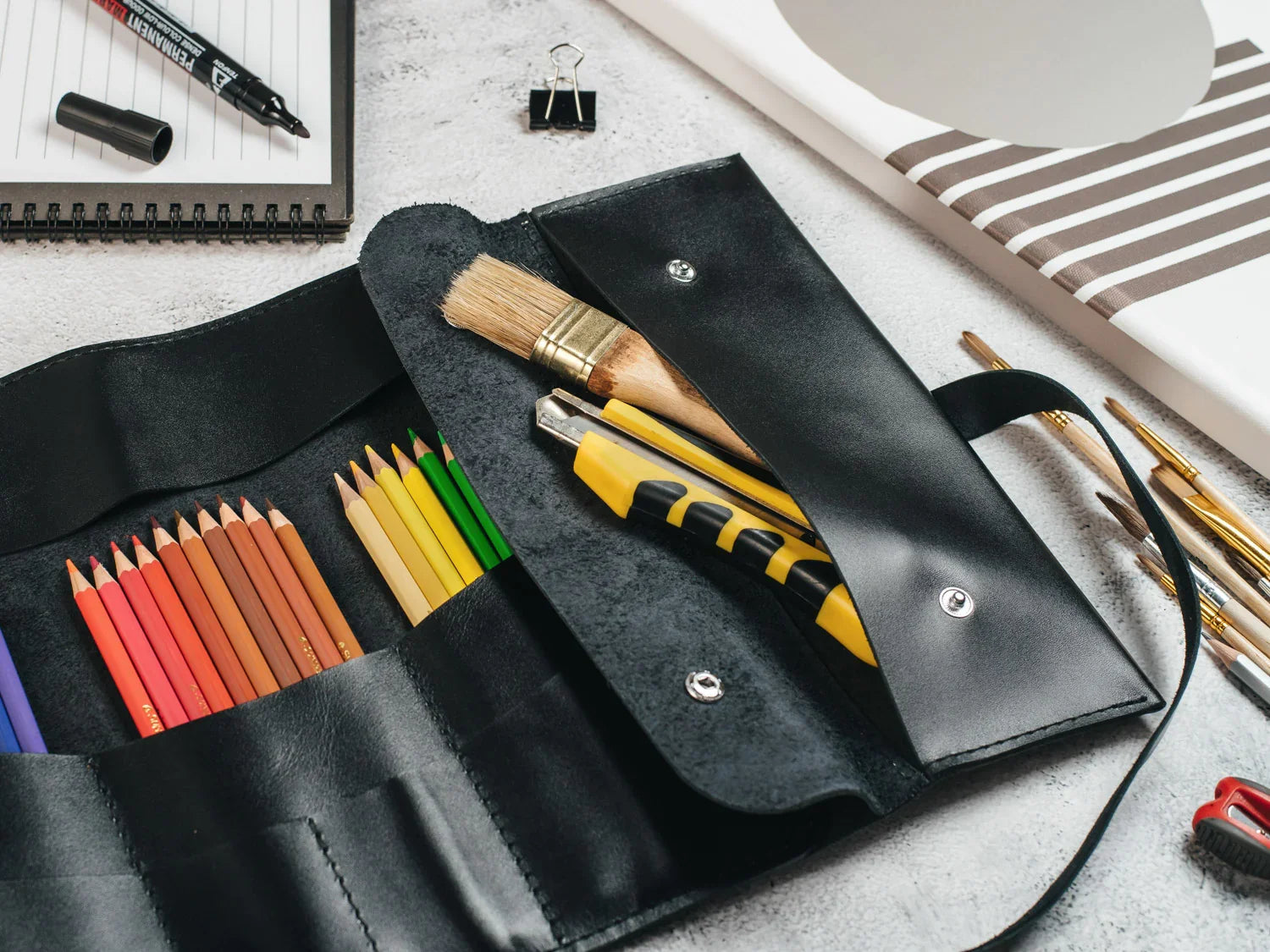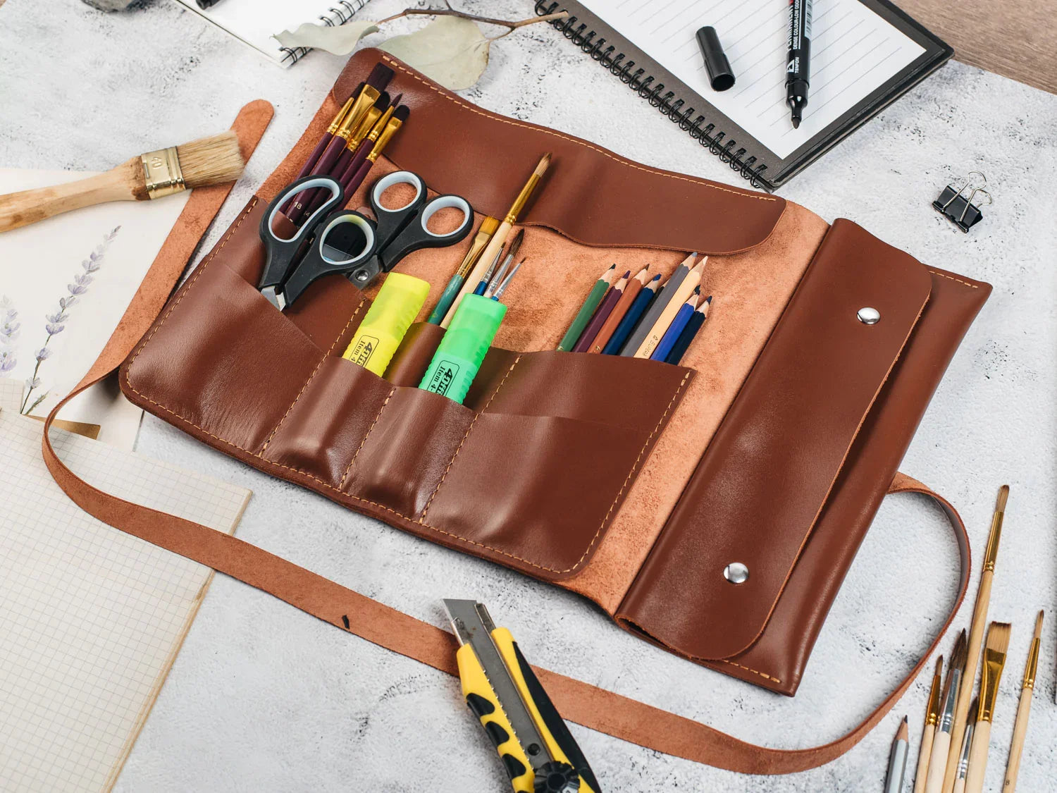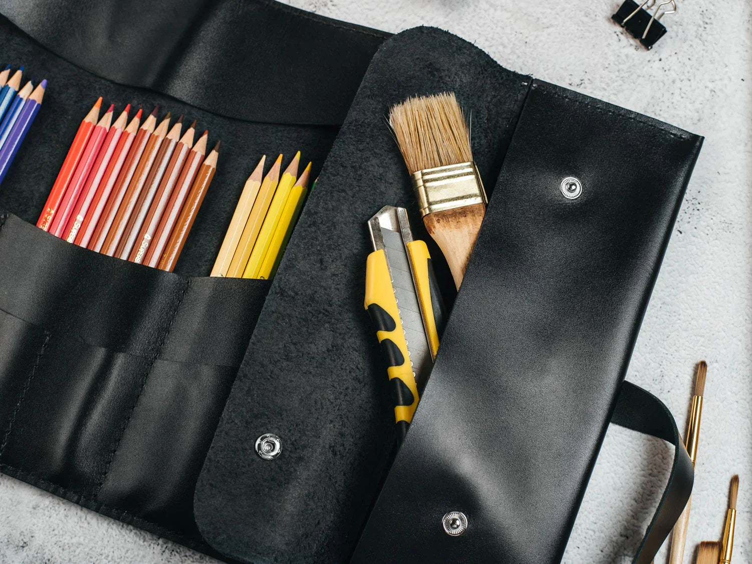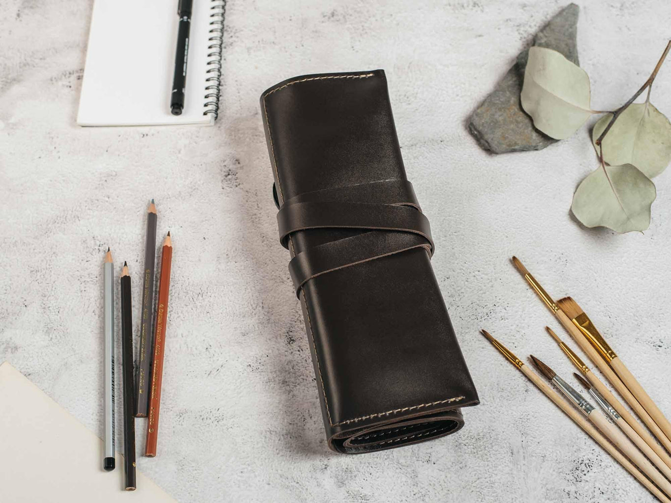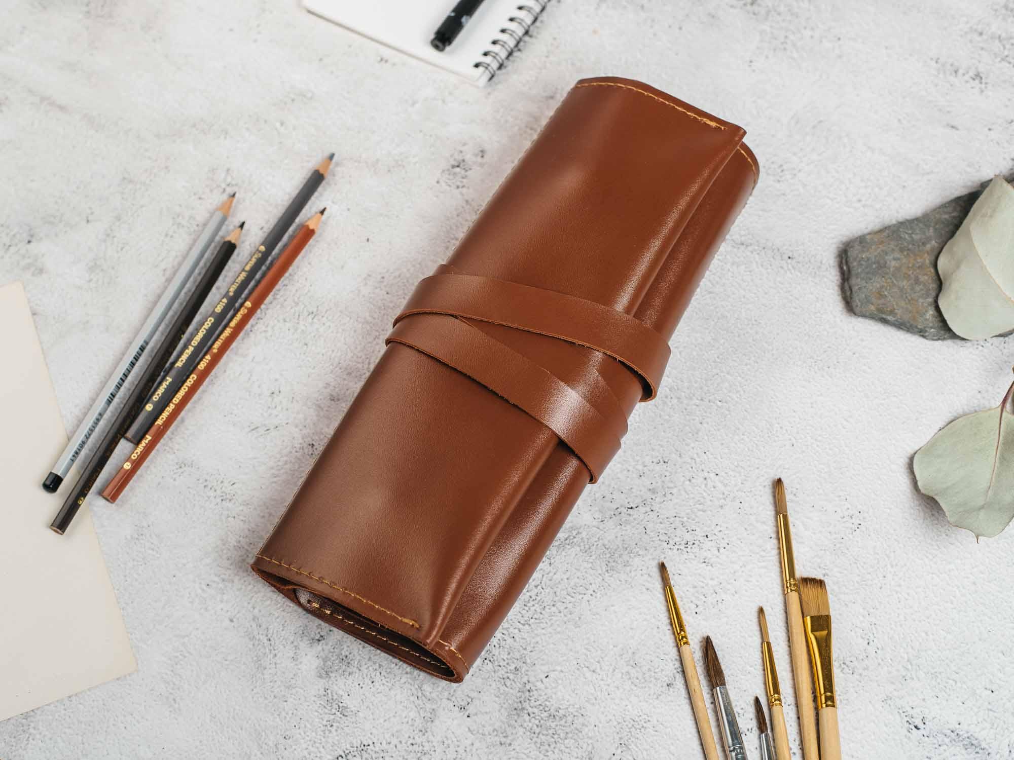 Шкіряний рол для інструментів, пензлів чи косметики — елегантний та зручний у щоденному використанні