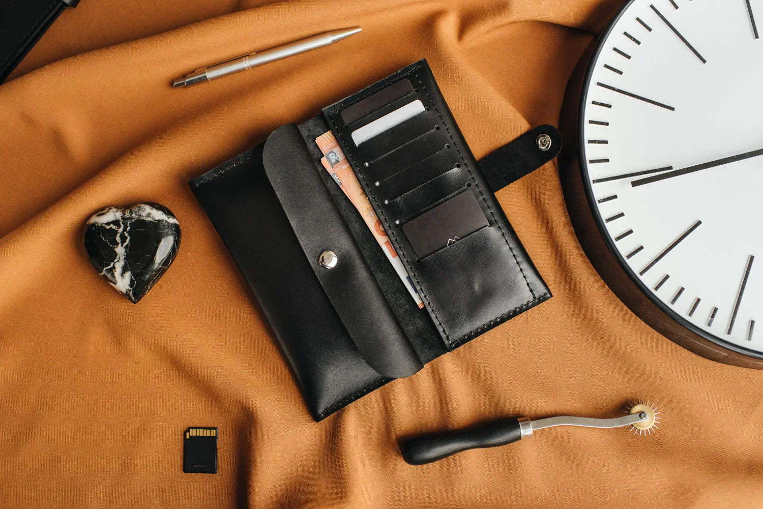 Преміальні аксесуари зі шкіри, виготовлені вручну у власній майстерні, створені для довговічності. Ми проектуємо їх так, щоб вони не втрачали актуальності з часом, допомагали зменшувати надлишкове споживання та несли особистий характер у кожній деталі.