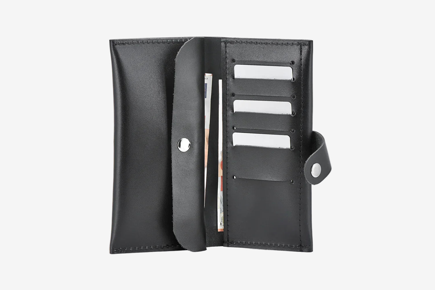 У шкіряному портмоне Роттердам слоти виконані у вигляді розрізів. Зверніть увагу на те, що їх необхідно заповнювати знизу догори. Якщо починати класти зверху, то картки будуть дещо провалюватися всередину. З іншого боку виробу розташована кишеня на кнопці. У ній дуже зручно зберігати монети, флешки та інші дрібниці, які стануть вам у нагоді в повсякденному житті.