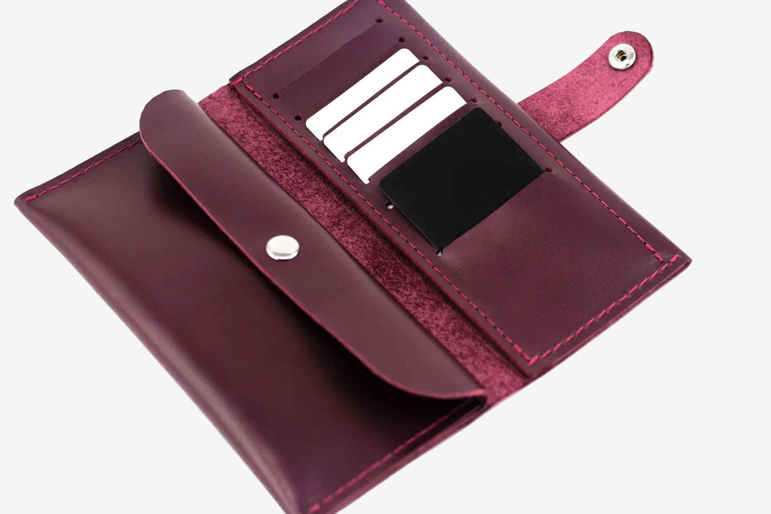 Портмоне з натуральної шкіри від Skin & Skin виконане в чорному, коньячному, червоному, коричневому, рожево-пудровому, зеленому, сірому, бордовому, синьому кольорах.