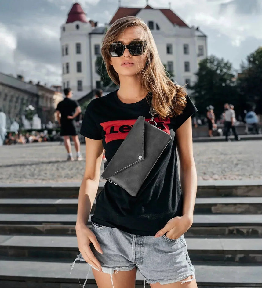 Та сама невеличка сумочка, яка потрібна на прогулянку, вечірку, в кафе чи для будь-якого виходу в люди – вотевер. Можна носити трьома способами: на поясі, через плече або як клатч, якщо зняти ремінець. Має лаконічний дизайн, тож пасуватиме як під сукню, так і під джинси зі светром.