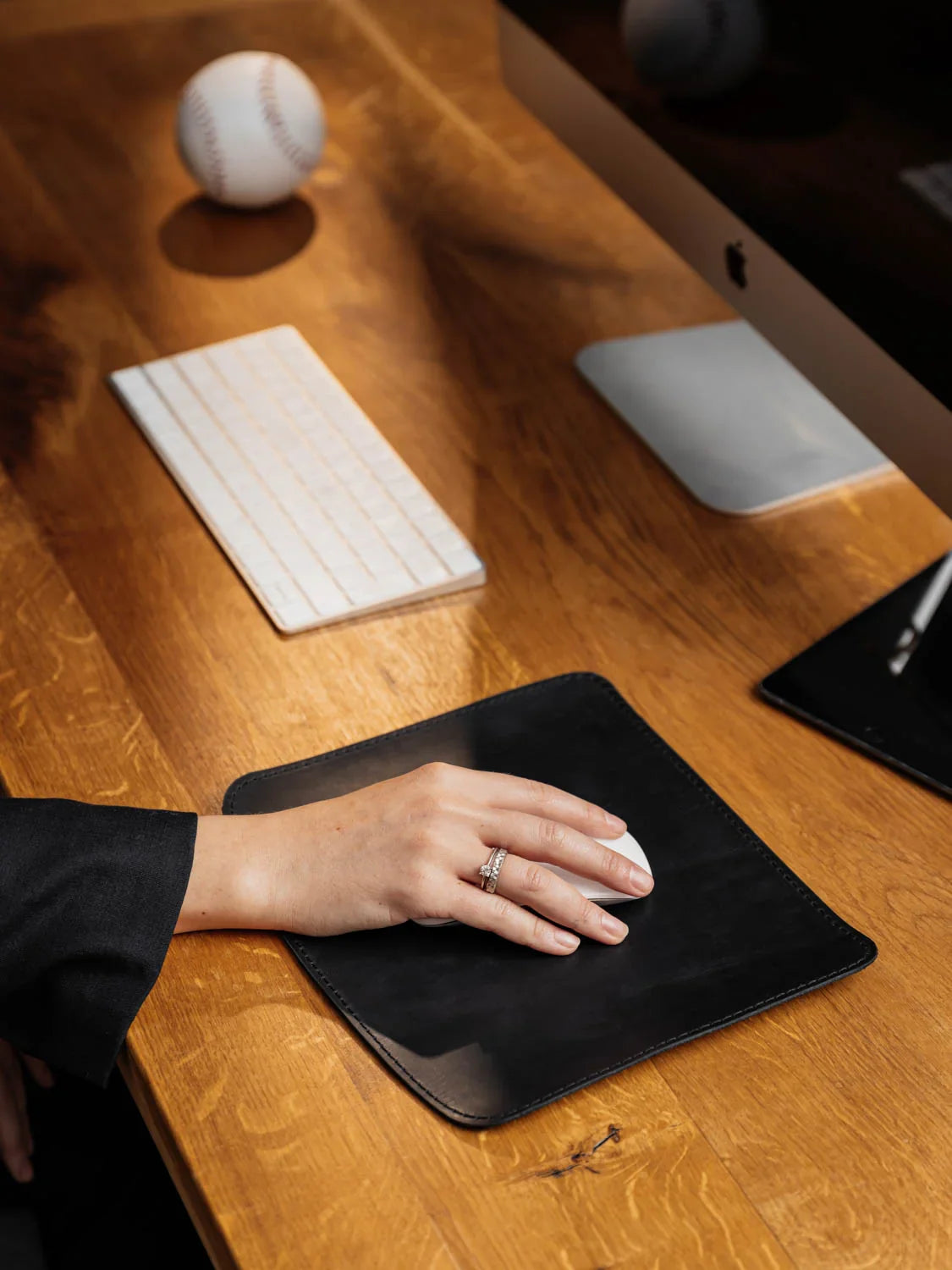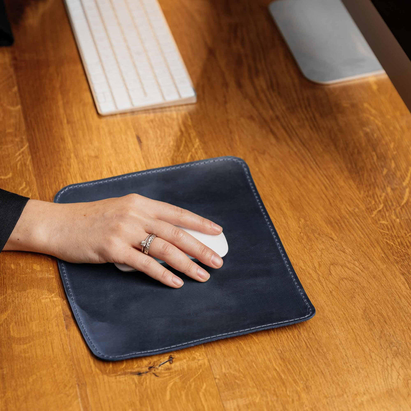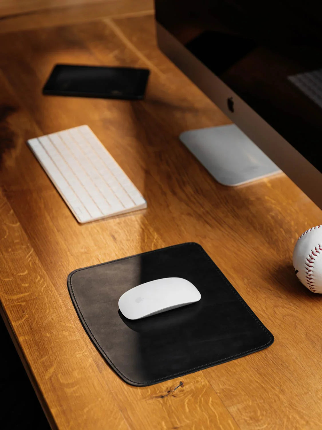 - Матеріал: натуральна шкіра Top Grain – гладка, але матова поверхня для точного руху миші й приємного тактильного відчуття.