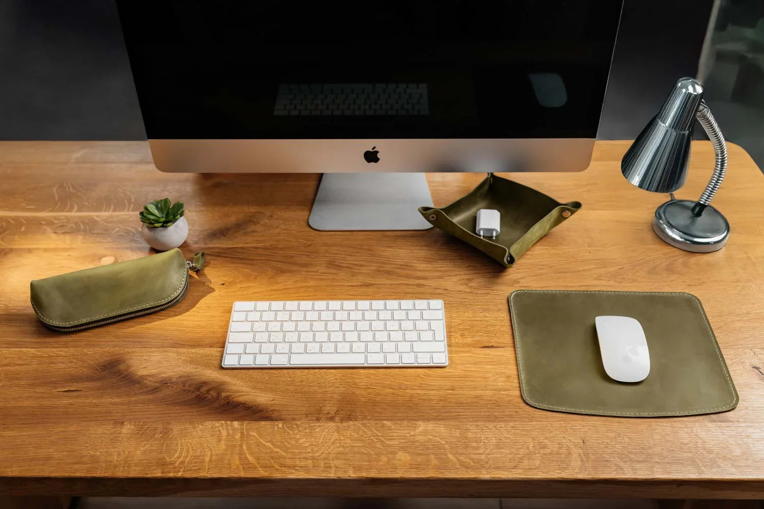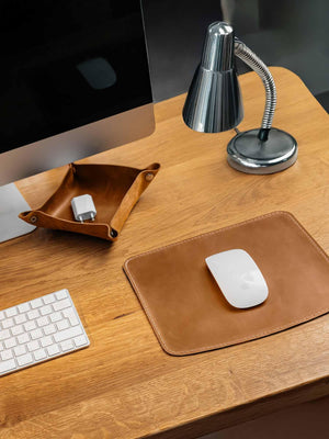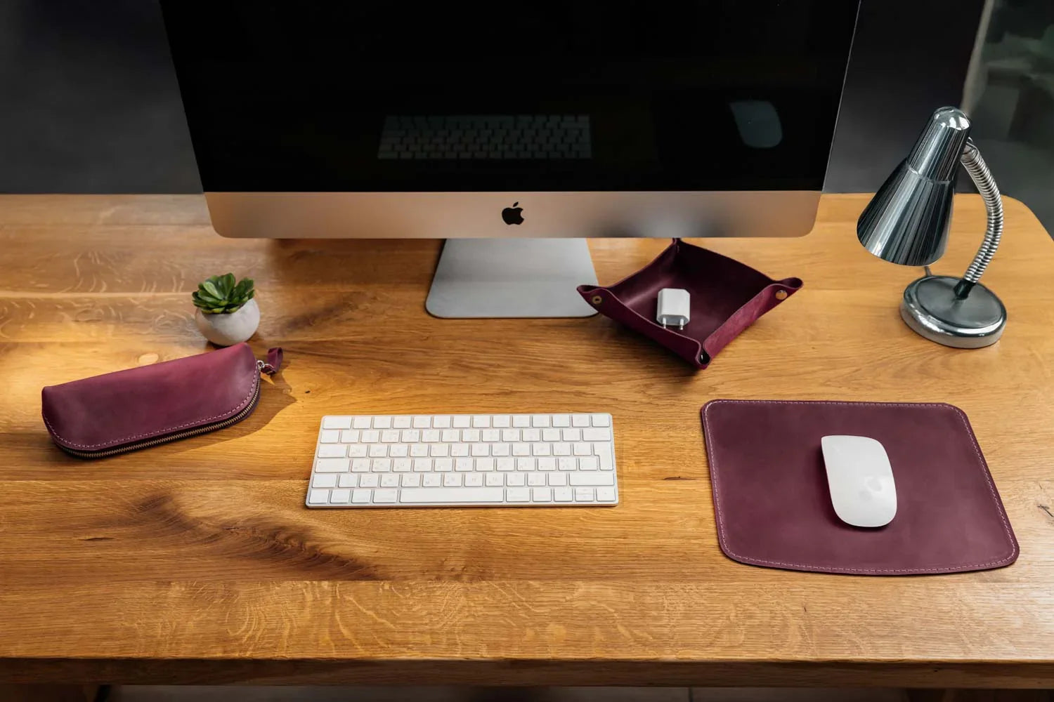 Оновіть свій робочий простір за допомогою килимка зі шкіри, який поєднує стиль, довговічність і комфорт. Виготовлений із натуральної шкіри Top Grain, він додає структурності робочому столу та створює ідеальну поверхню як для офісних, так і для творчих завдань.