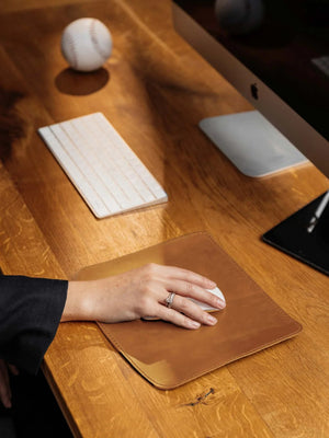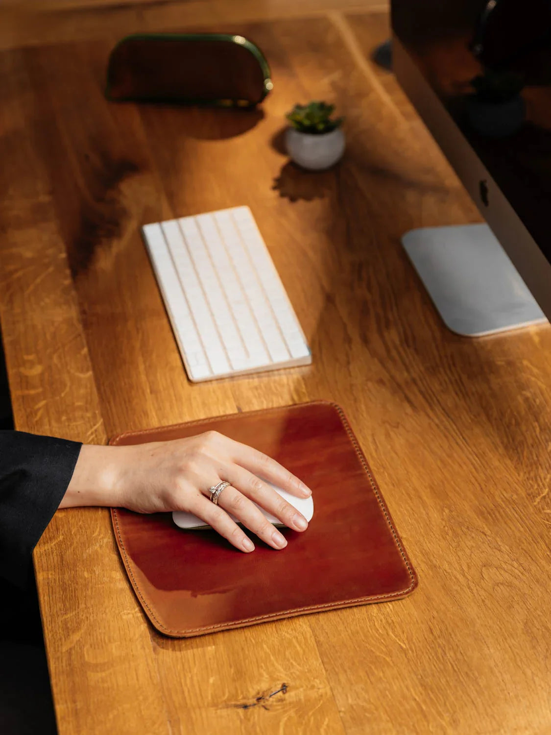 - Матеріал: натуральна шкіра Top Grain – гладка, але матова поверхня для точного руху миші й приємного тактильного відчуття.