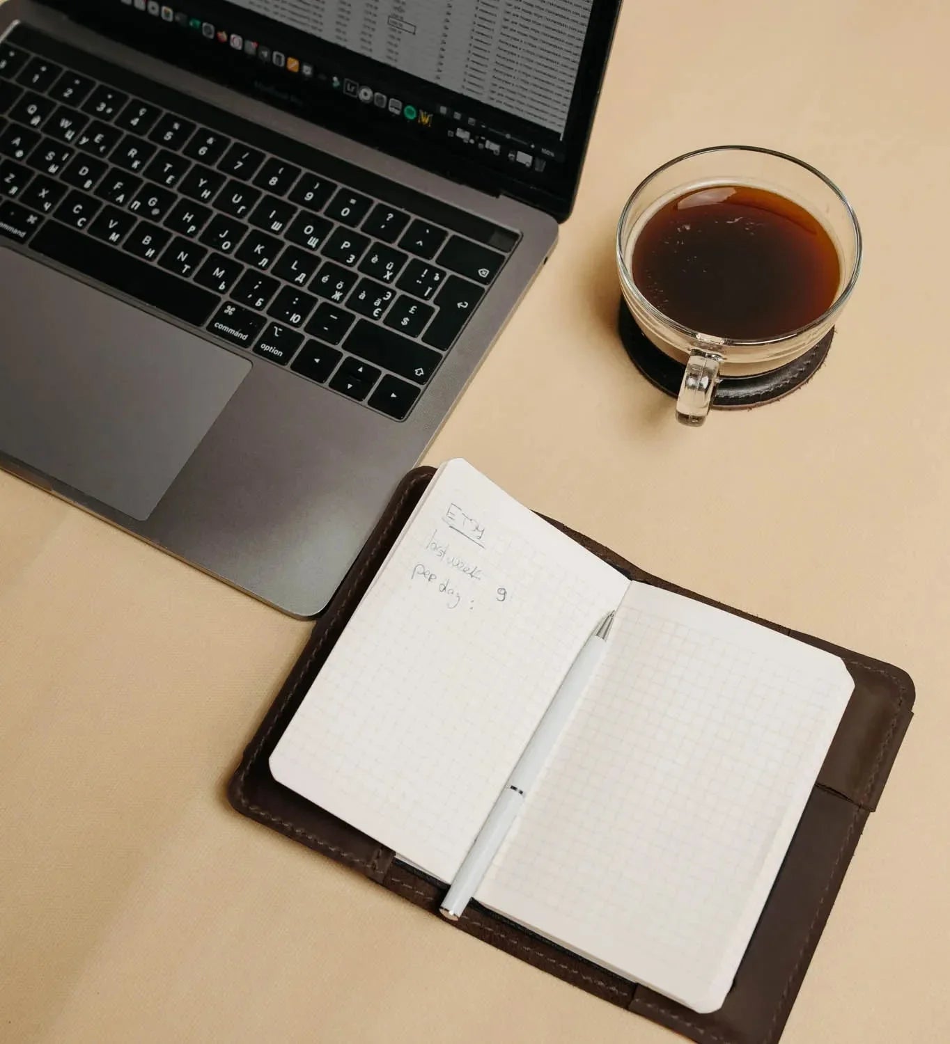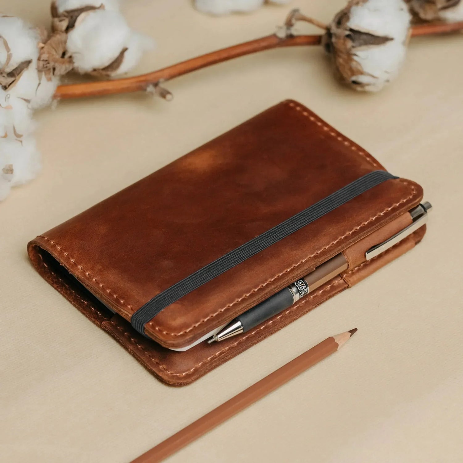Блокнот не входить у комплект. Матові шкіряні обкладинки мають природні відтінкові переходи, подряпини та текстурні нюанси, що роблять кожен виріб унікальним.