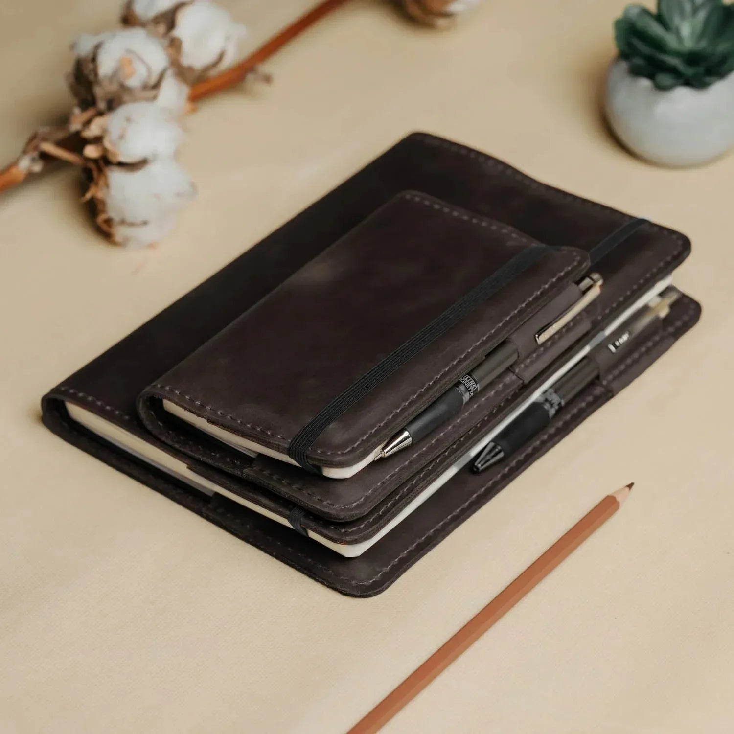 Ми виготовляємо обкладинки із натуральної шкіри, точно під розміри B5 та B6. Вони сумісні з популярними брендами Moleskine, Leuchtturm 1917, Field Notes та іншими планерами й журналами. Розраховані на щоденне використання, з часом набувають природного характеру.