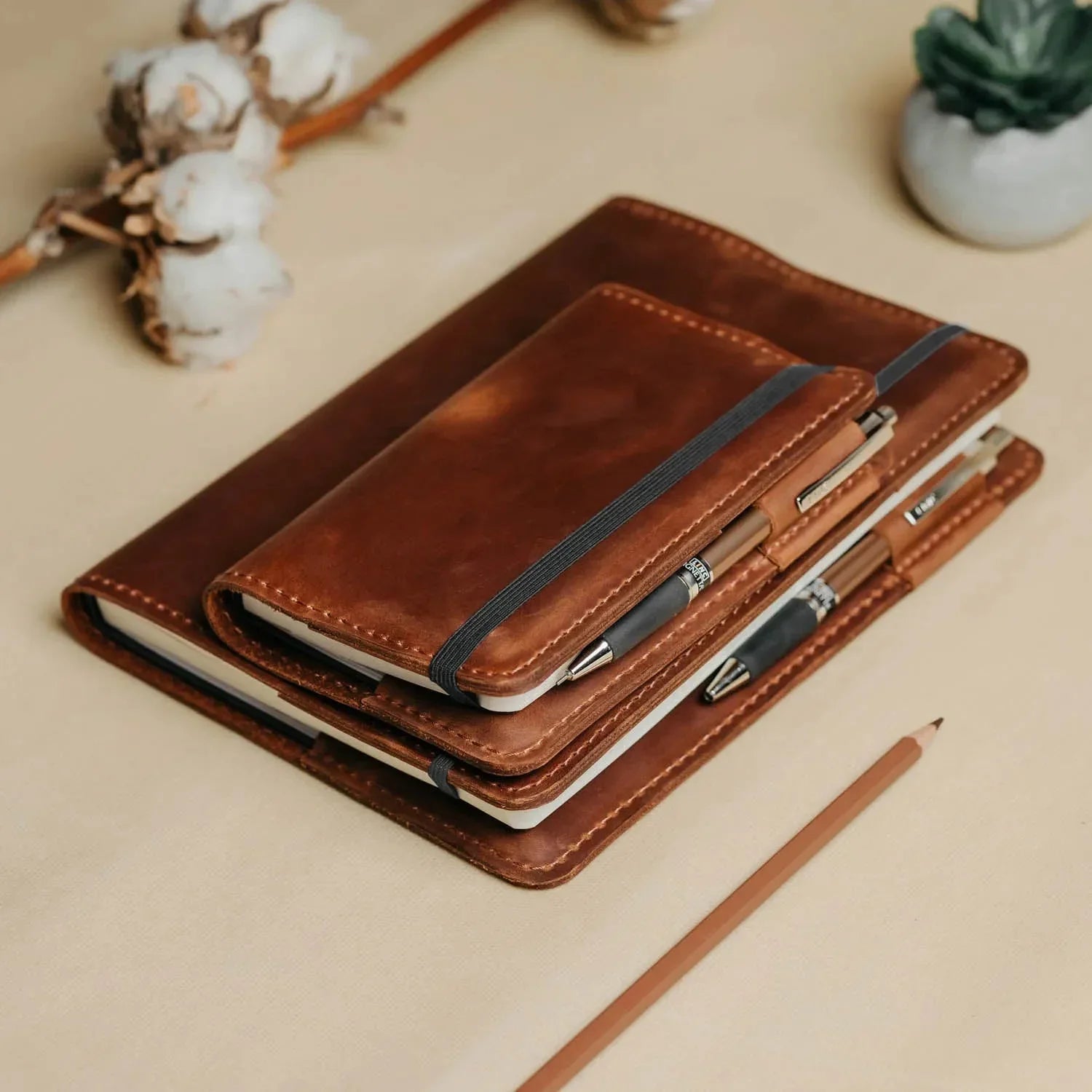 Ми виготовляємо обкладинки із натуральної шкіри, точно під розміри B5 та B6. Вони сумісні з популярними брендами Moleskine, Leuchtturm 1917, Field Notes та іншими планерами й журналами. Розраховані на щоденне використання, з часом набувають природного характеру.