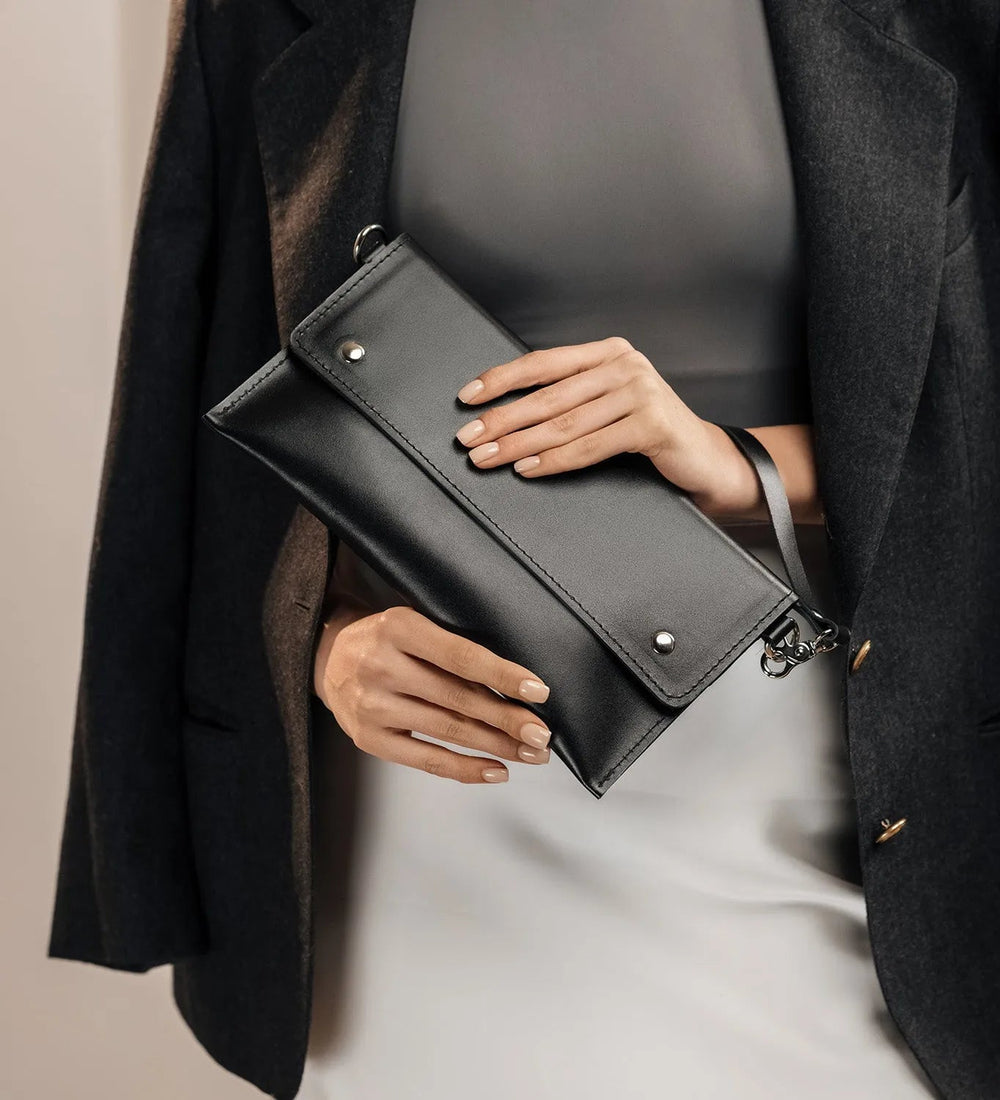 Цей клатч із ручкою – універсальний аксесуар, який поєднує практичність і лаконічний дизайн. Підходить як для повсякденного використання, так і для вечірніх виходів.