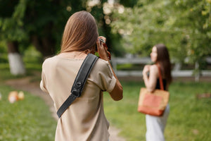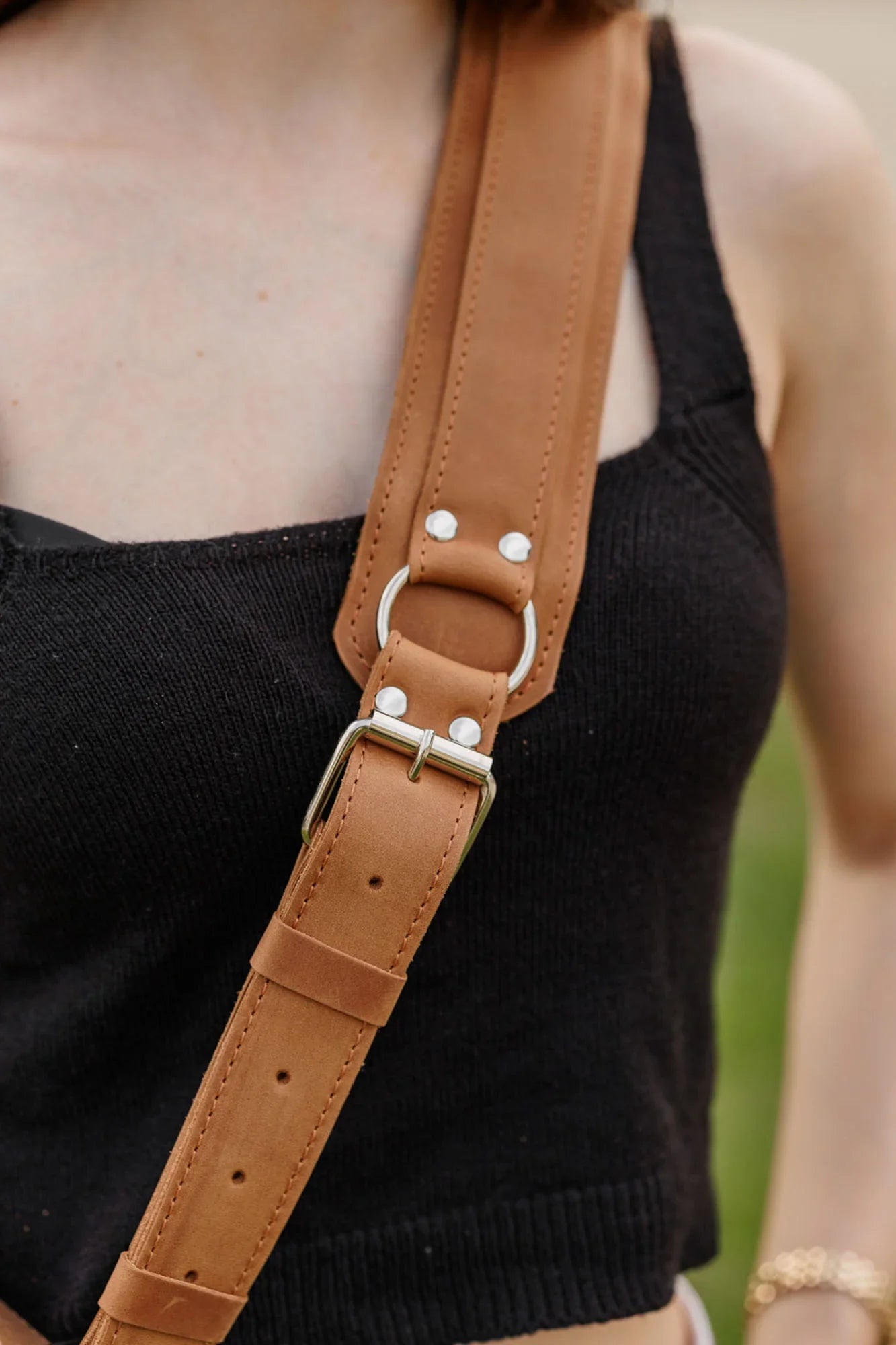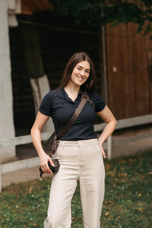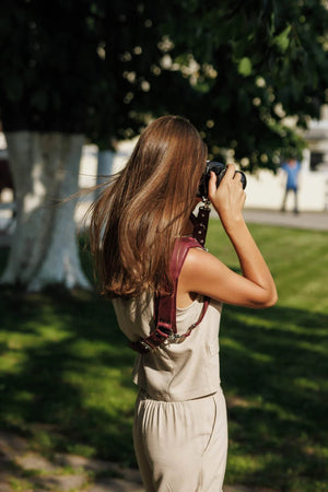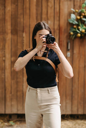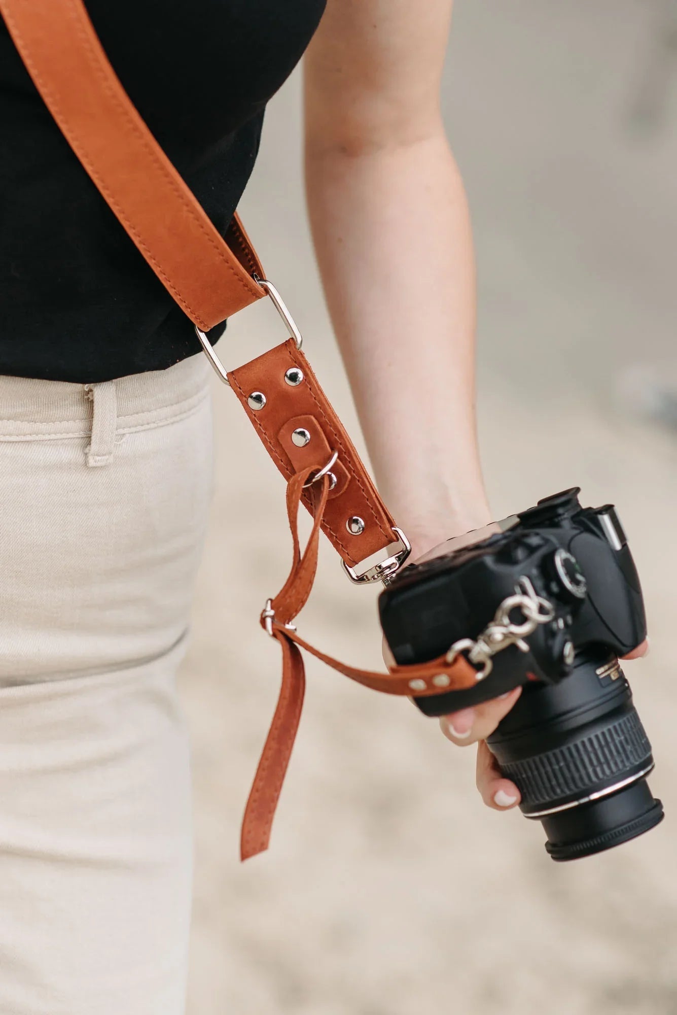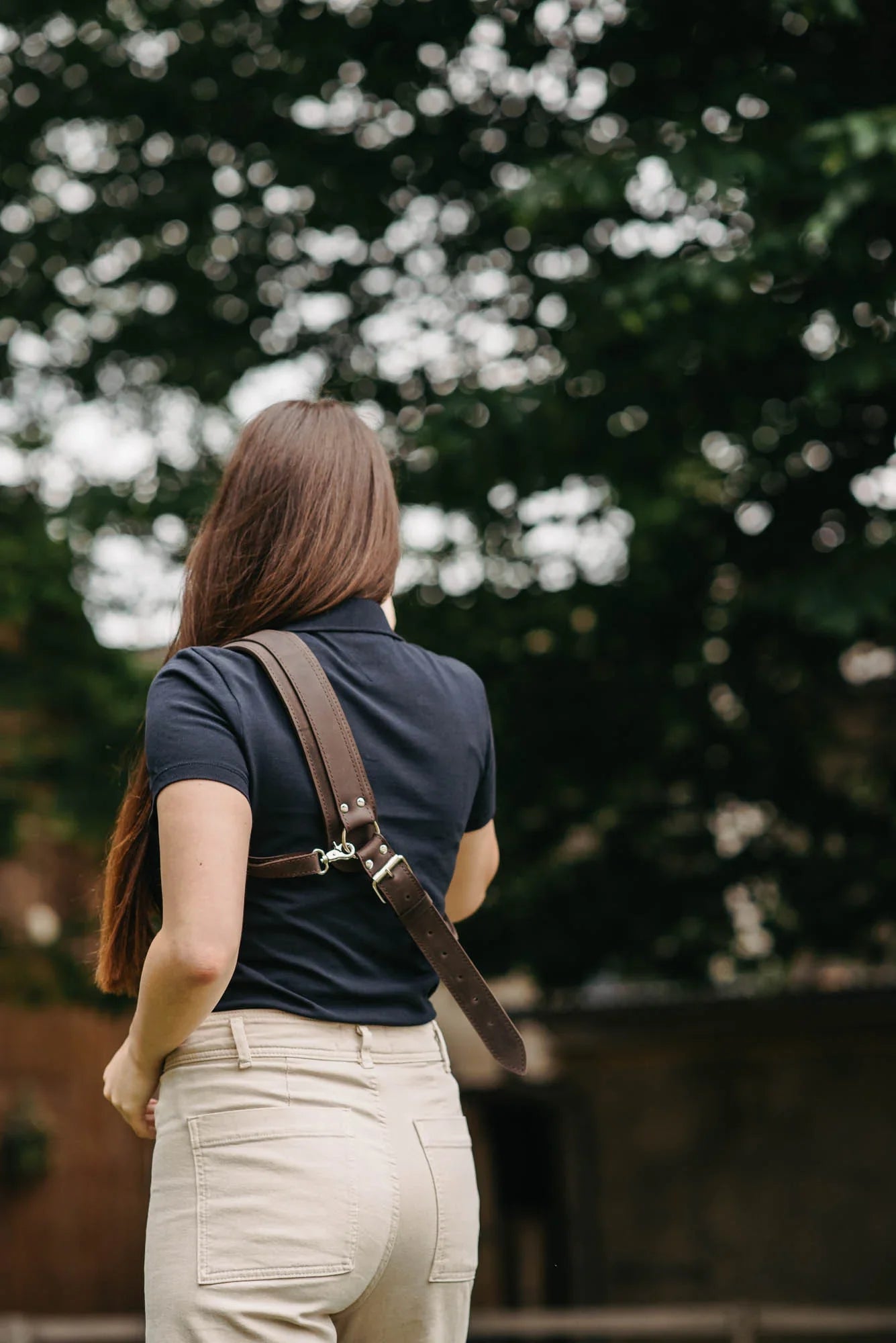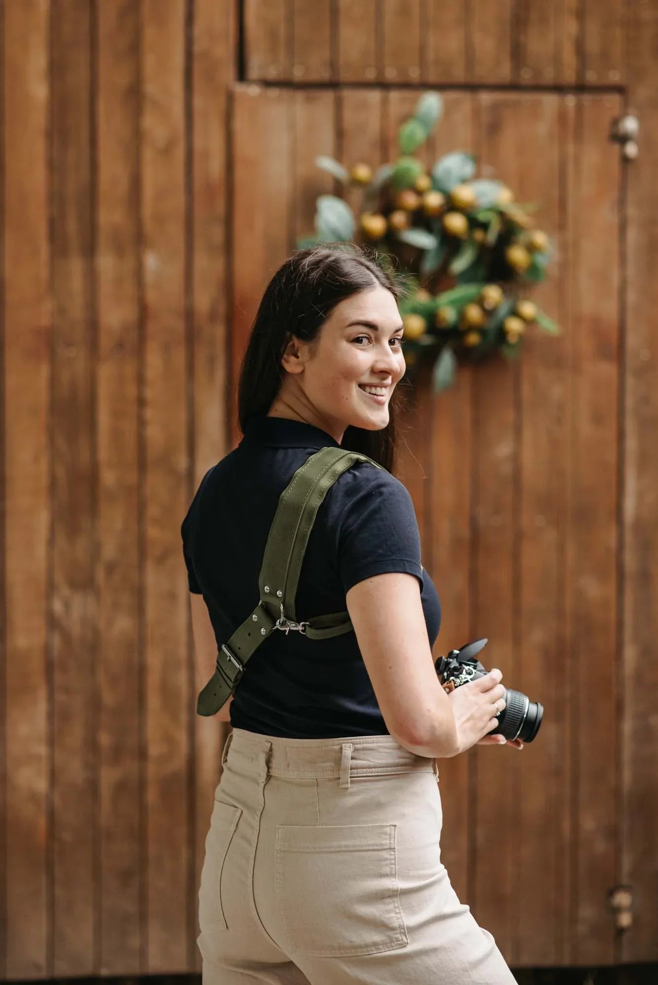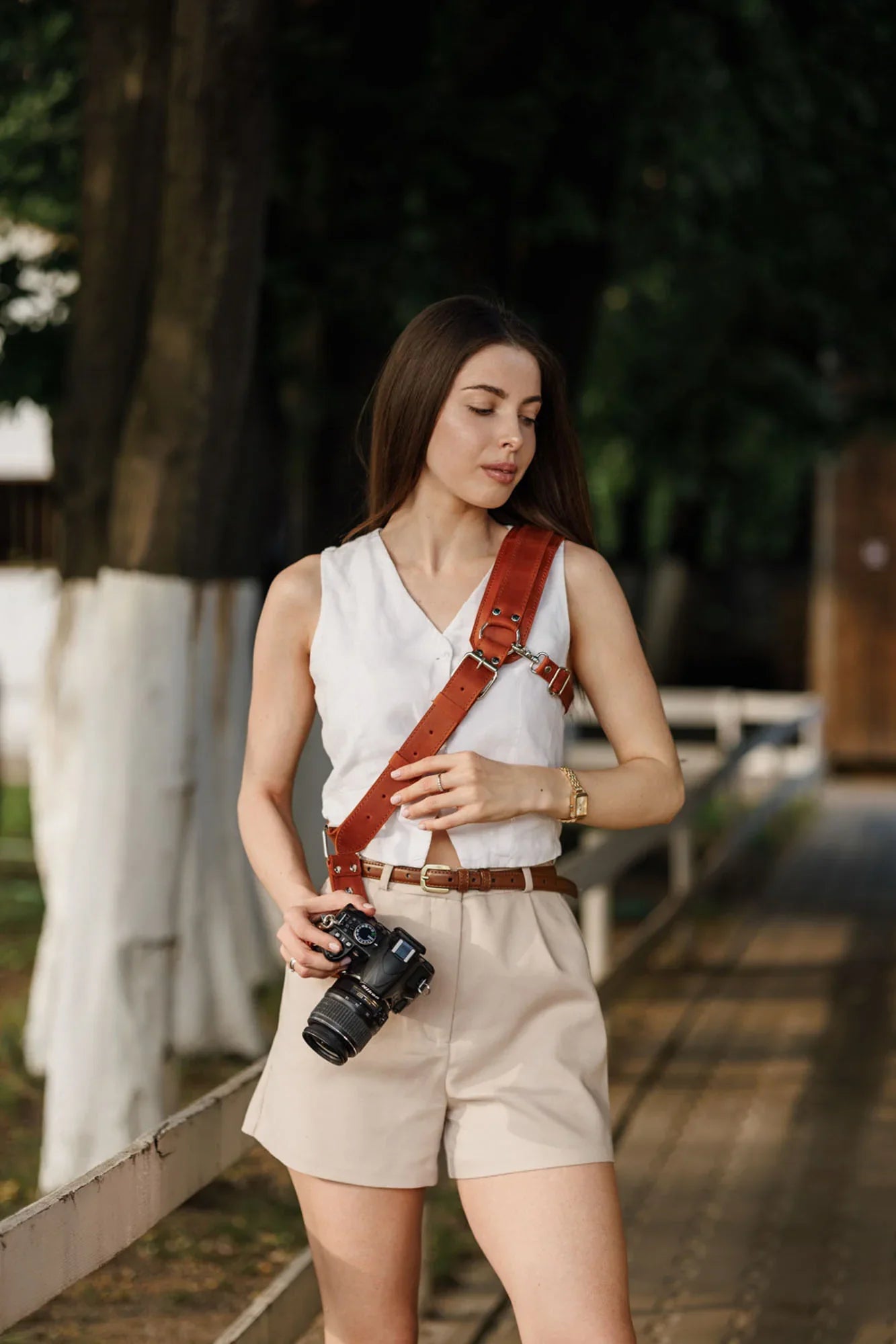Одноремінна шкіряна портупея створена для фотографів, які цінують свободу руху й міцність матеріалів. Виготовлена з матової воскової шкіри, вона забезпечує надійну фіксацію камери без компромісів щодо комфорту.