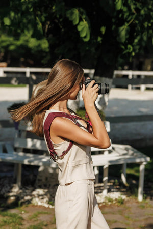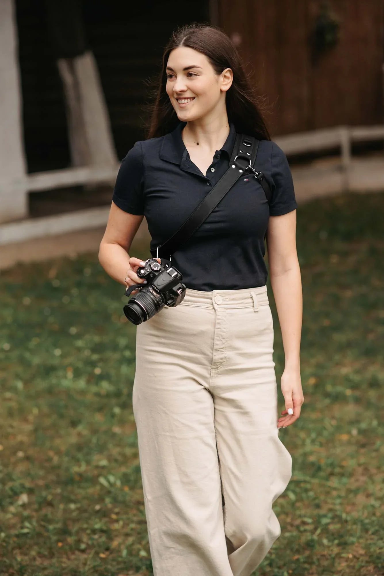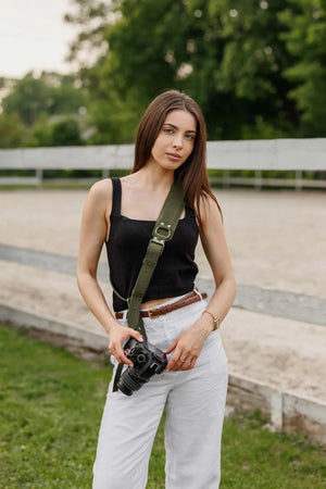 Сумісна з усіма камерами, що мають стандартне різьблення 1/4”. Завдяки кросбоді-дизайну та стабілізатору ремінь плавно ковзає з положення на боці до робочої позиції. М’яка накладка на плече опційна – можна використовувати з нею або без неї, залежно від уподобань.