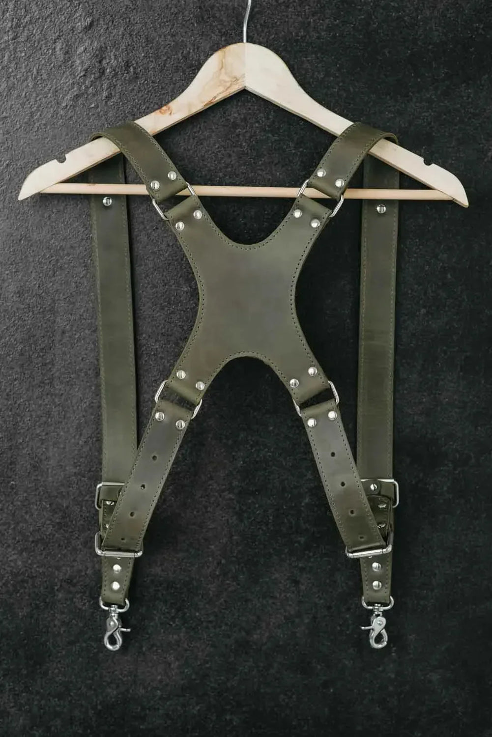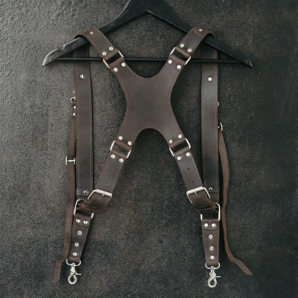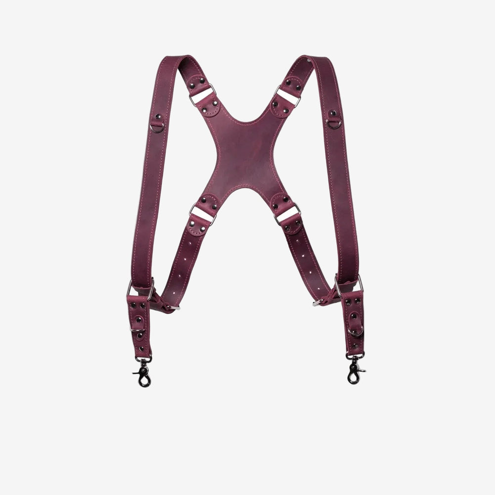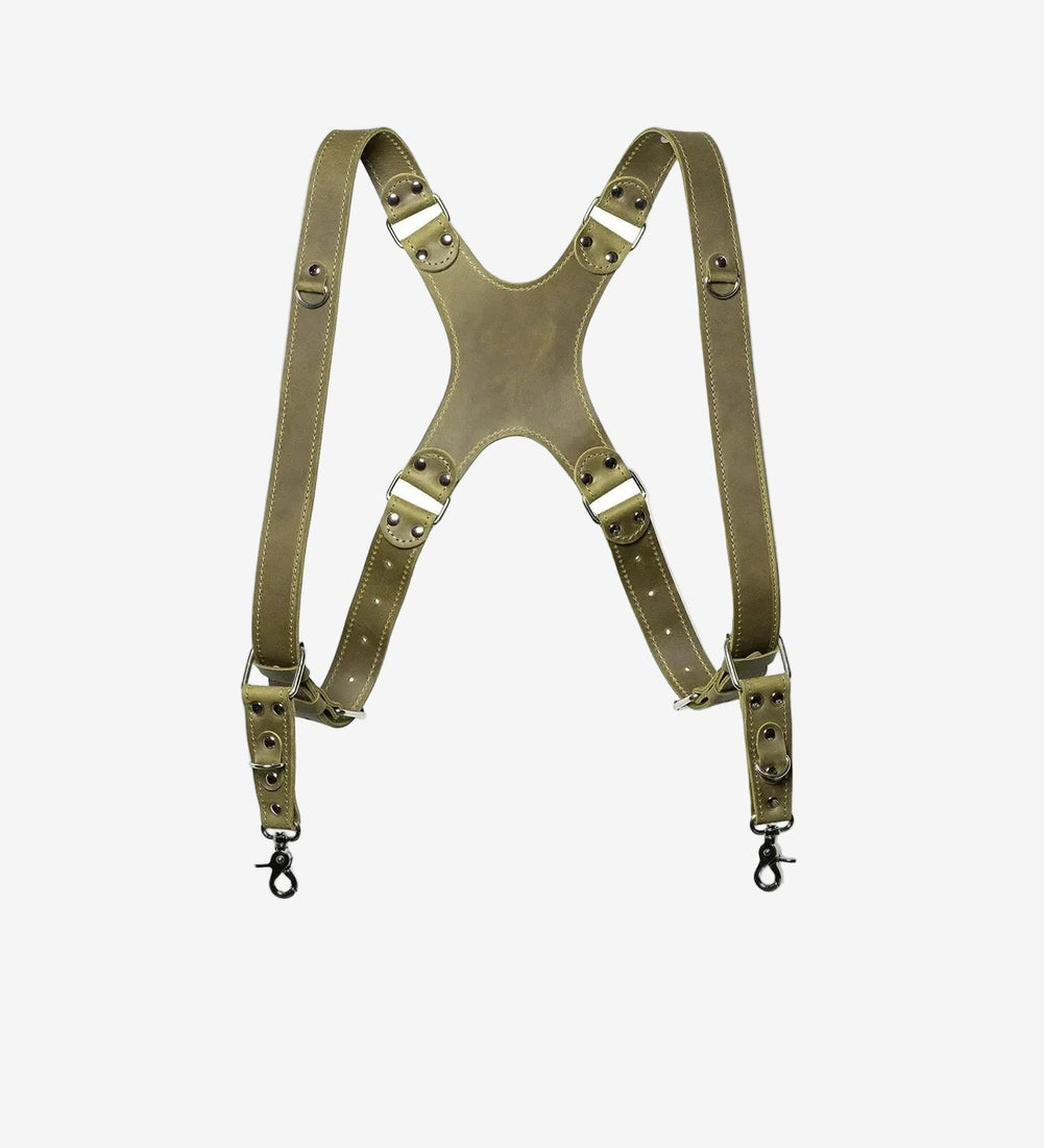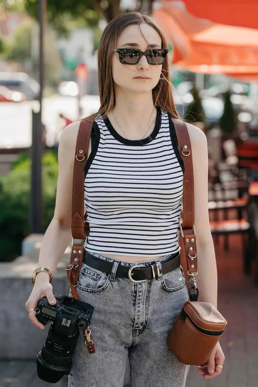 Створена для професійних та івент-фотографів, ця система дозволяє зручно та безпечно носити дві камери (або камеру й кейс для об’єктива). Виготовлена зі 100% натуральної матової шкіри з ефектом вінтажу (Crazy Horse), вона забезпечує довговічність, ергономічну підтримку та швидкий доступ до техніки під час тривалих зйомок.