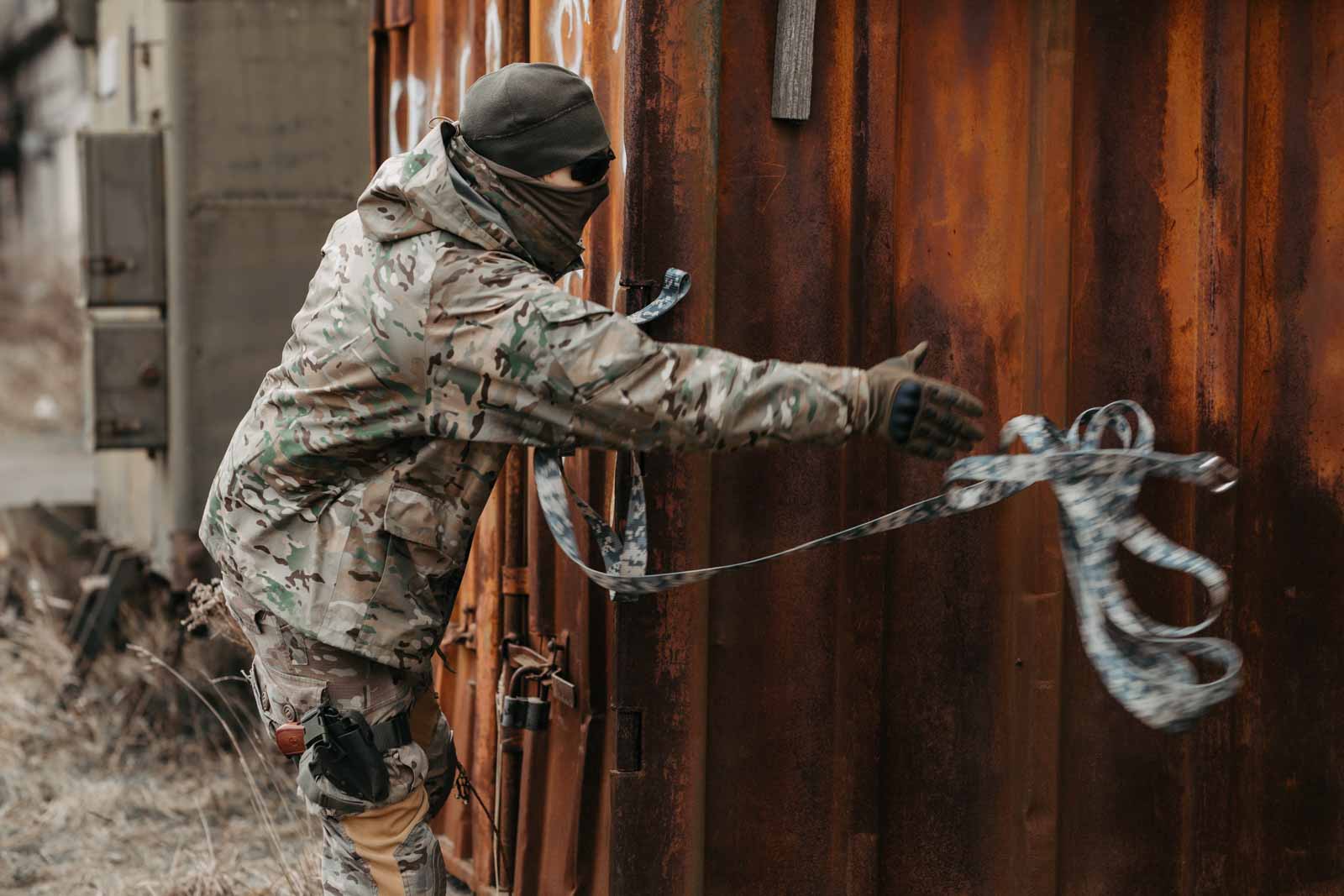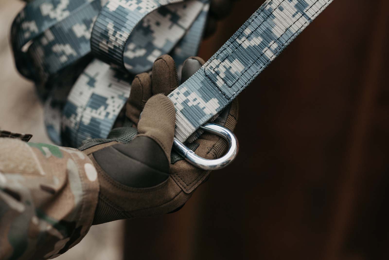 • в комплекті із стропою металевий карабін для швидкого та безпечного прикріплення до елементів екіпіровки.