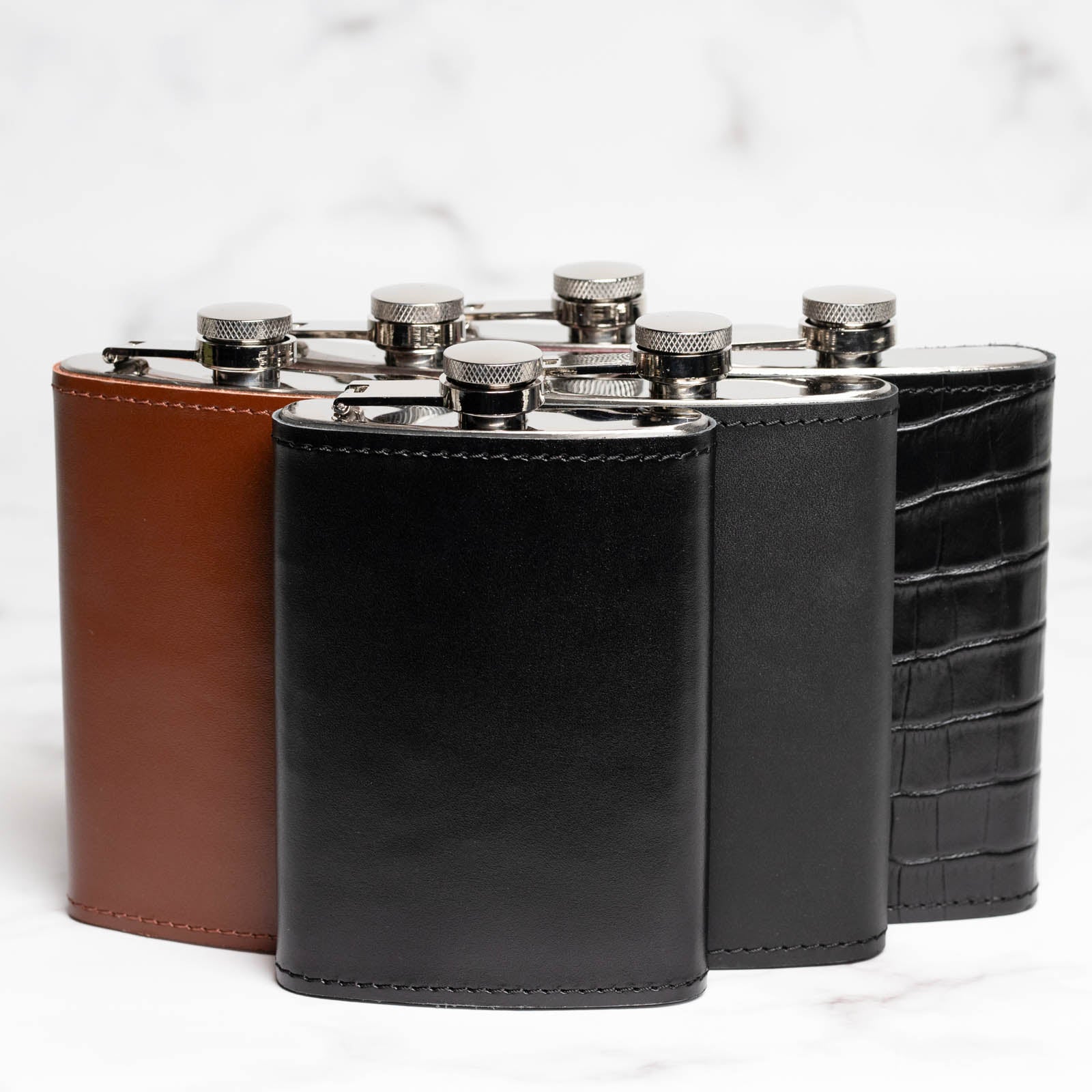 Ця фляга поєднує в собі вишуканий дизайн та високу якість матеріалів для забезпечення комфортного користування. Виготовлена з високоякісної нержавіючої сталі, яка забезпечує надійність та довговічність. Корпус фляги покритий натуральною шкірою, що додає їй шарму та розкішного вигляду.
