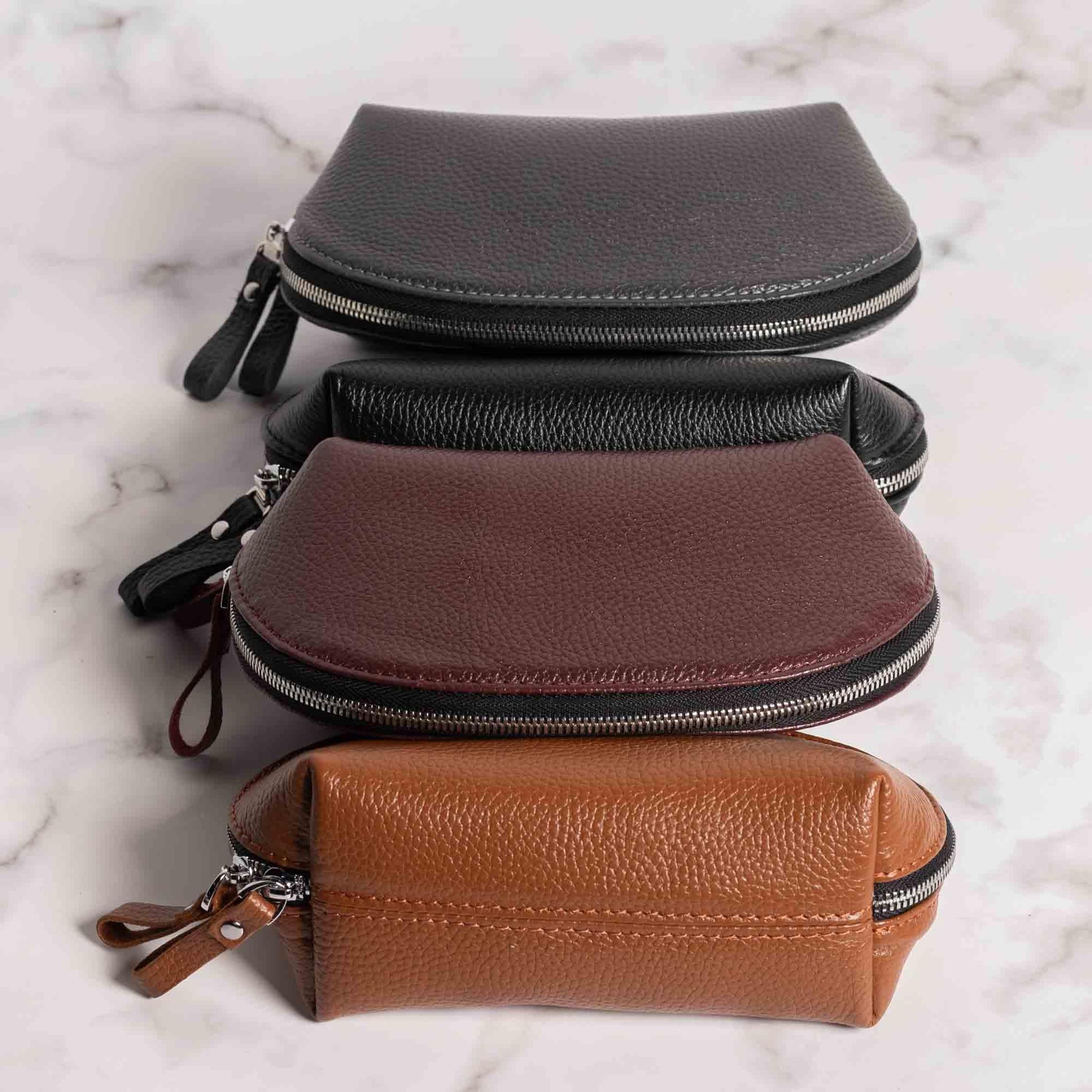 Ми співпрацюємо лише з перевіреними постачальниками, які забезпечують натуральну шкіру преміум-класу та надійну фурнітуру, зокрема міцні металеві блискавки. Завдяки цьому наші косметички служать роками, зберігаючи свій вигляд і функціональність.