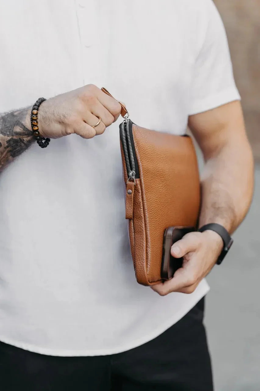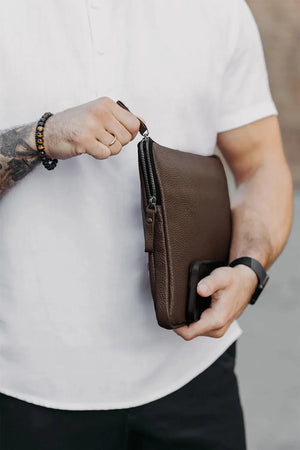 Виготовлений зі 100% натуральної шкіри Top Grain, відомої своєю міцністю та зносостійкістю. Металева блискавка забезпечує надійне закриття та швидкий доступ до вмісту. -