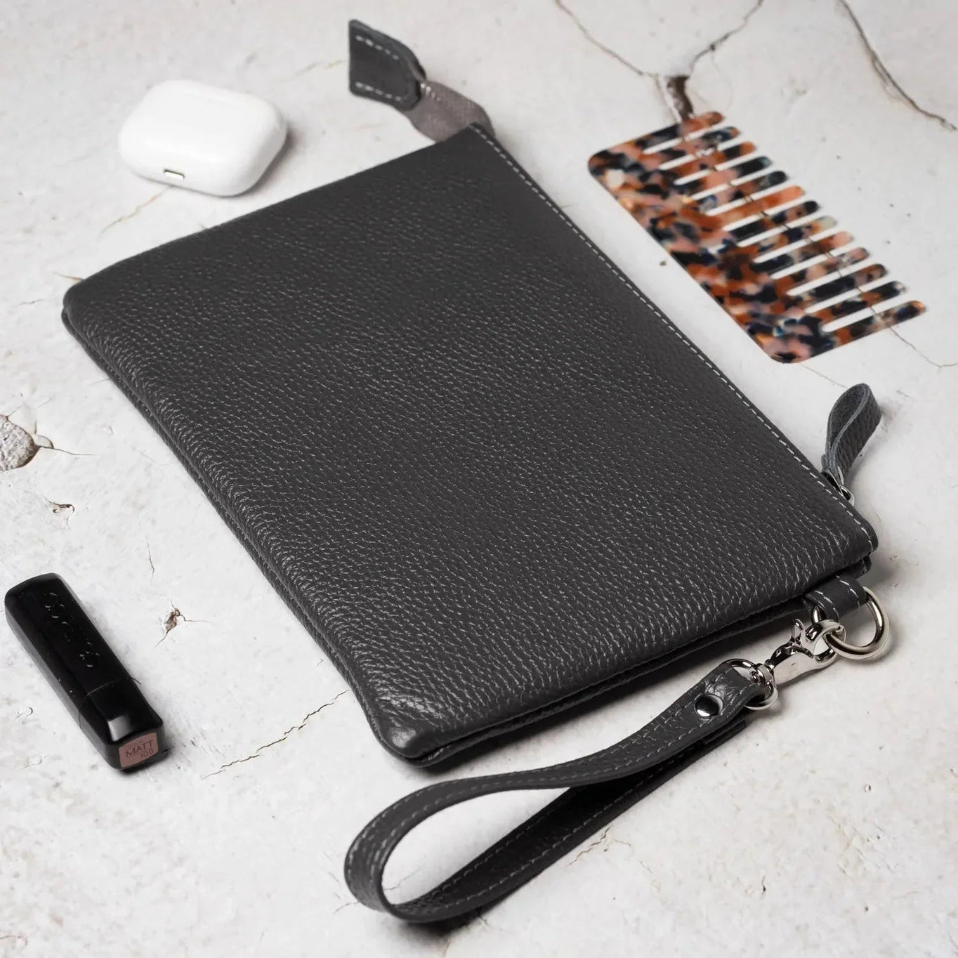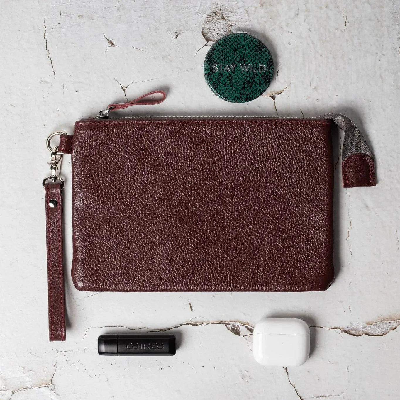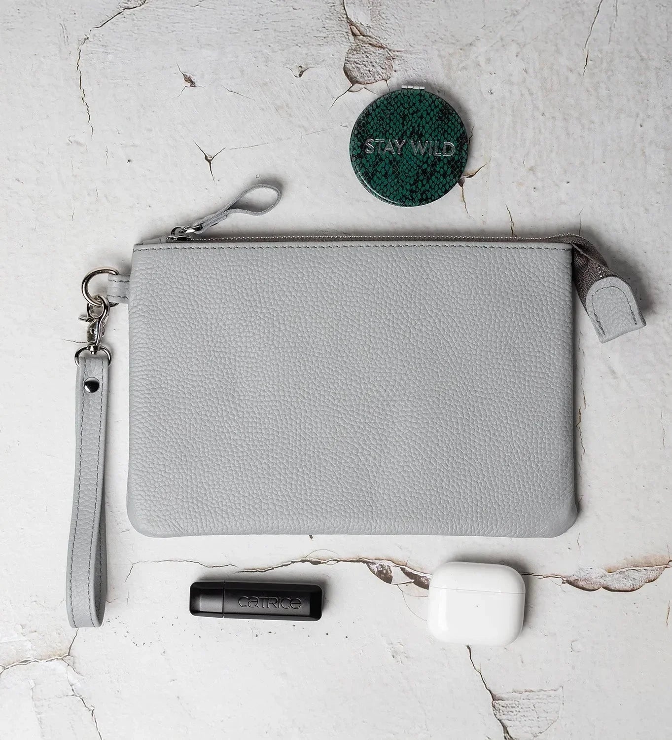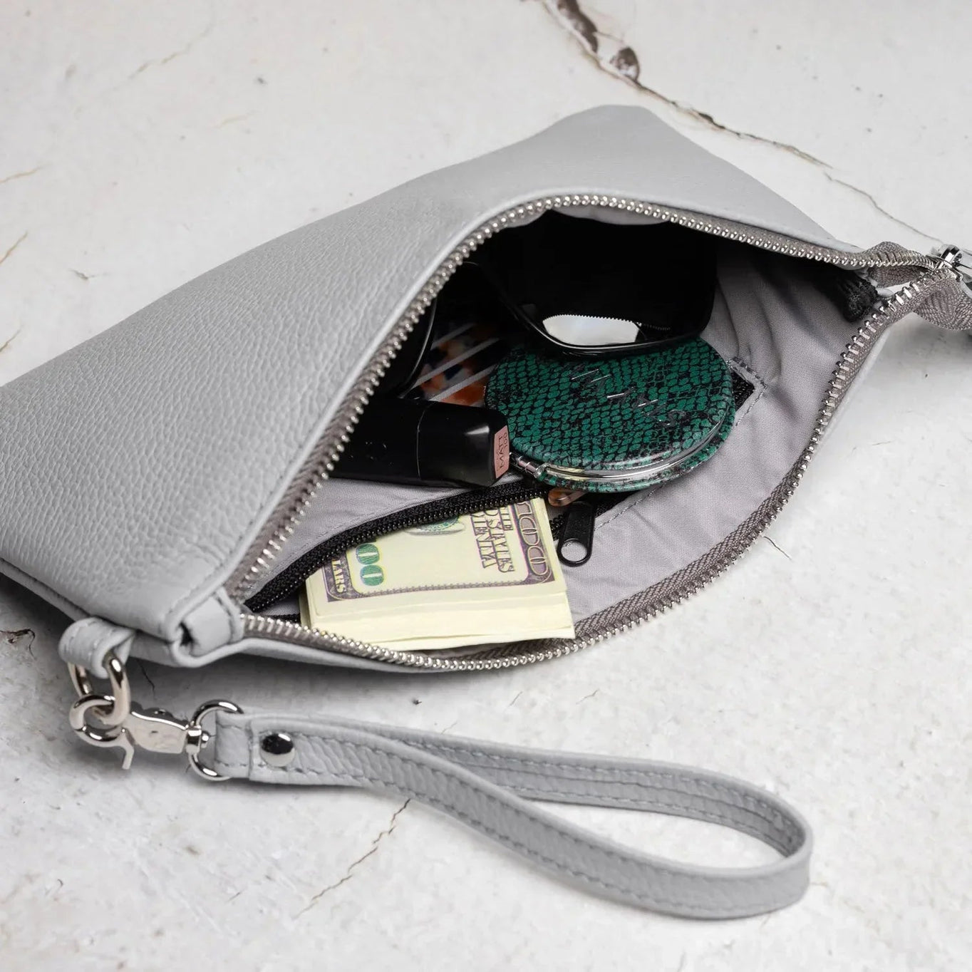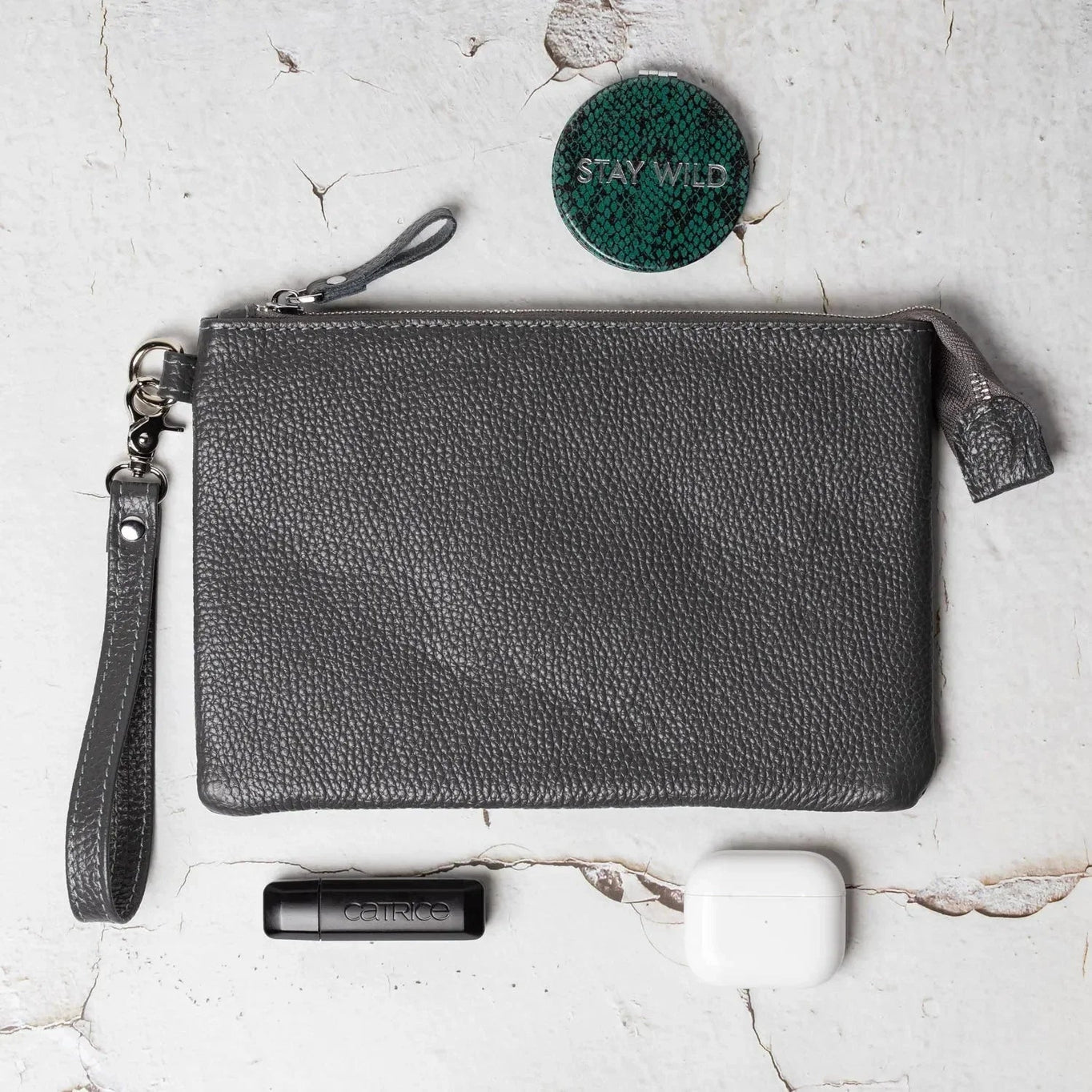 Клатч із зернистої шкіри на блискавці | 3 розміри