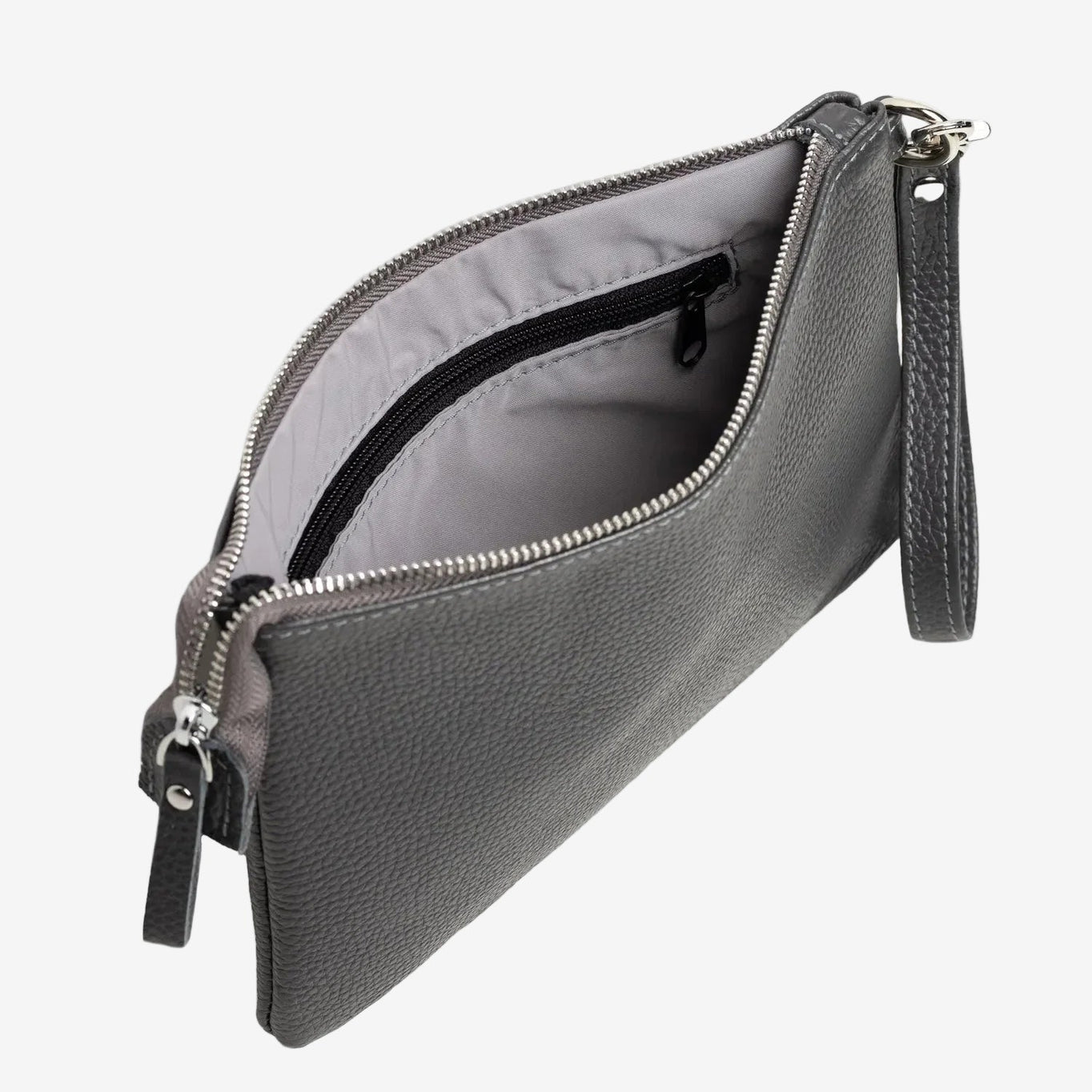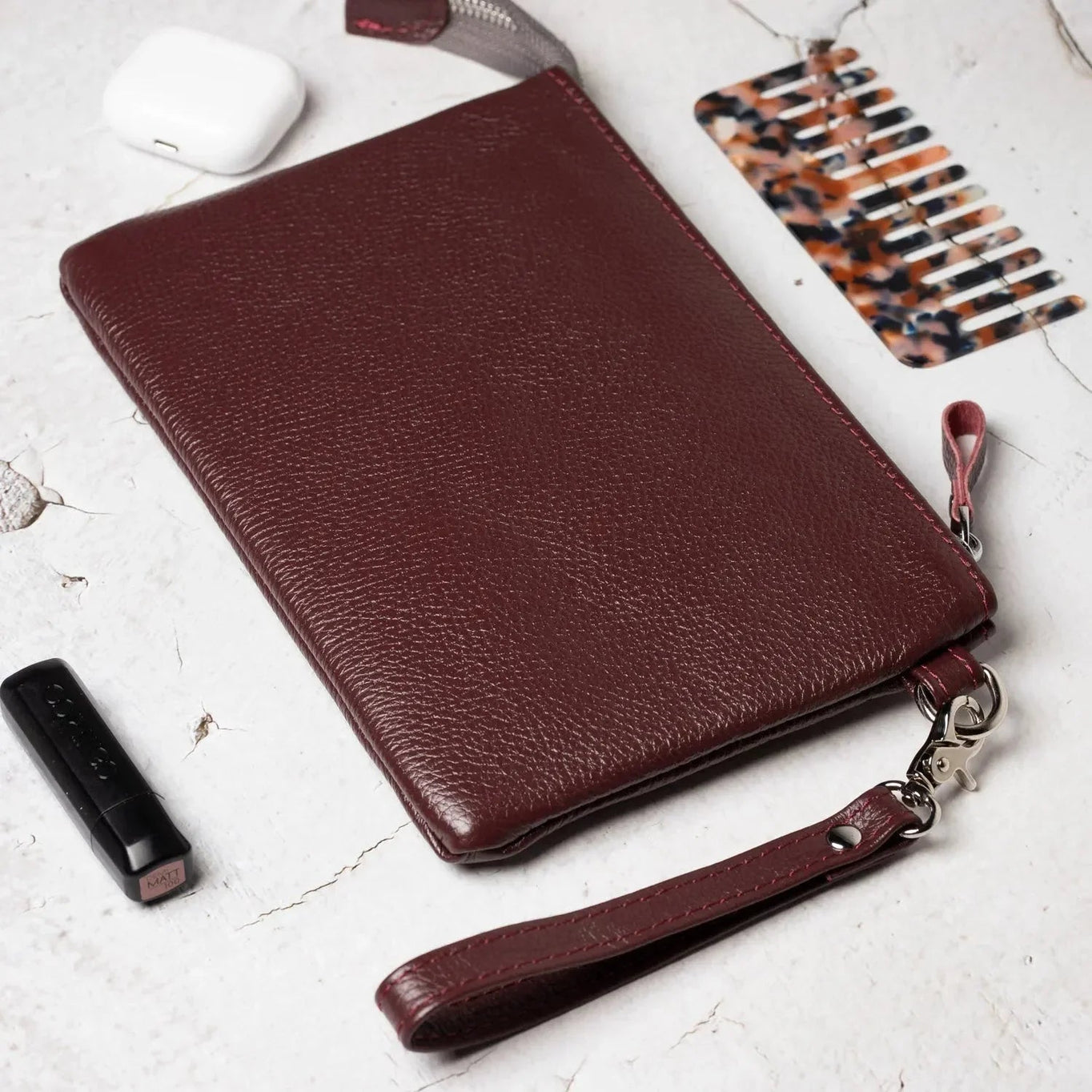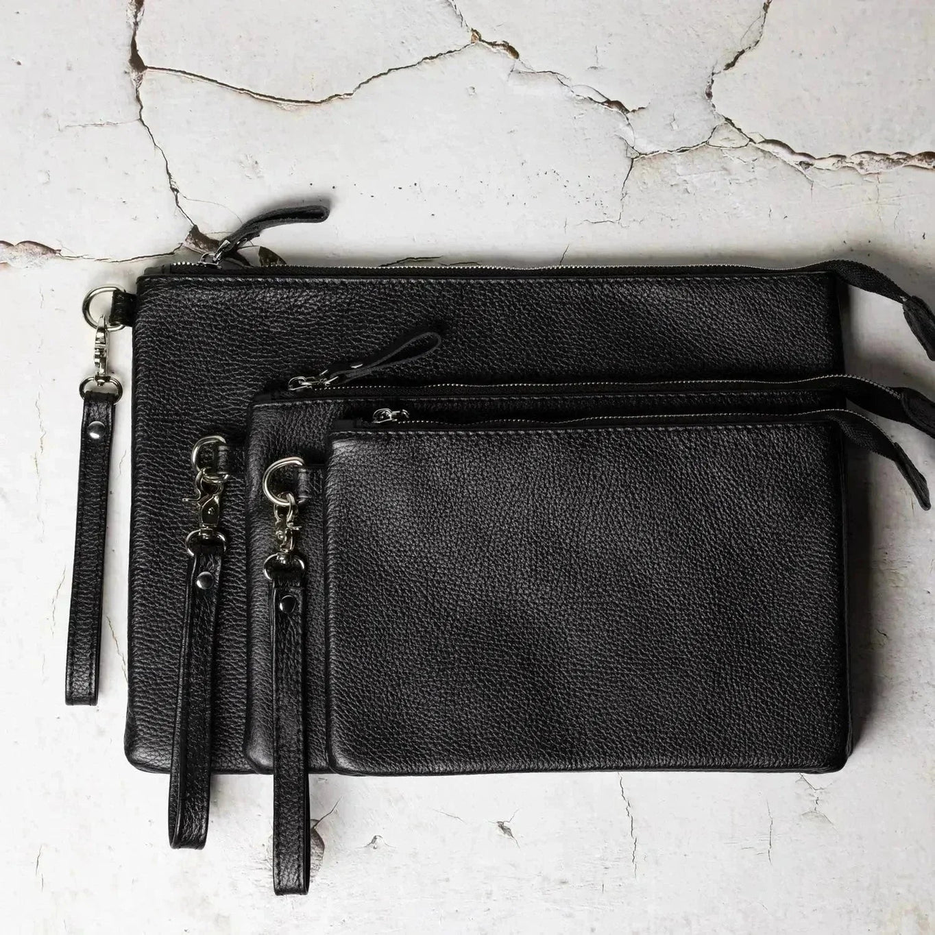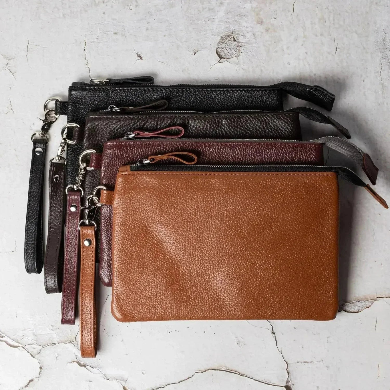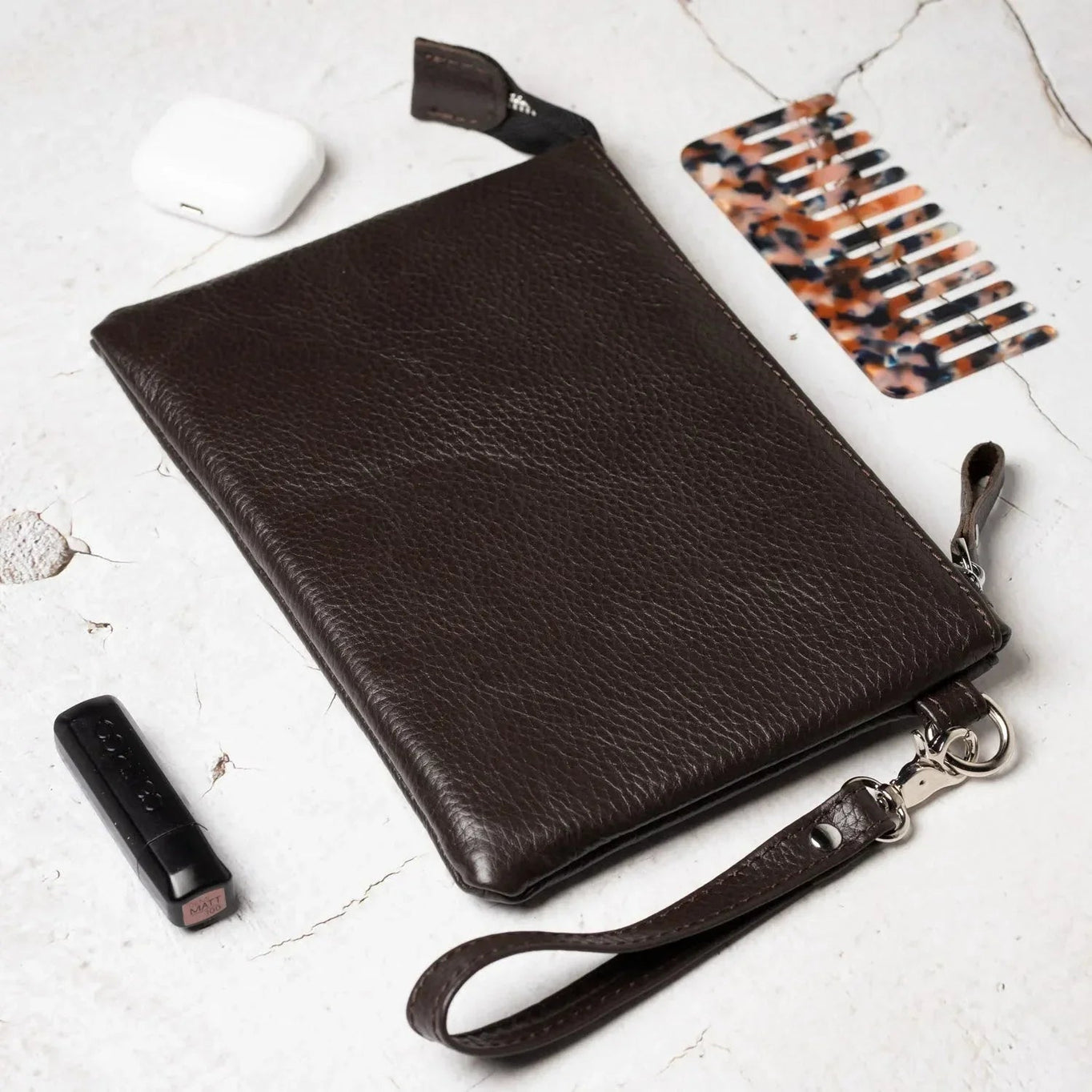 Клатч із зернистої шкіри на блискавці | 3 розміри