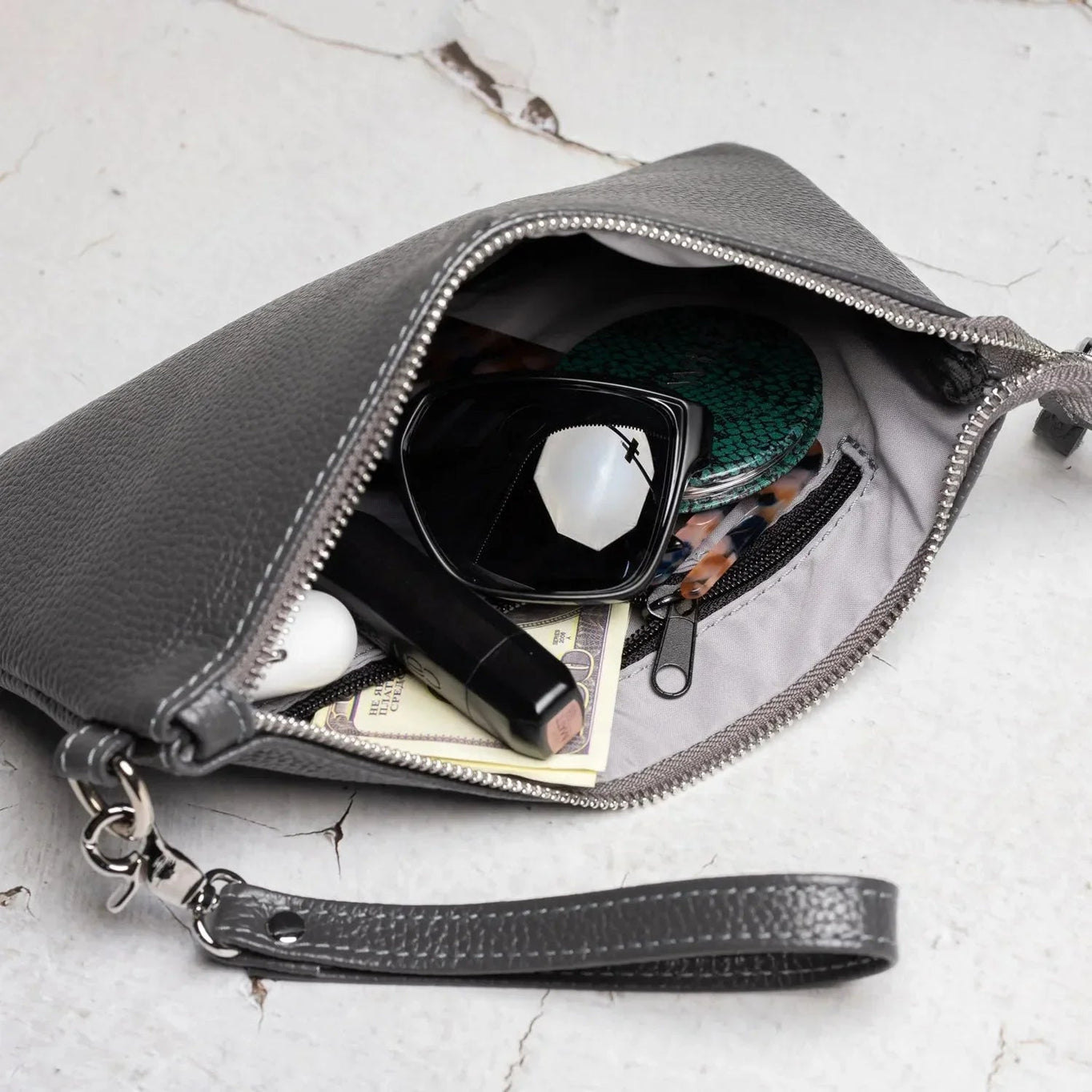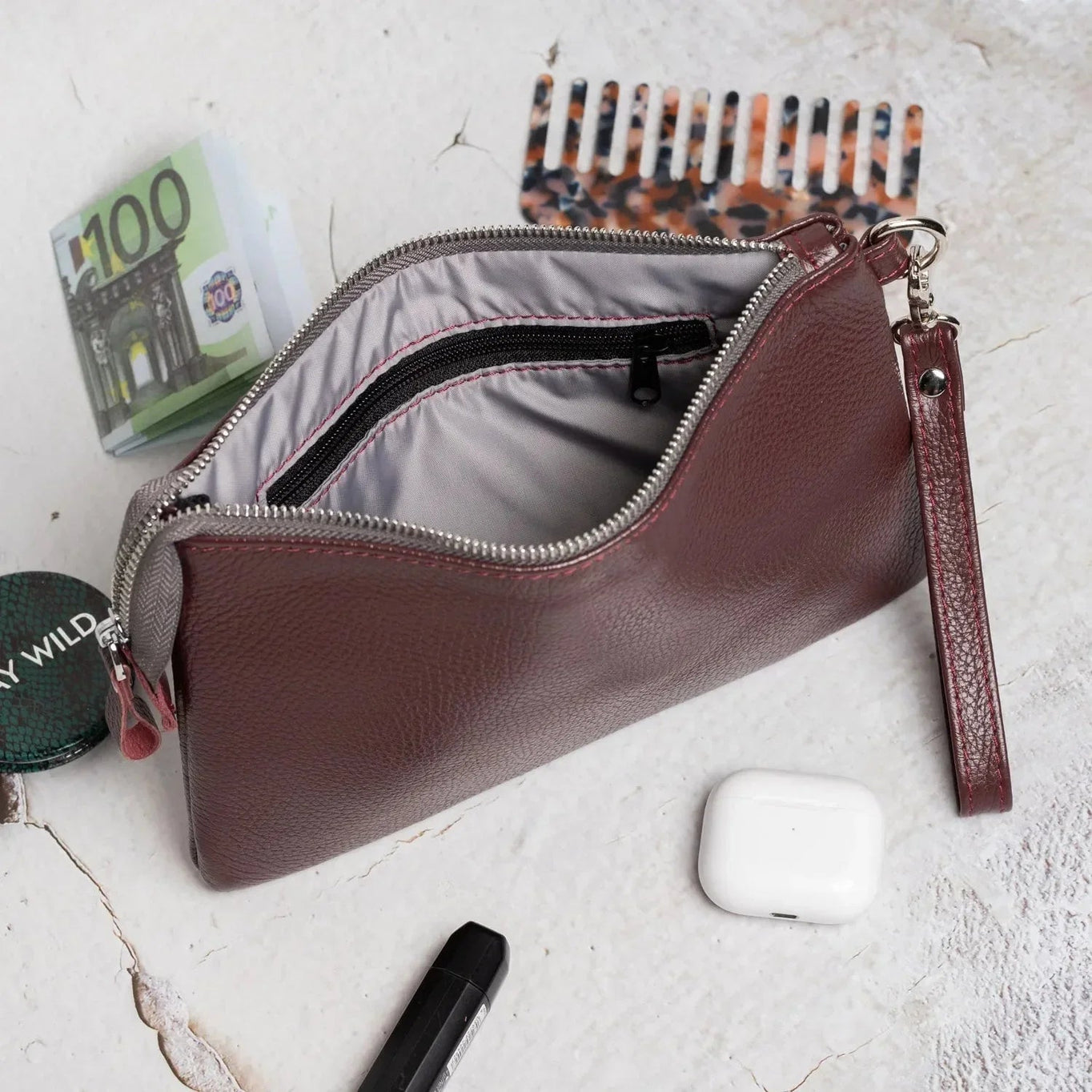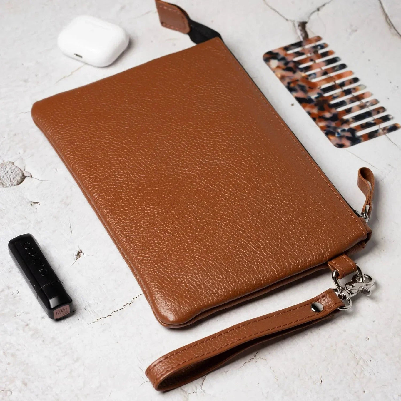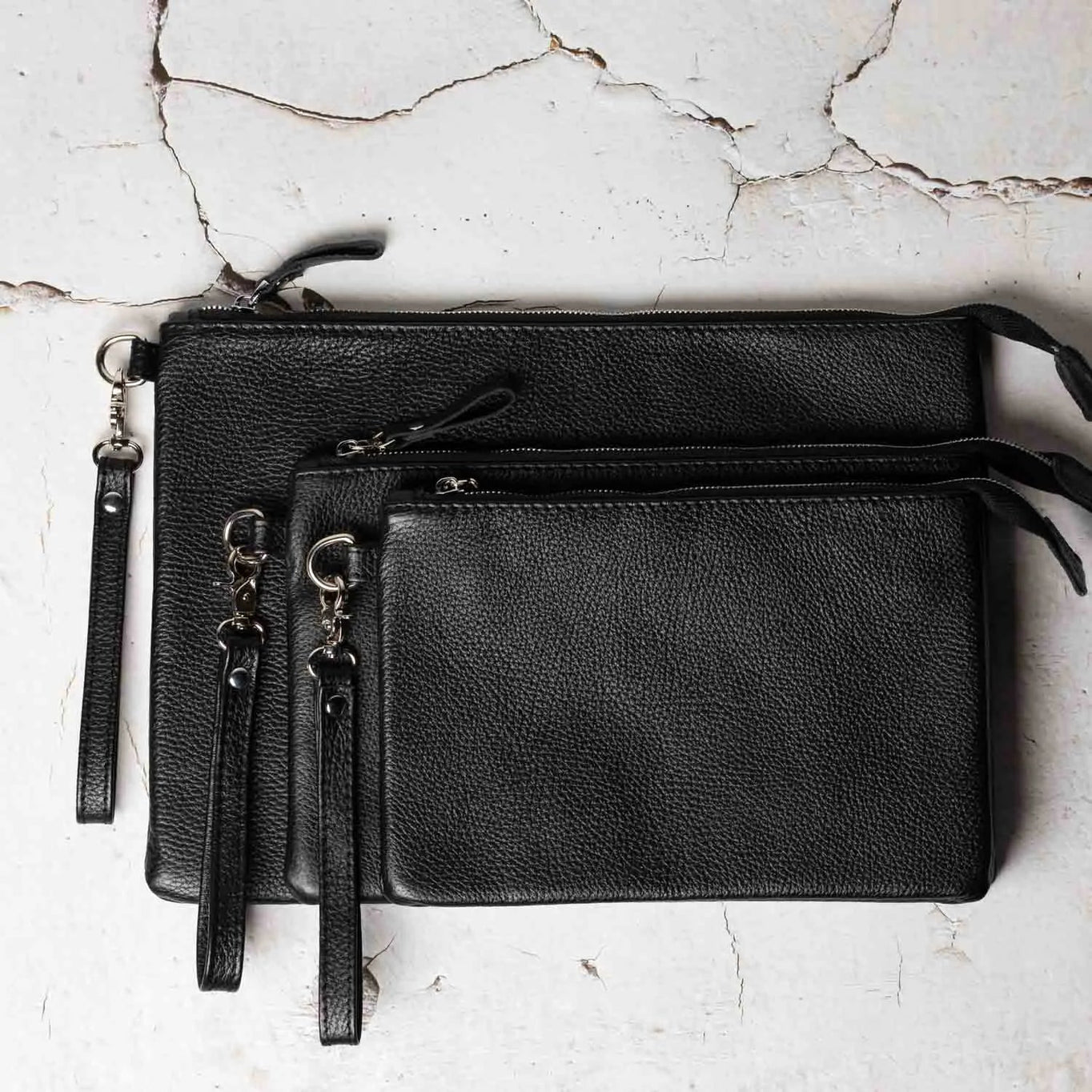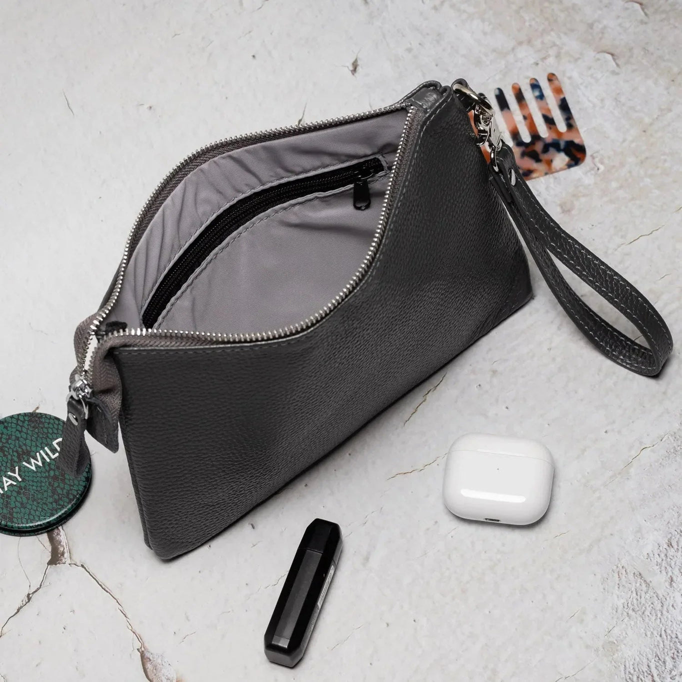 Клатч із зернистої шкіри на блискавці | 3 розміри