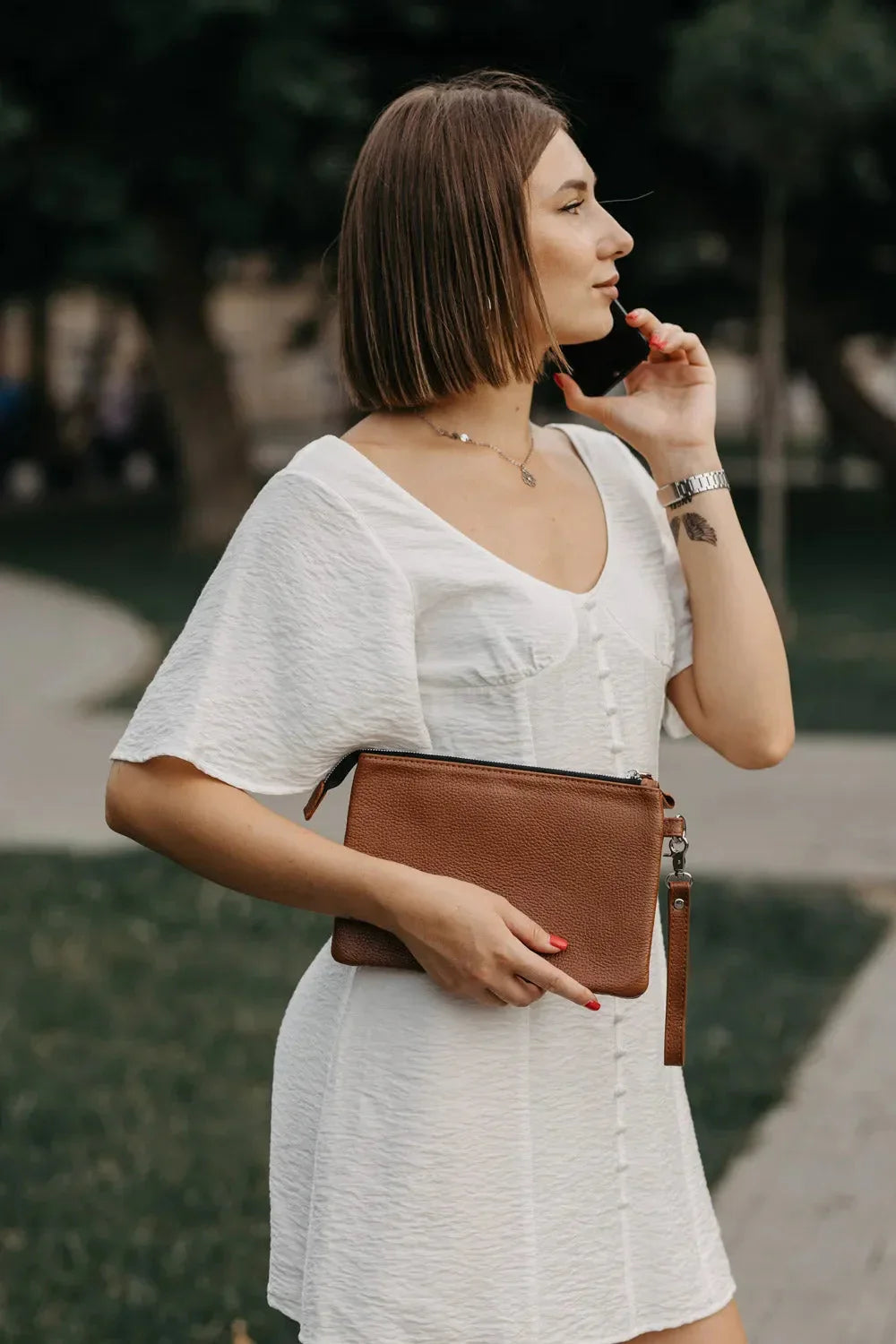 Кожен виріб розроблено з урахуванням щоденних потреб. Цей клатч забезпечує достатньо місця для всіх дрібних речей, які ви використовуєте щодня: телефону, павербанку, гаманця, ключів, серветок, косметики чи окулярів у м’якому футлярі.