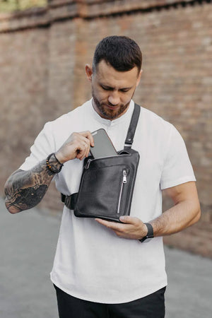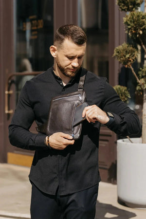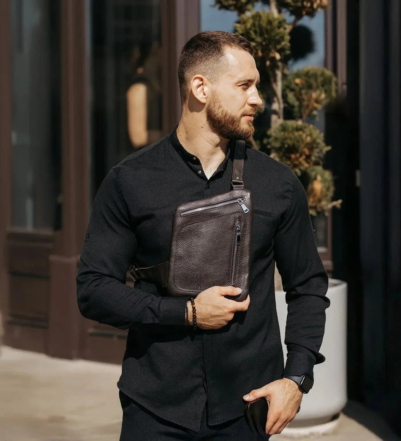 Чоловічий слінг з фактурної шкіри – легкий, компактний, міцний