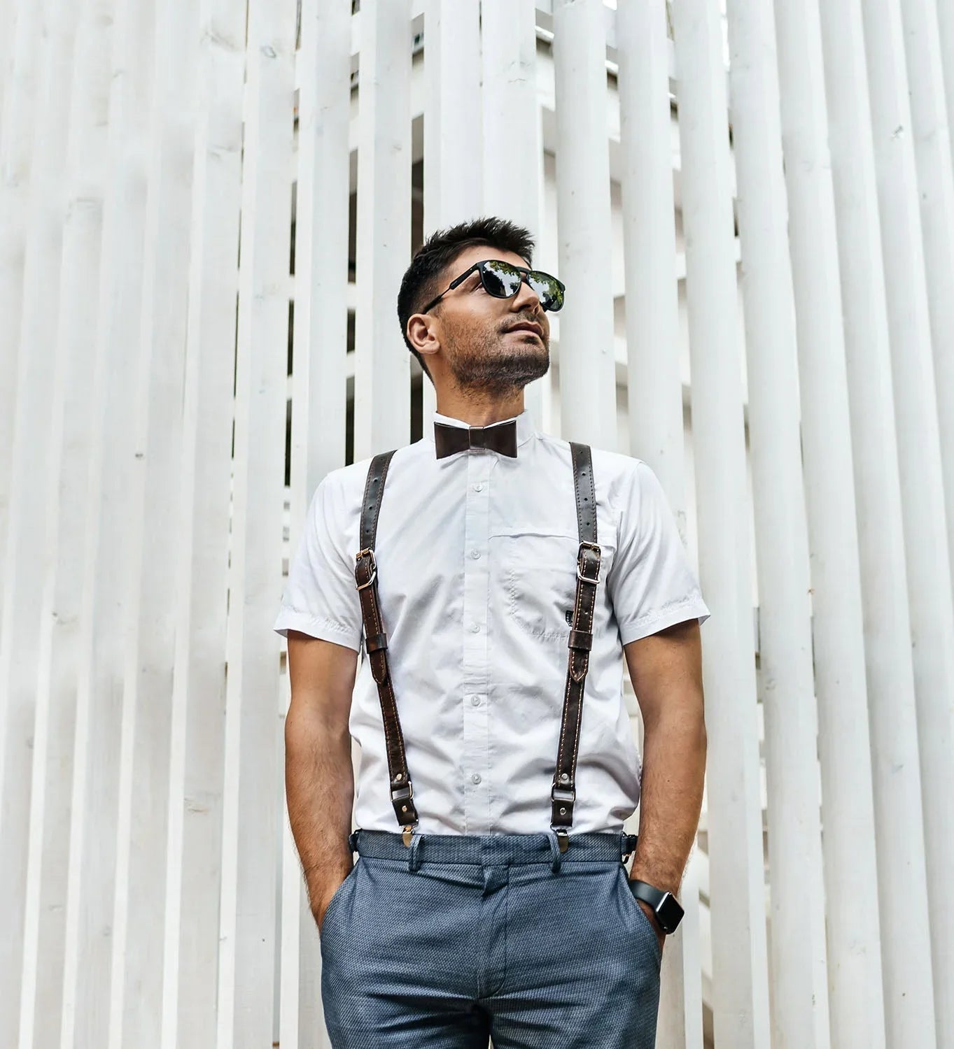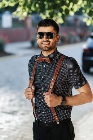 Шкіряна краватка-метелик має лаконічний дизайн. Чудово поєднується з різноманітним одягом: брюками, сорочками, костюмами, піджаками. Її неодмінно оцінять любителі мінімалізму. Ви можете підібрати краватку під штани, туфлі, ремінь, підтяжки або в тон до сорочки, піджака.